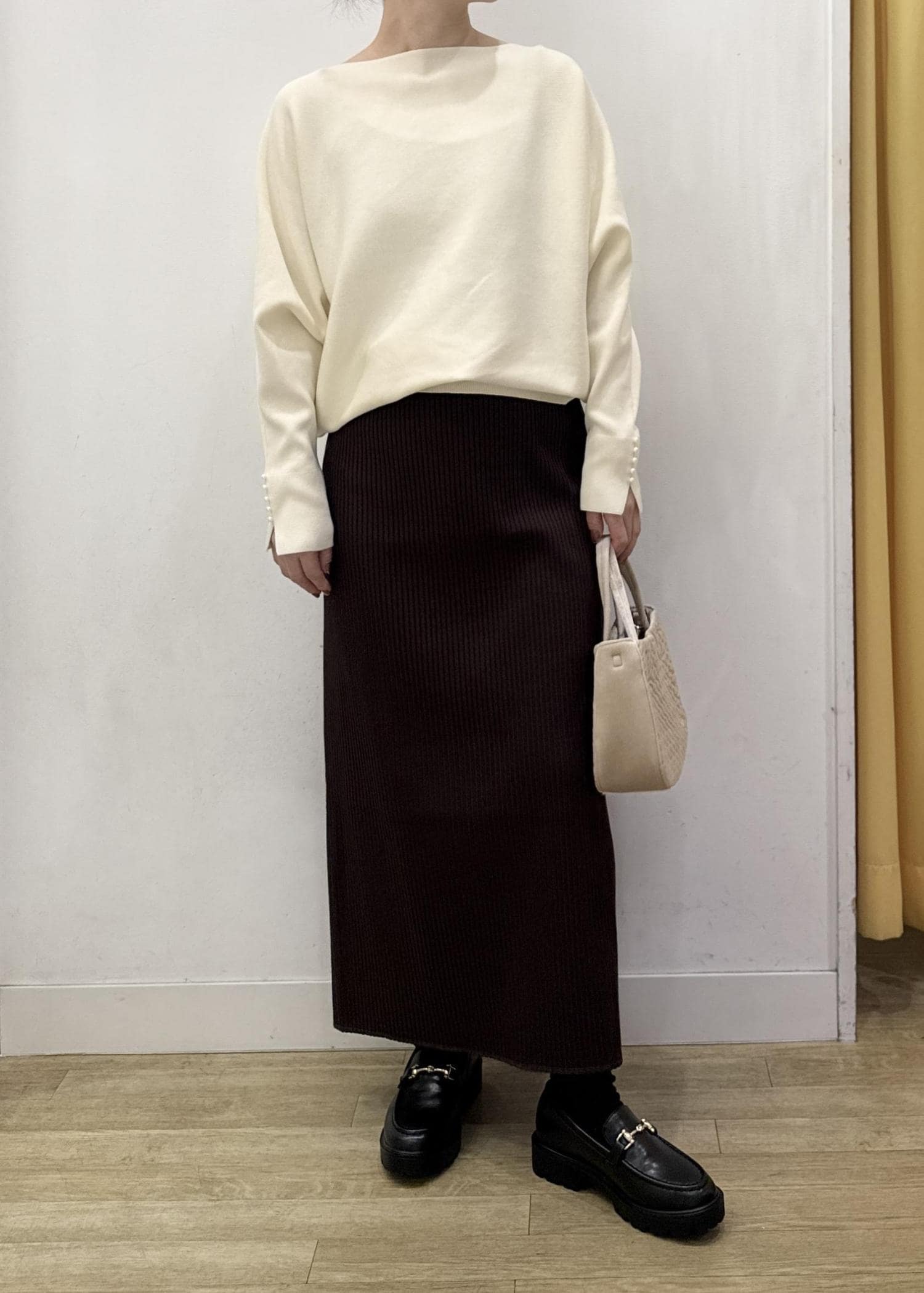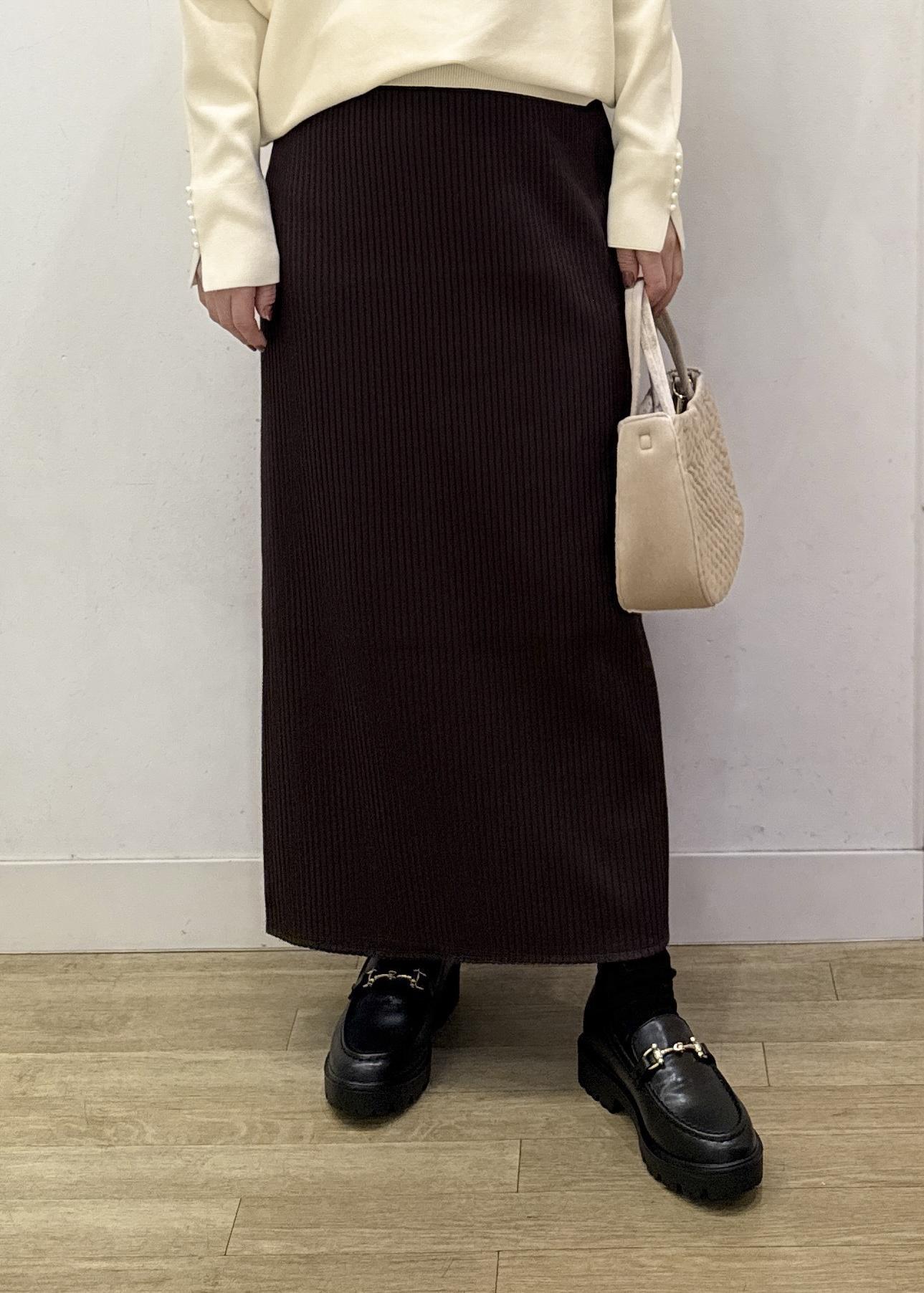 ROPÉ PICNICトタンテレコ Iラインリブニットスカートダークブラウン / 38¥4,499レビュー伸縮性のある素材感なのでアイラインシルエットでも穿きやすいスカート。