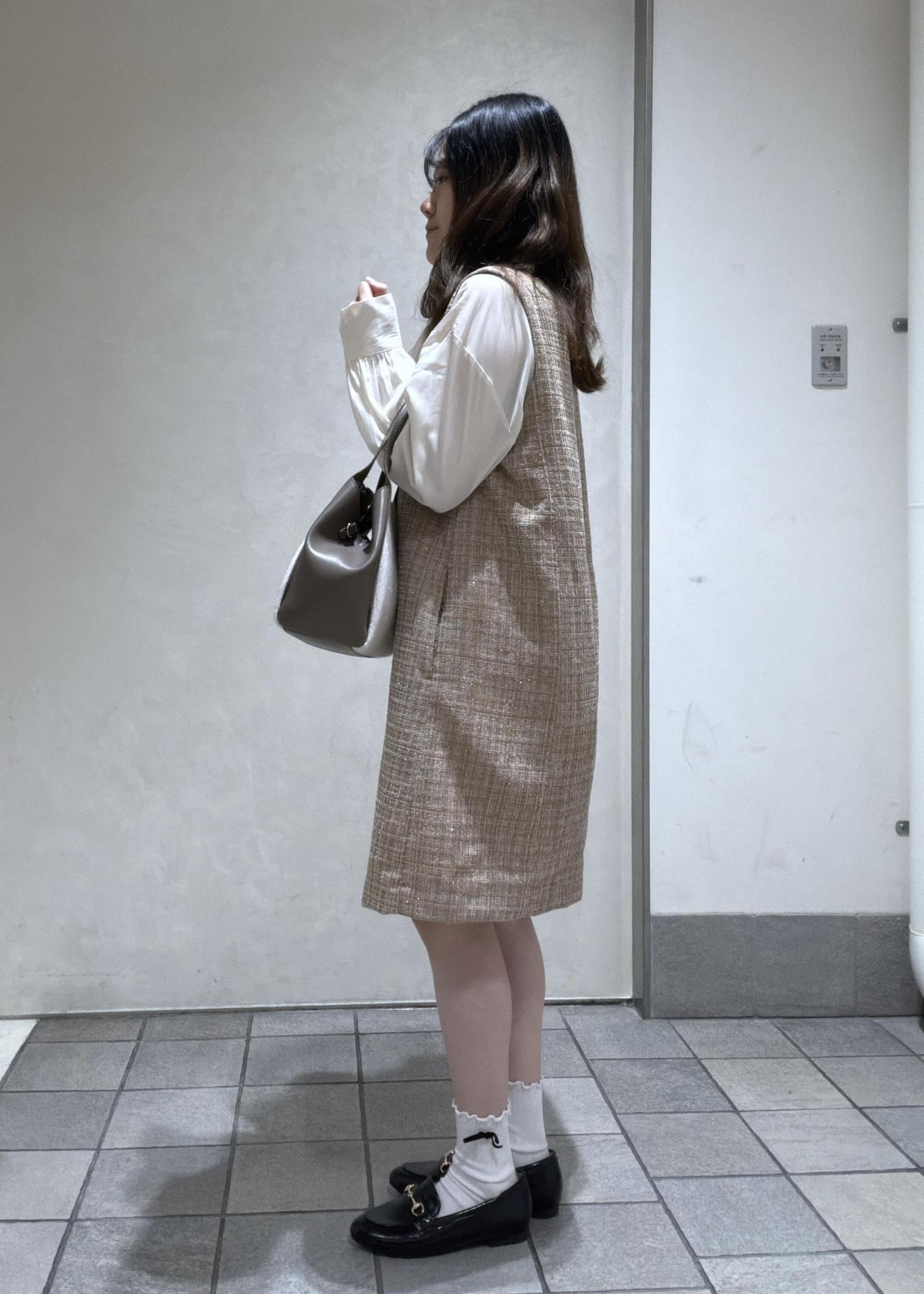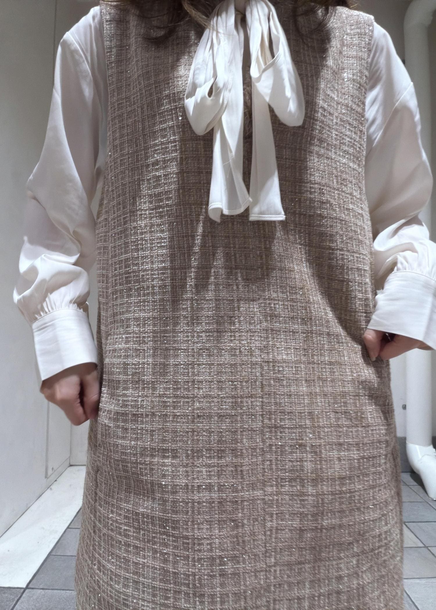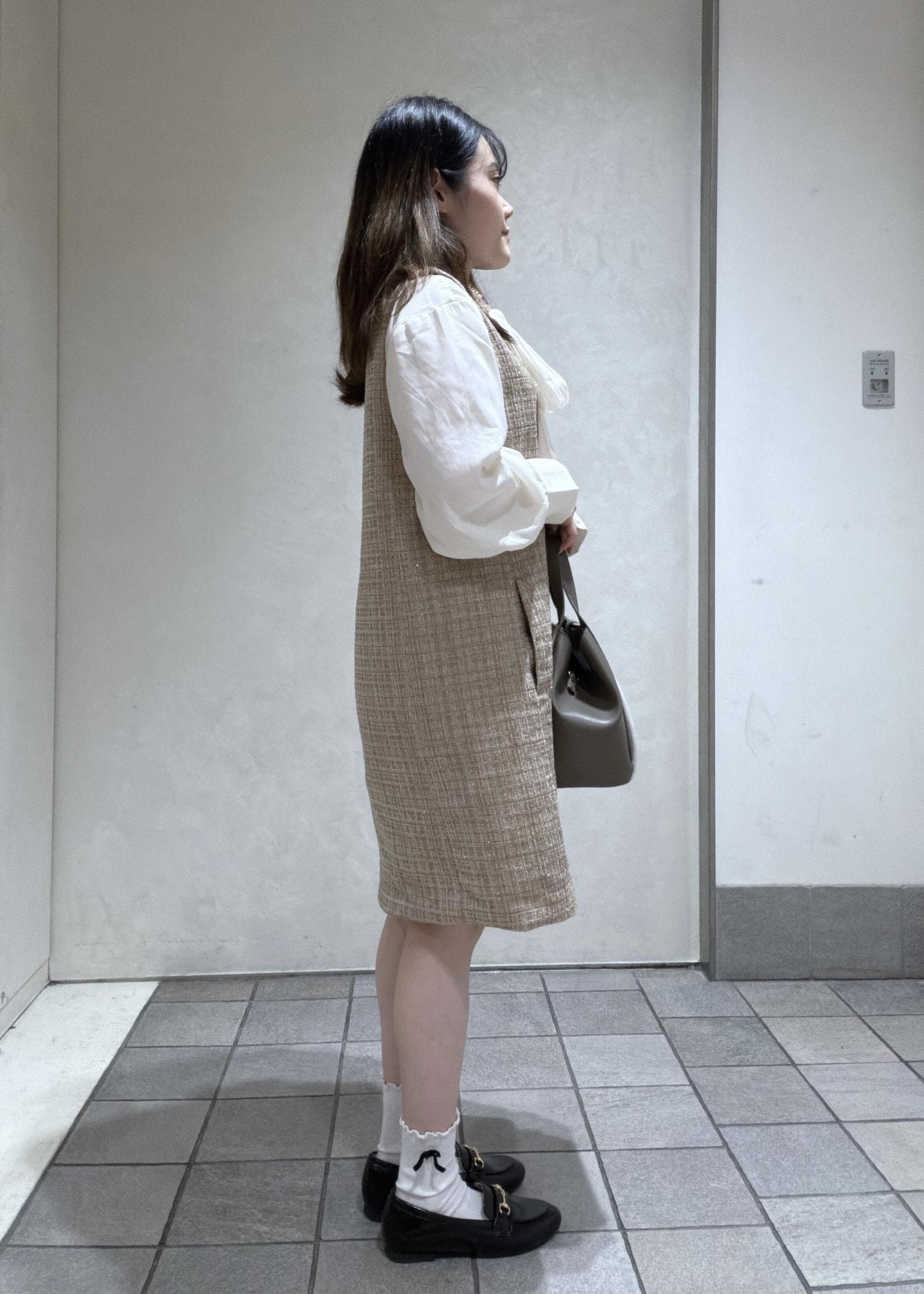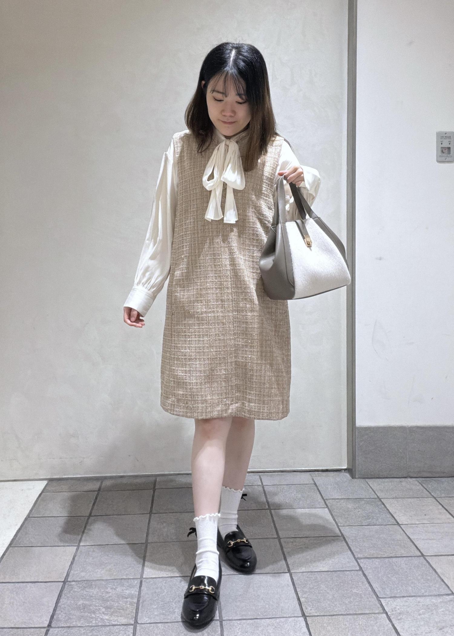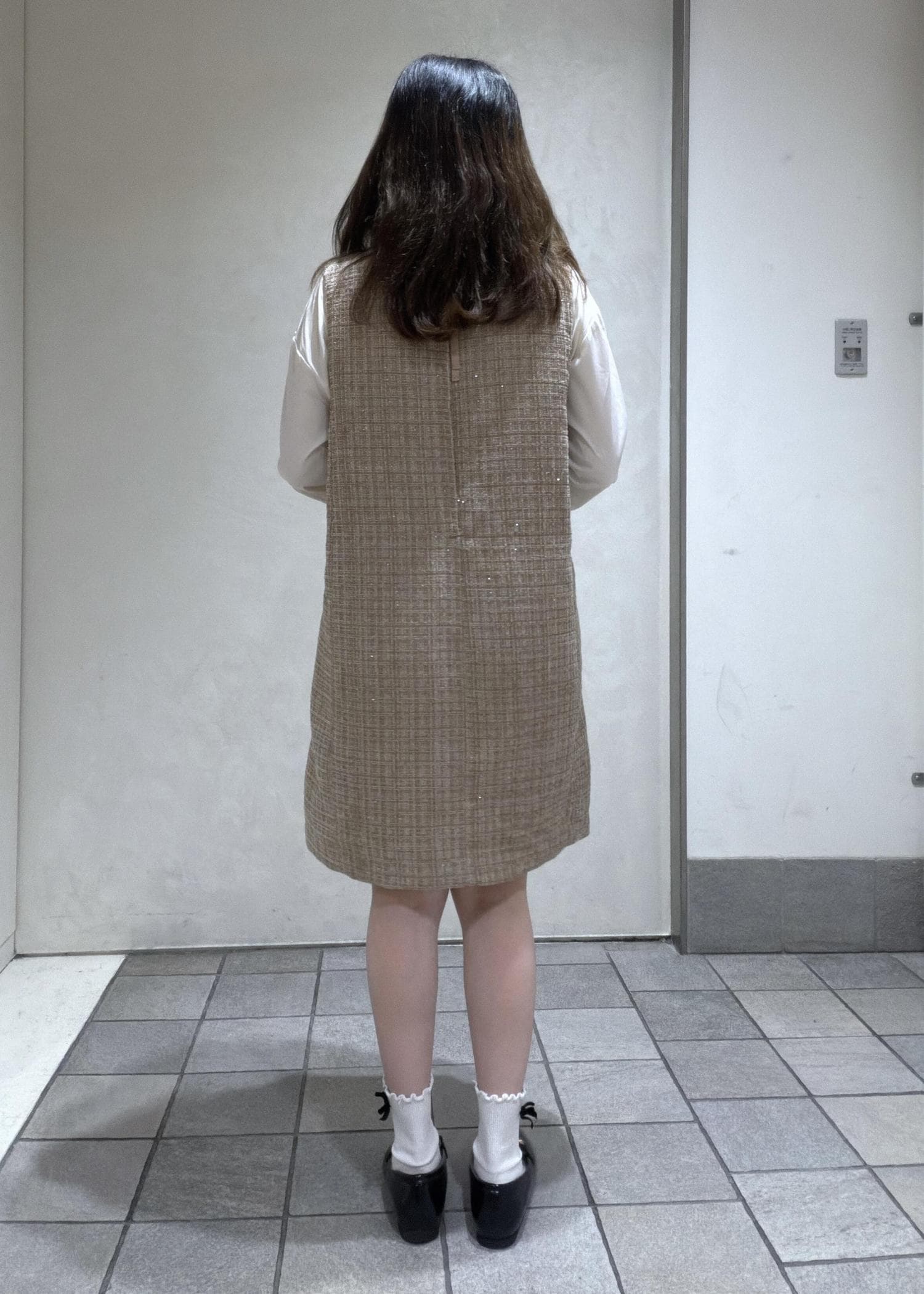 ROPÉ PICNICキーネックツイードジャンパースカート ワンピース/着丈が選べるベージュ系 / M¥8,998レビューツイードとラメ感が、可愛さと華やかさを演出してくれます!後ろのファスナーには引っ張りやすいリボンがついているので、着脱も楽ちんです。着丈が選べるのも嬉しいポイント!