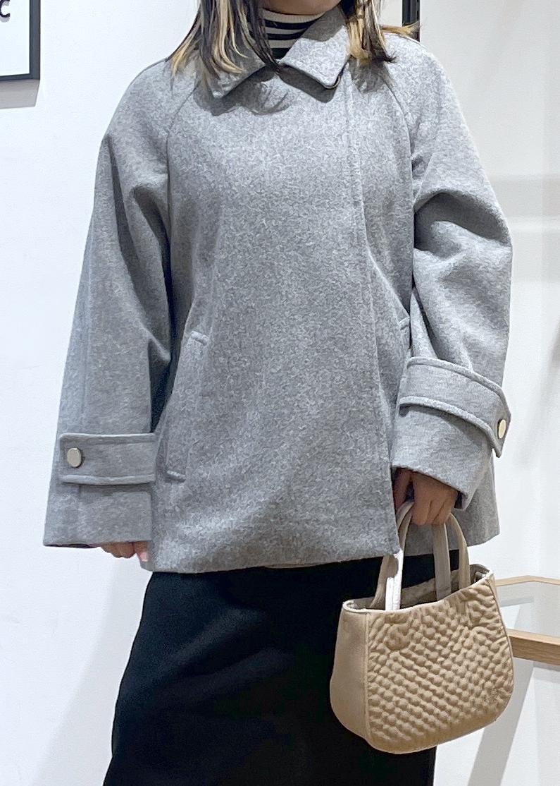 毎年大人気のジャージメルトンシリーズのコートです。金ボタンがとっても可愛く、女性らしい雰囲気になります。とっても軽くゆったりしているので厚手のニットでも楽ちんに着用していただけます。