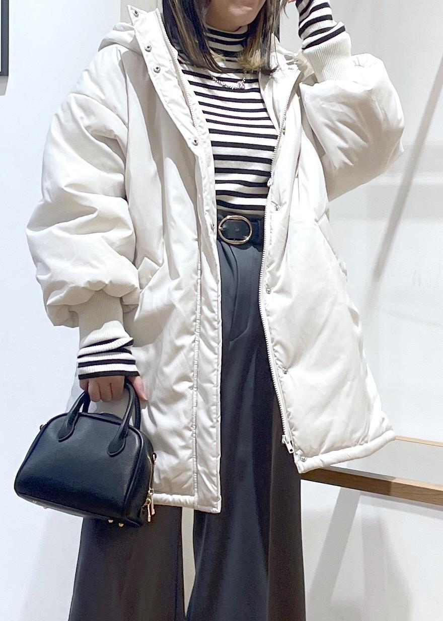 中綿なのでとっても軽く暖かいです。裾にはアジャスターがついており絞っていただく事もできます。お袖はリブになっており、袖まくりもできますし、長さを気にせず着用していただけます○