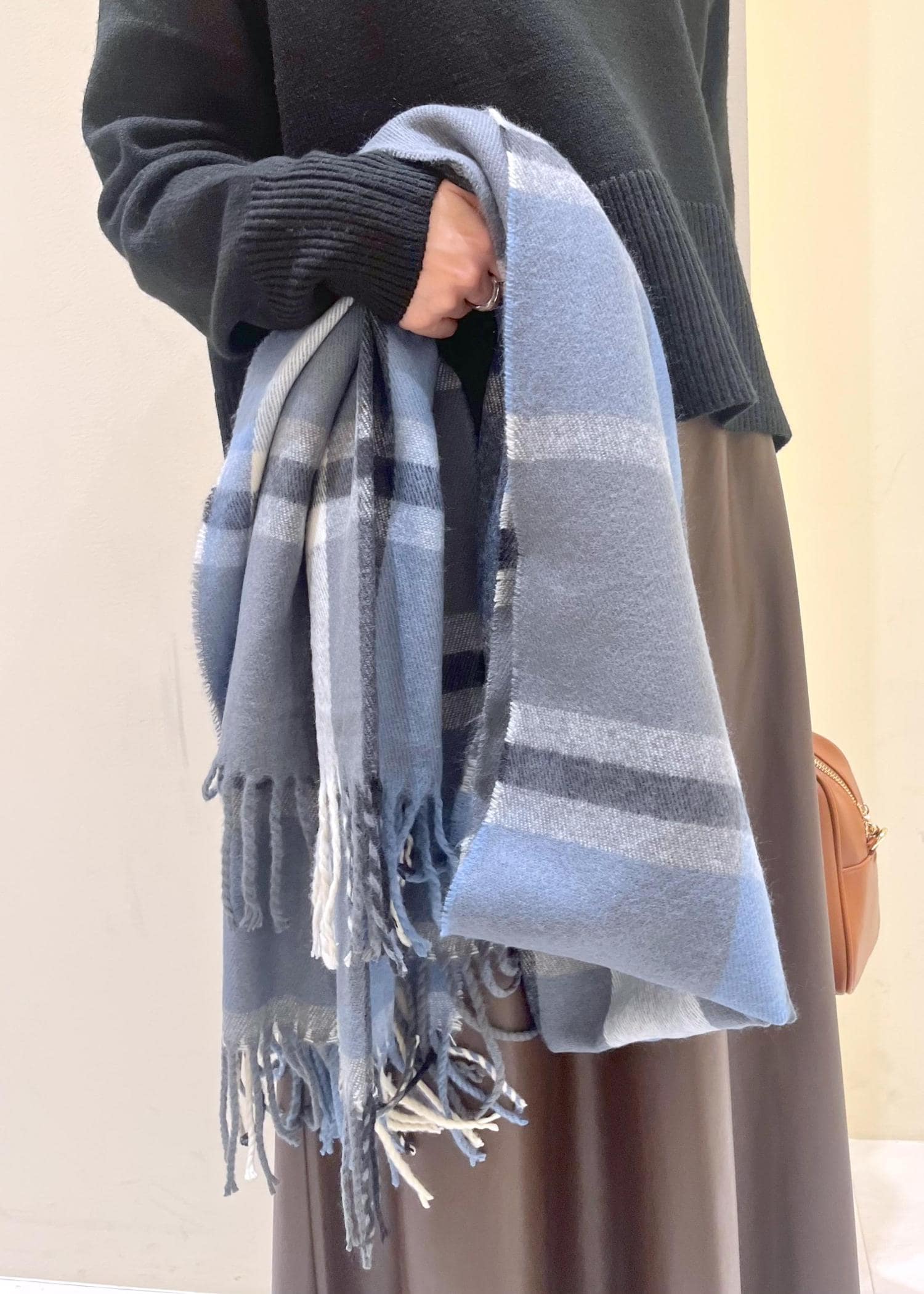 ROPÉ PICNIC PASSAGEチェックストールブルー系 / F¥2,970レビュー大判でマフラーやひざ掛けにも使えるサイズのストール。