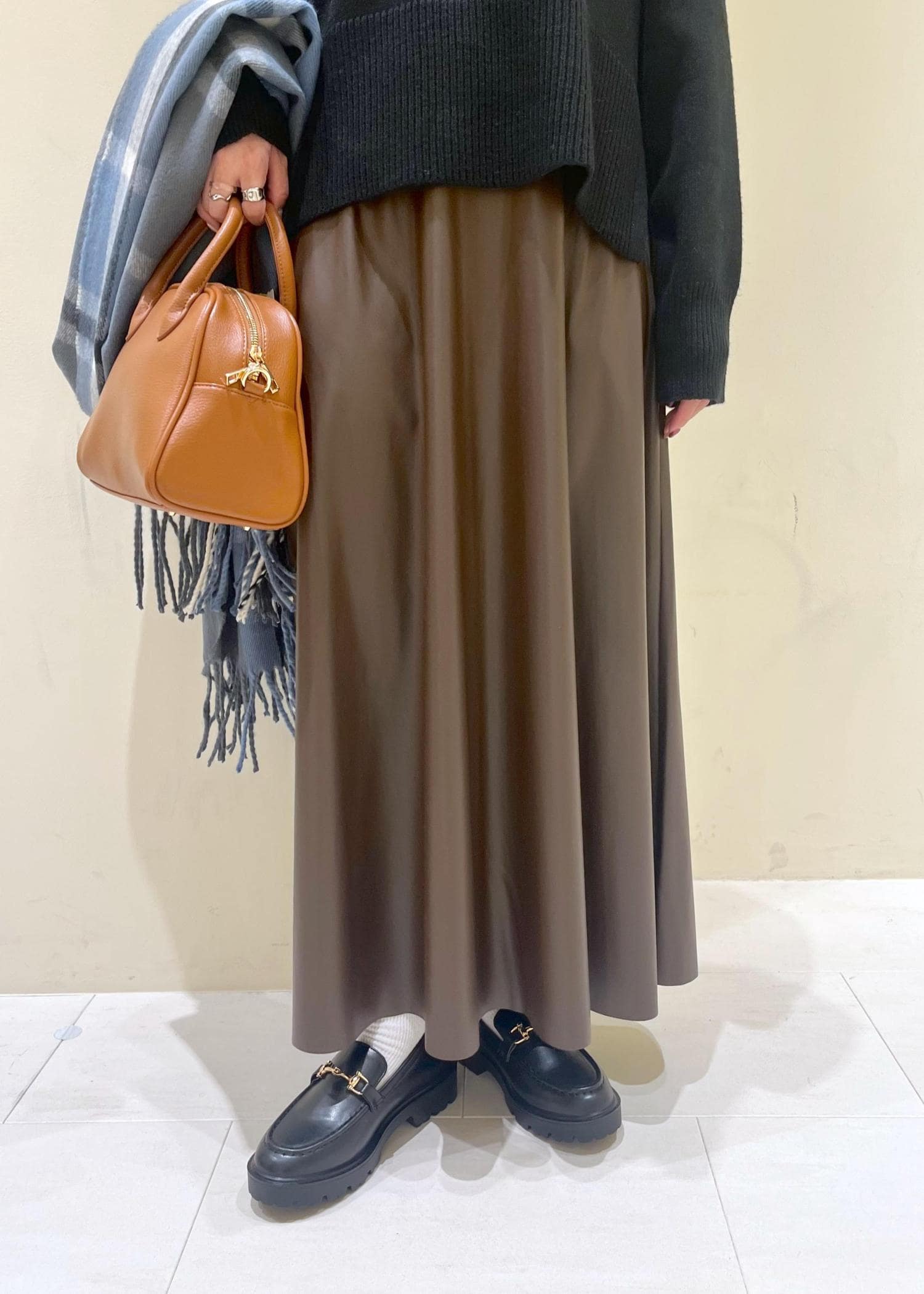 ROPÉ PICNICシンセティックレザーフレアロングスカートダークブラウン / S¥4,994レビュー薄手で軽いレザー素材。秋冬シーズンはもちろん晩夏や初春にも使いやすいデザインです。