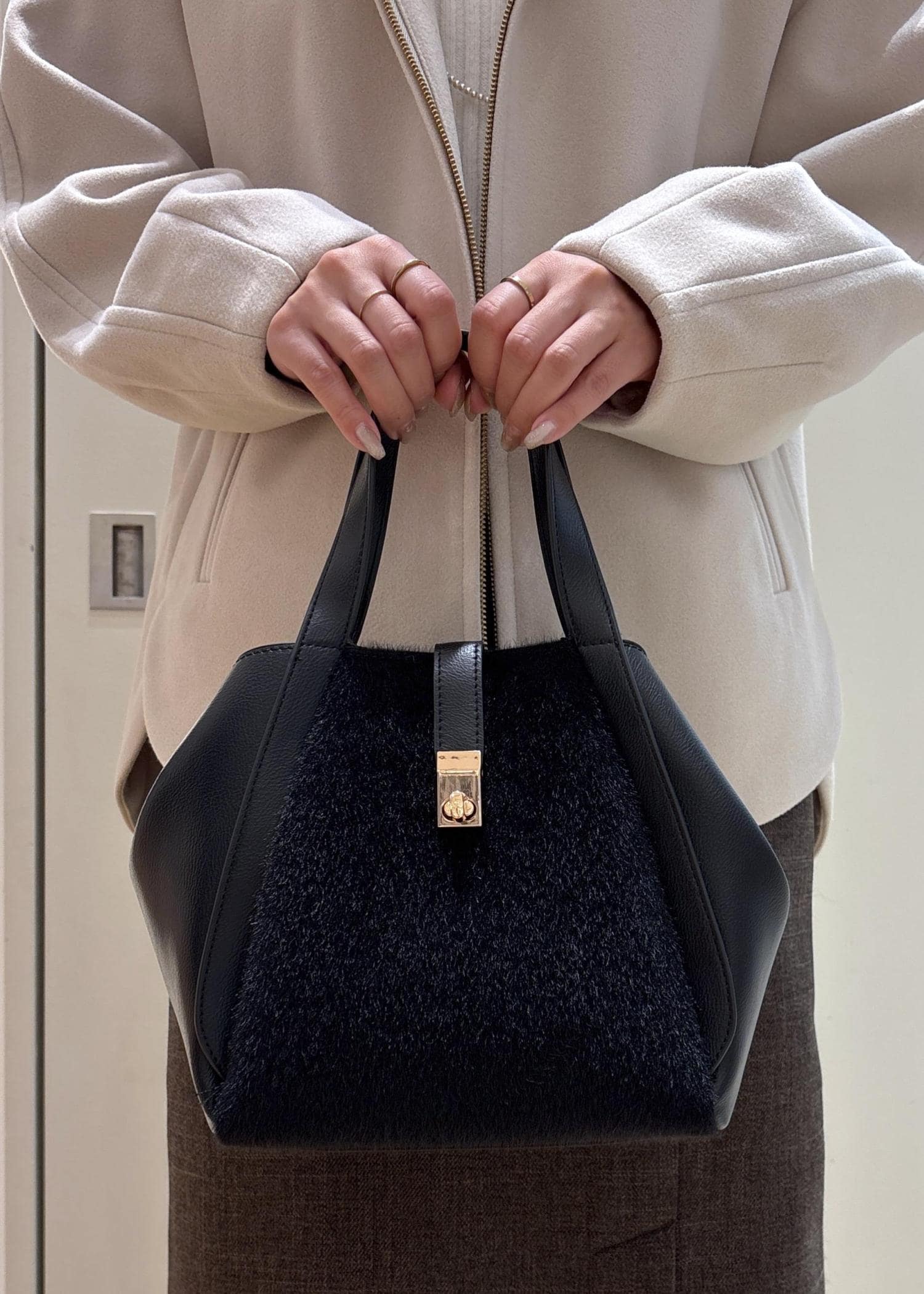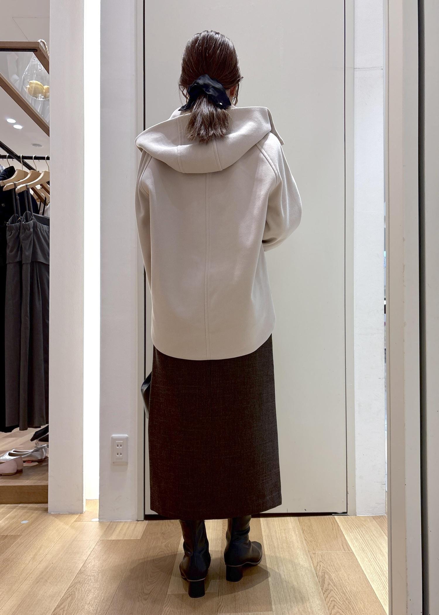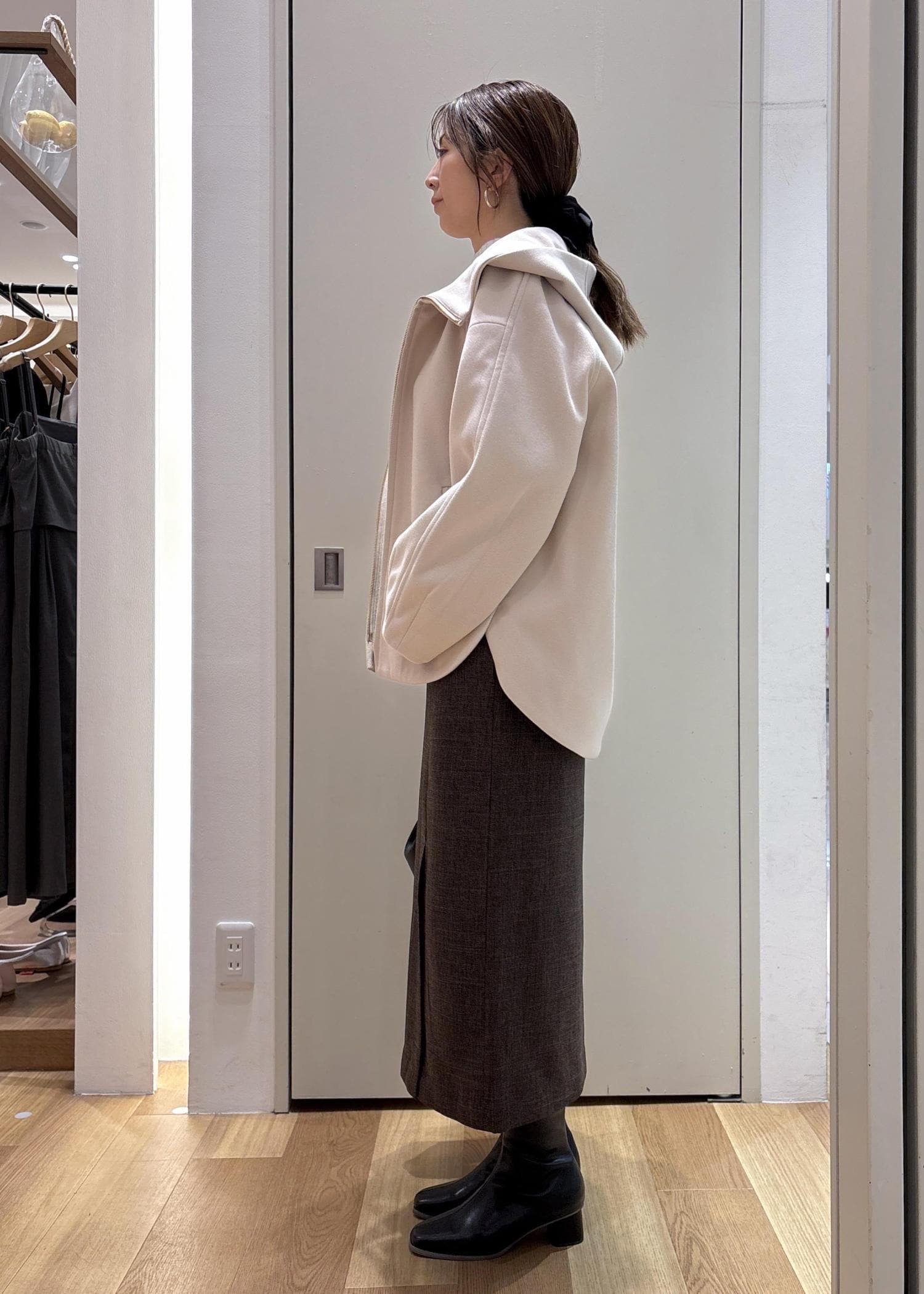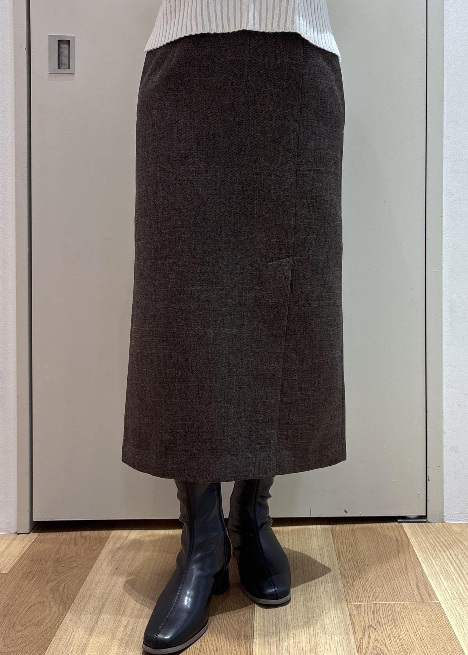 インナーのニットも毎年人気のリブ切り替えニットにタイトスカートを合わせて、きれい目なスタイリングにしました。