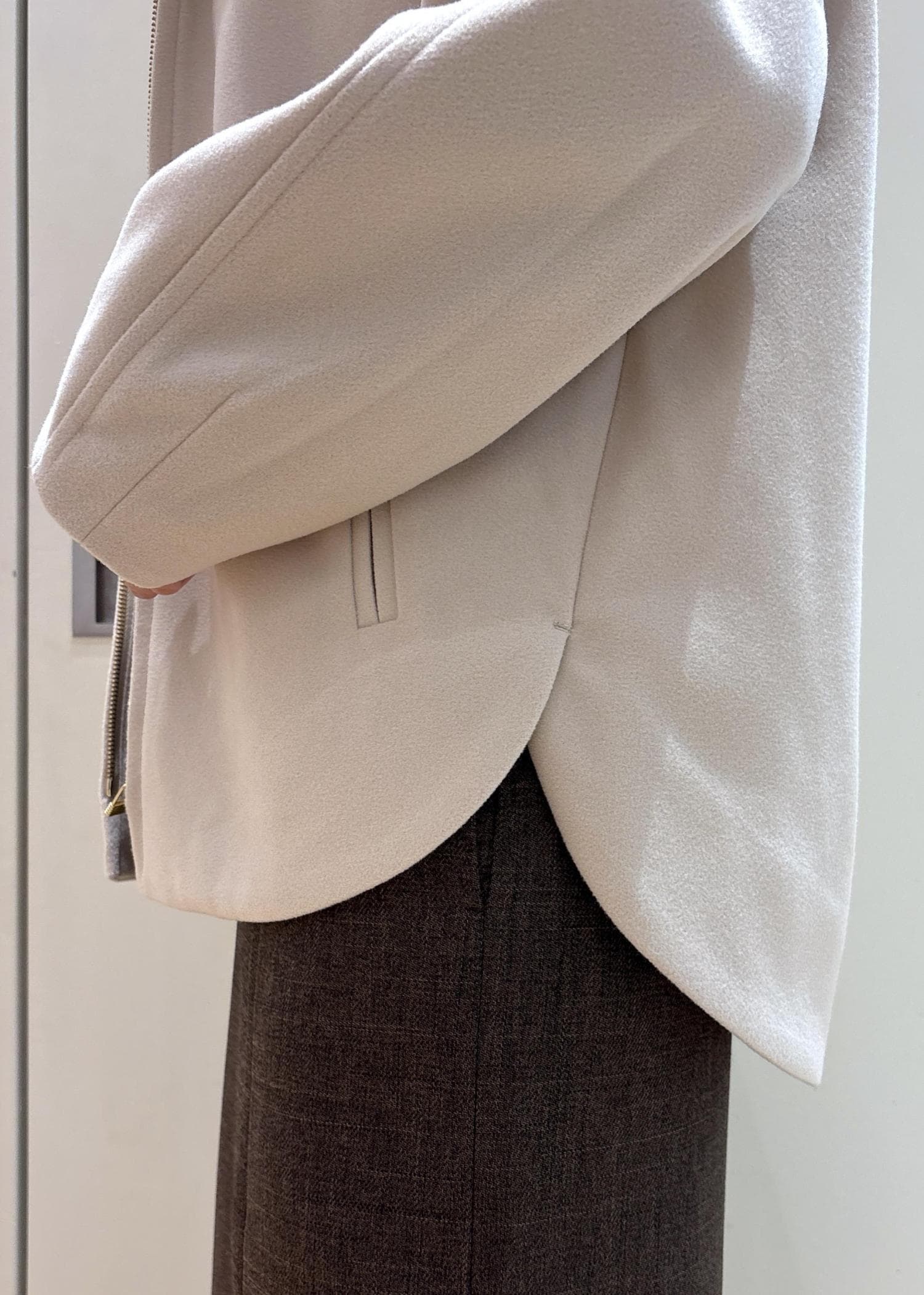 前後差のある丈はヒップが隠れる長さです。 -