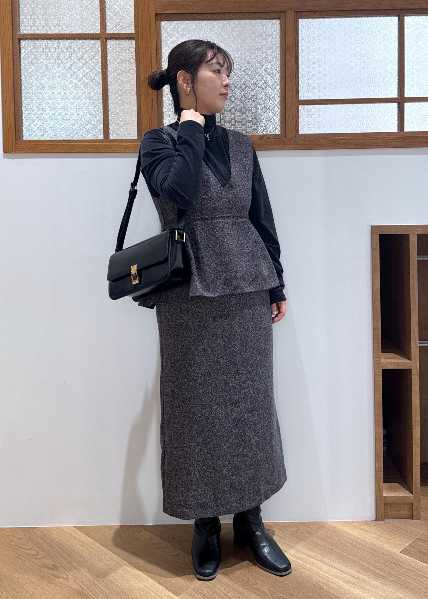 ROPÉ PICNIC【新色追加】レイヤード風ペプラムジャンパースカートダークブラウン / M¥7,997レビュー身長154cmでMサイズ着用で足首見える丈感です。ウエスト部分はフラットでスッキリ見えし、ペプラムも広がり過ぎないので幼さは無く、大人な程よい甘さあるスタイリングになります。