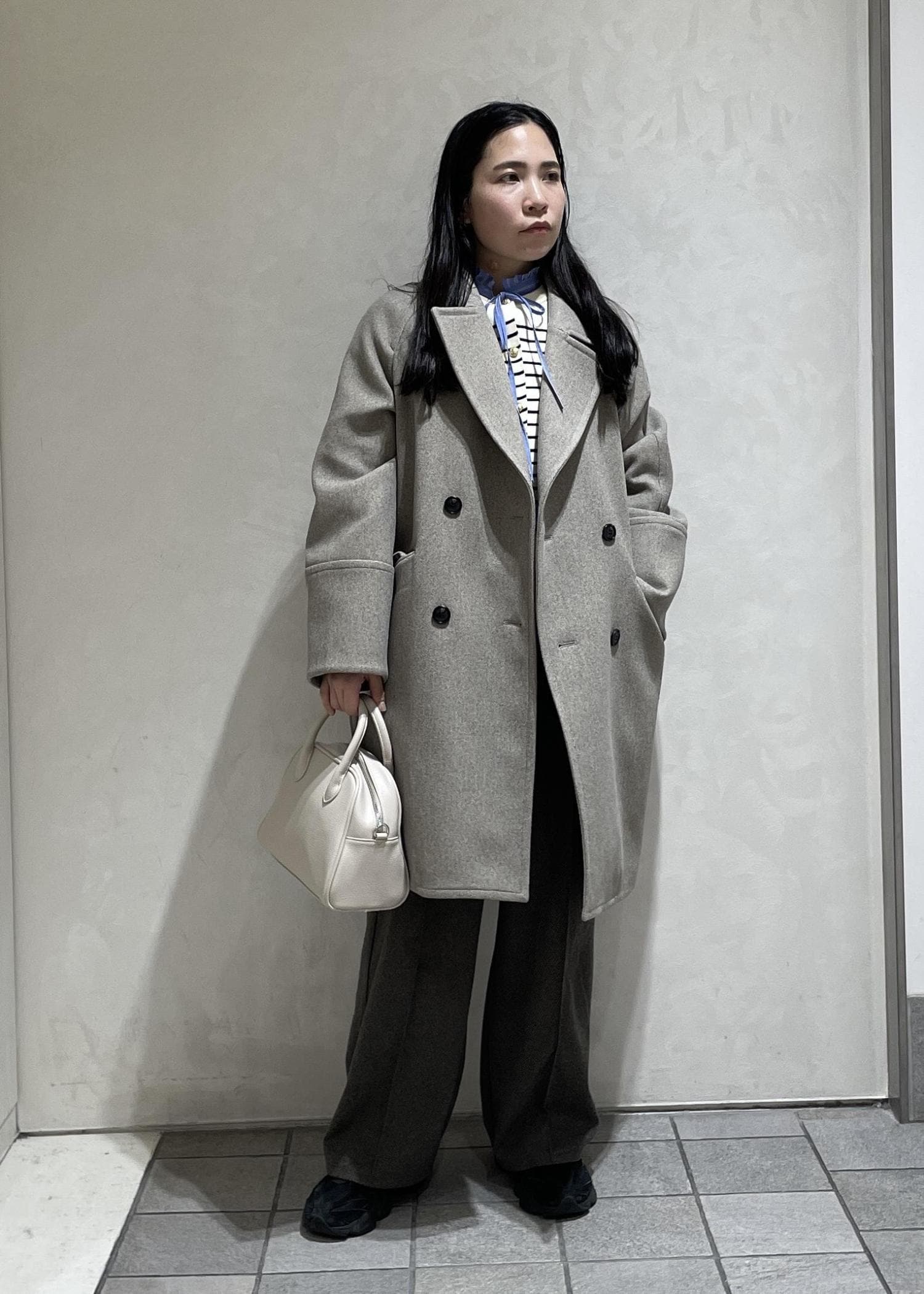 丈の長さも長すぎず、膝くらいなので小柄の方もバランスが取りやすいです。