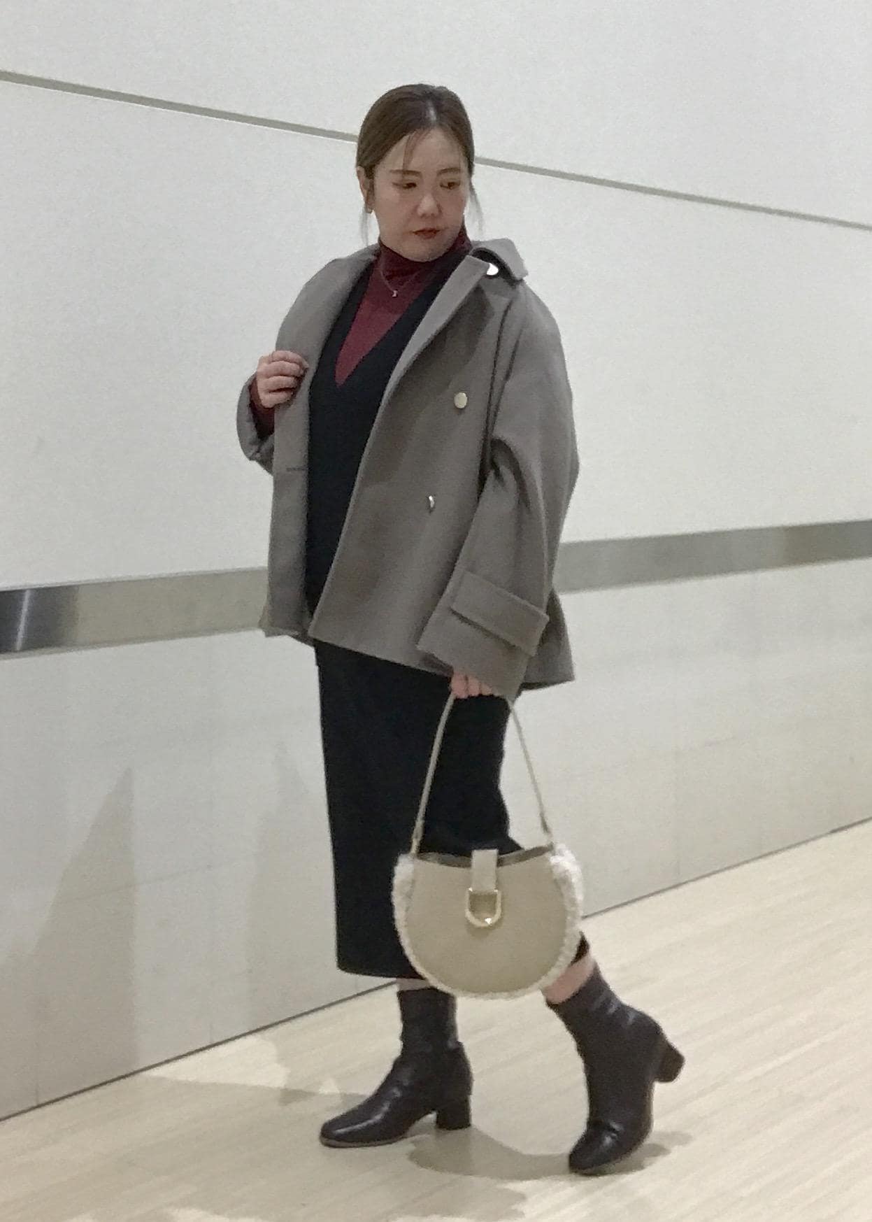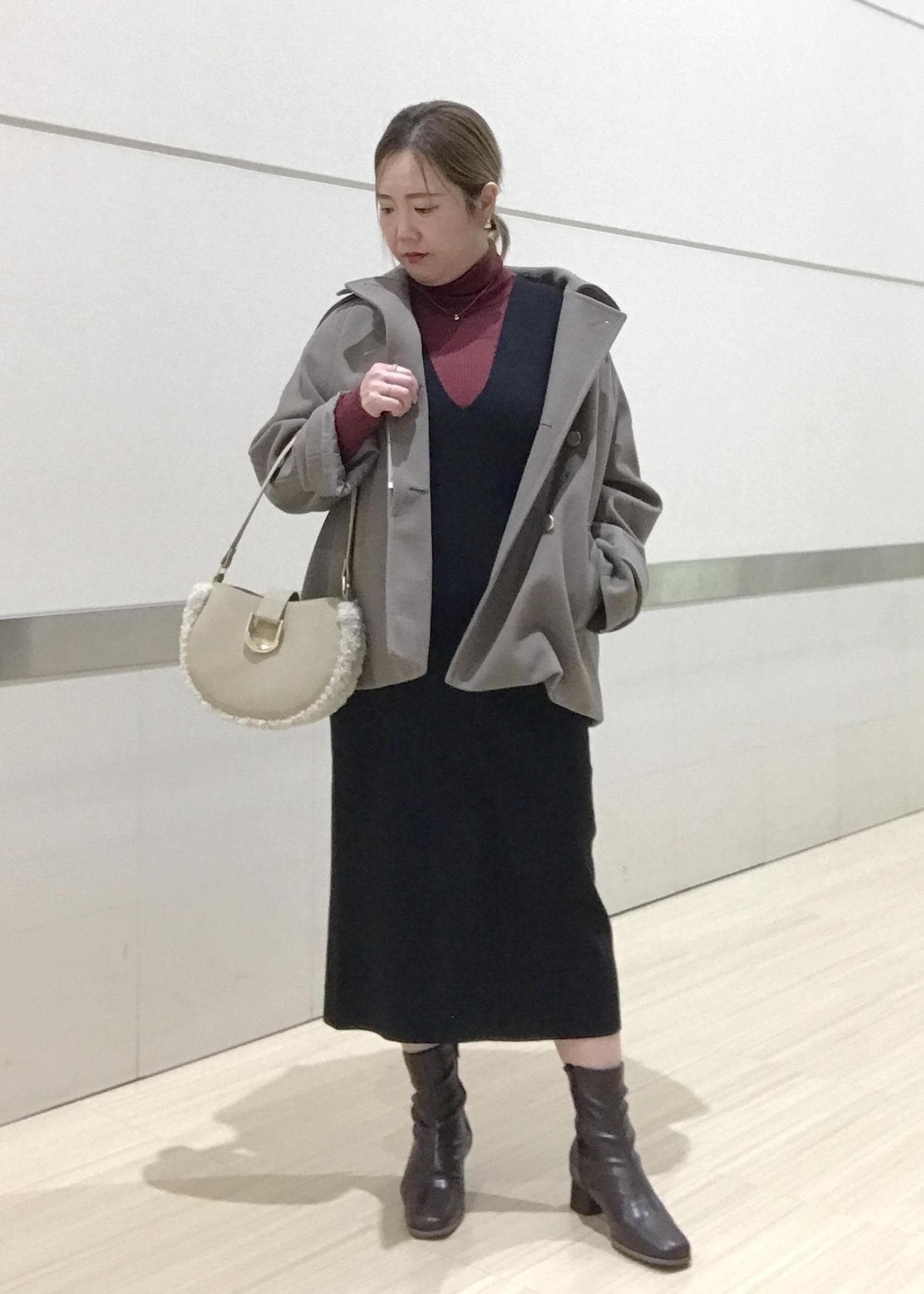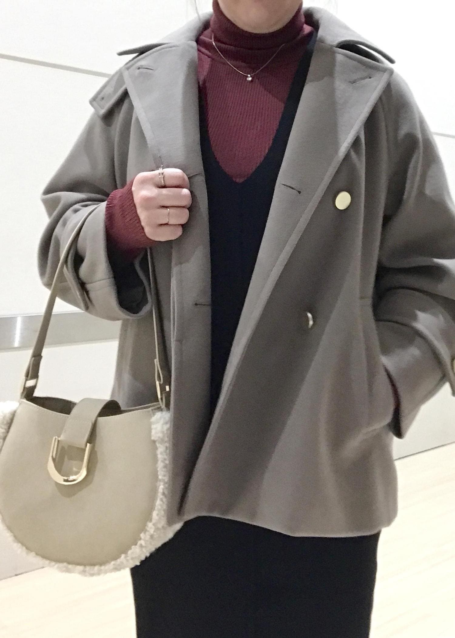 見た目よりも軽量で、かなりゆとりもあるので、デザインのあるトップスローゲージニットの上からでも着膨れ感なく着用いただけます。