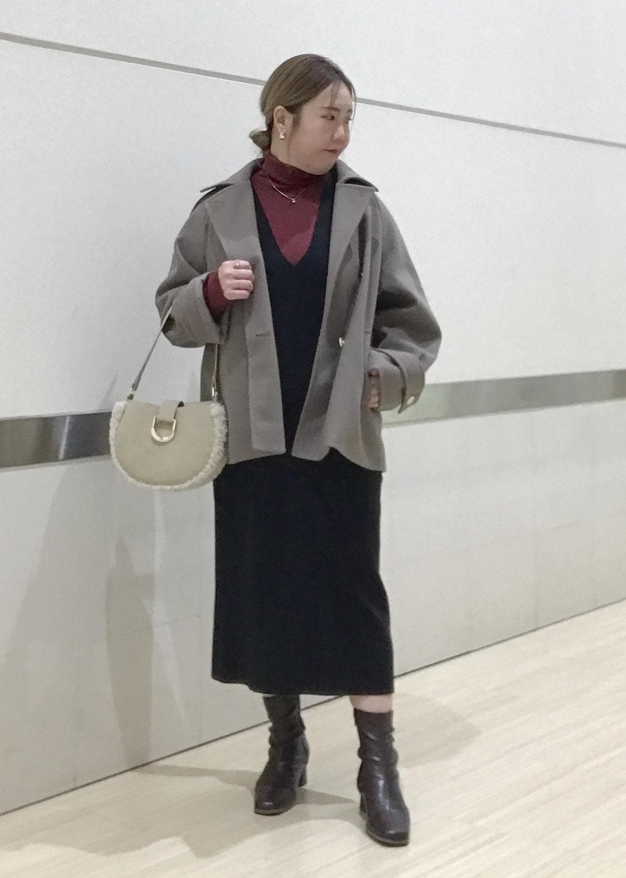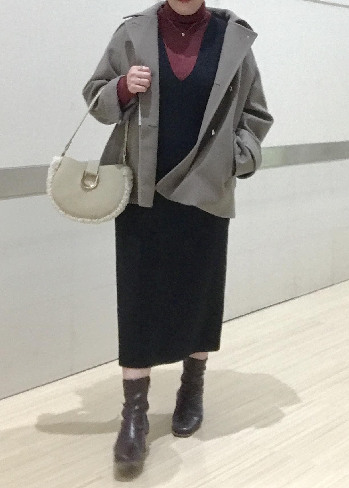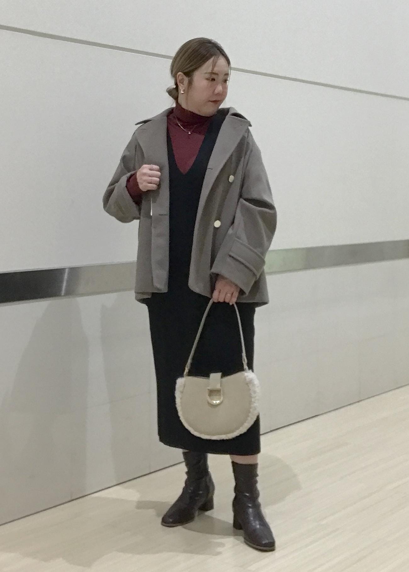 見た目よりも軽量で、かなりゆとりもあるので、デザインのあるトップスローゲージニットの上からでも着膨れ感なく着用いただけます。