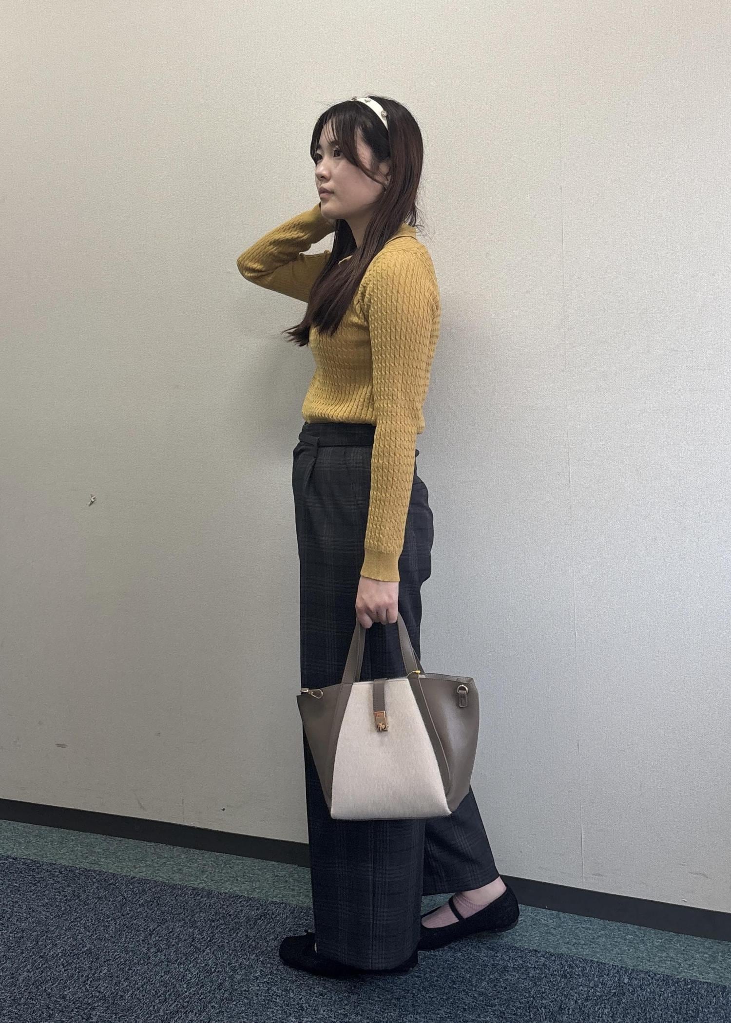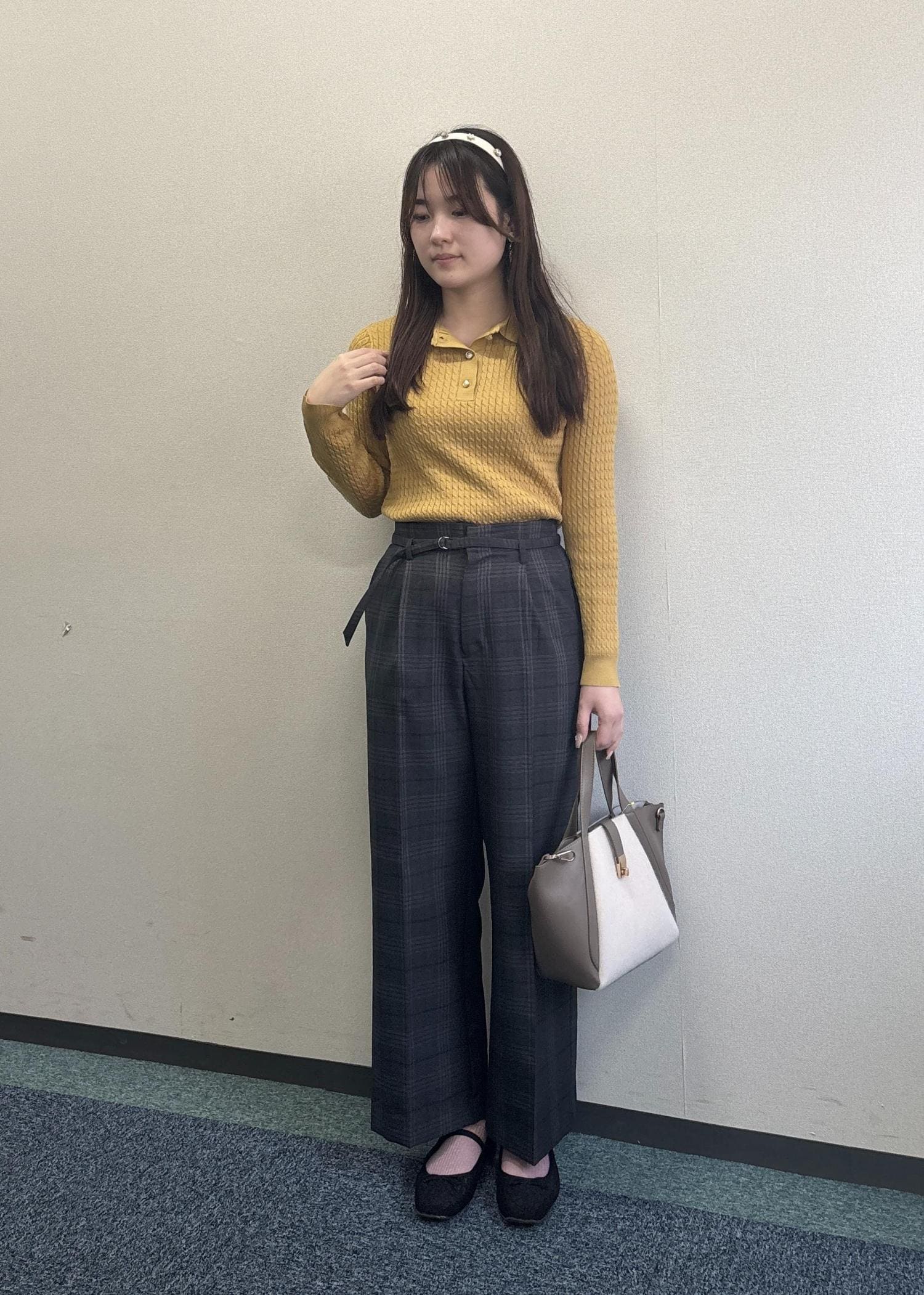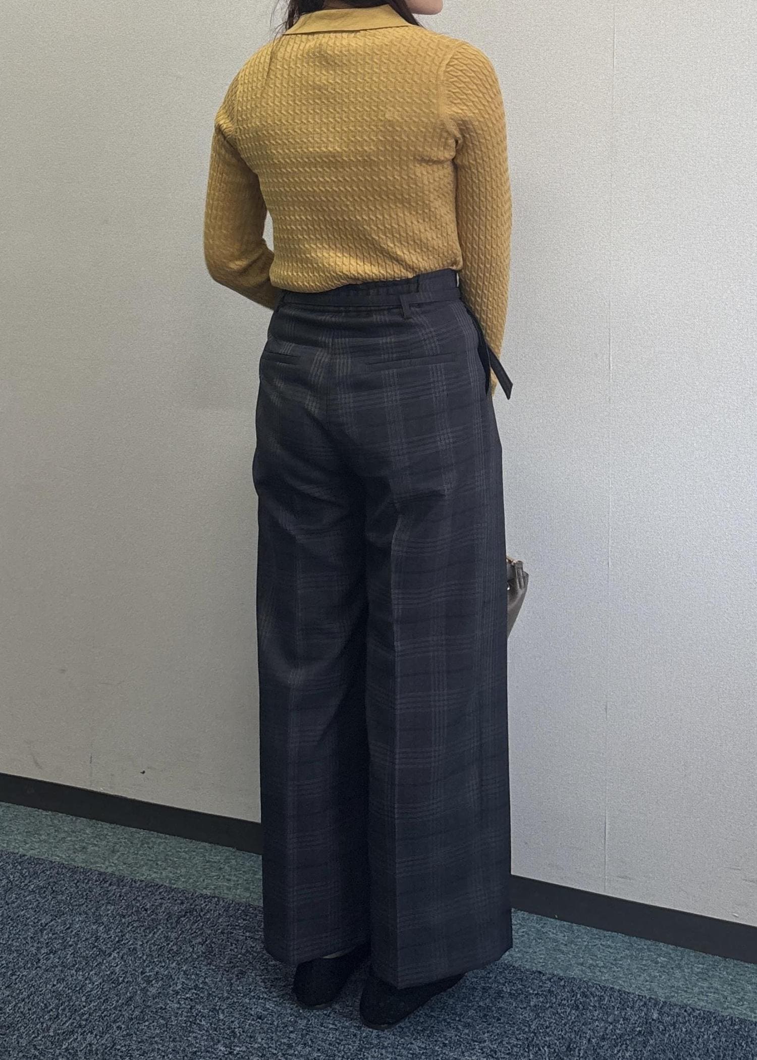 パンツは、落ち着いたグレーのチェックデザインをチョイス。