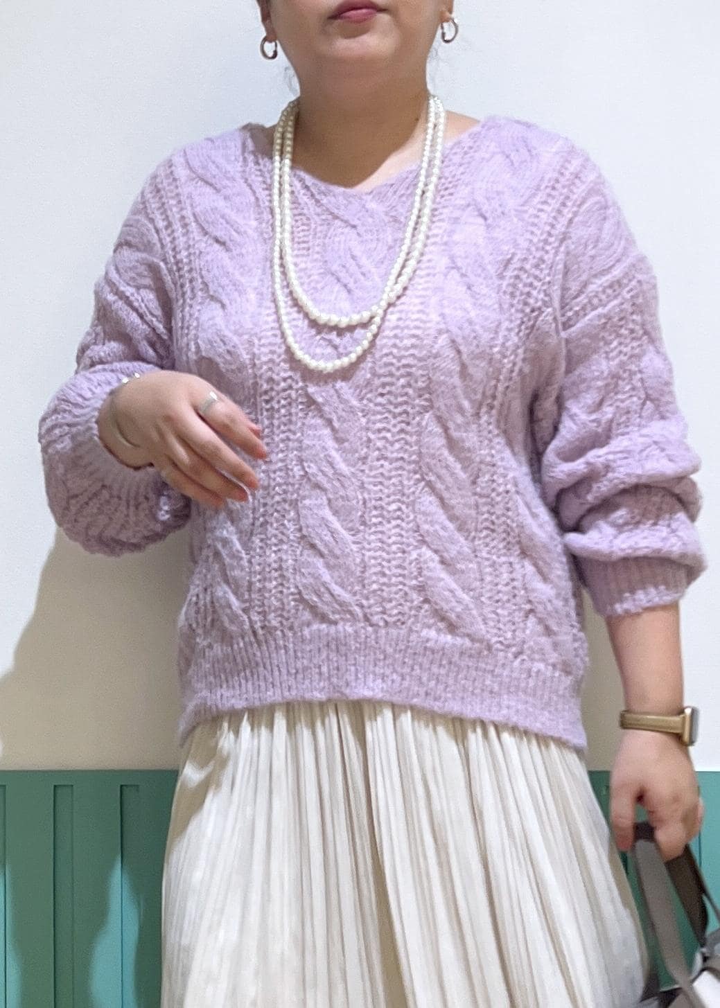 ROPÉ PICNICゆるケーブル編みVネックニットラベンダー / F¥5,489レビュー首元の空きがちょうどよく、