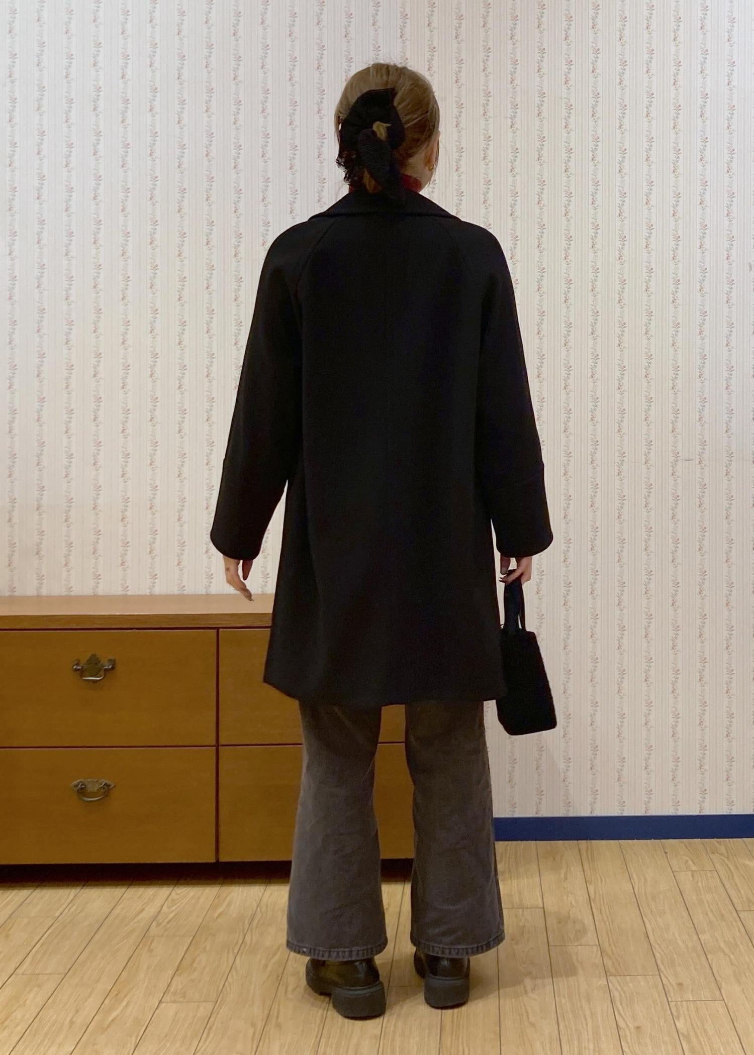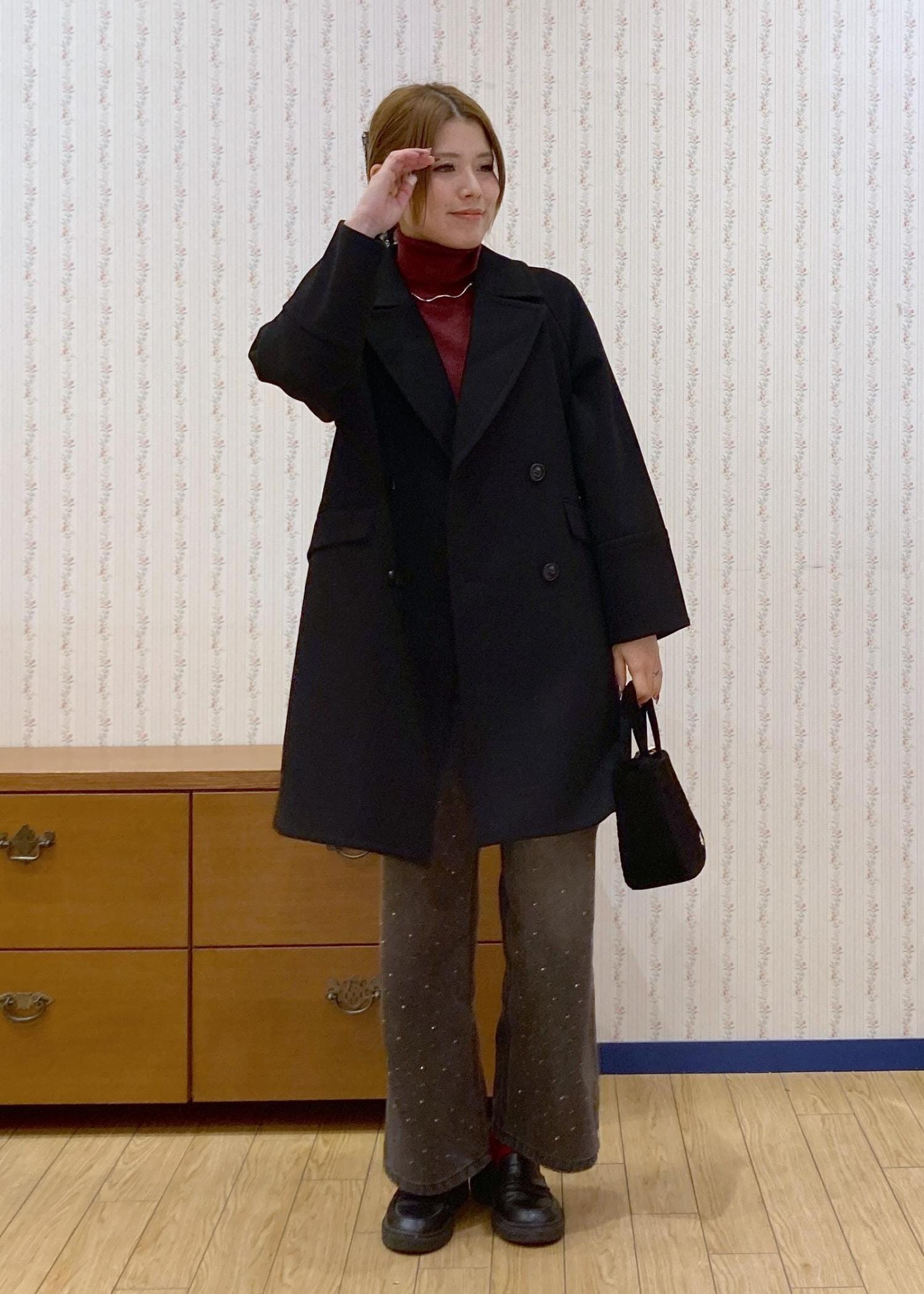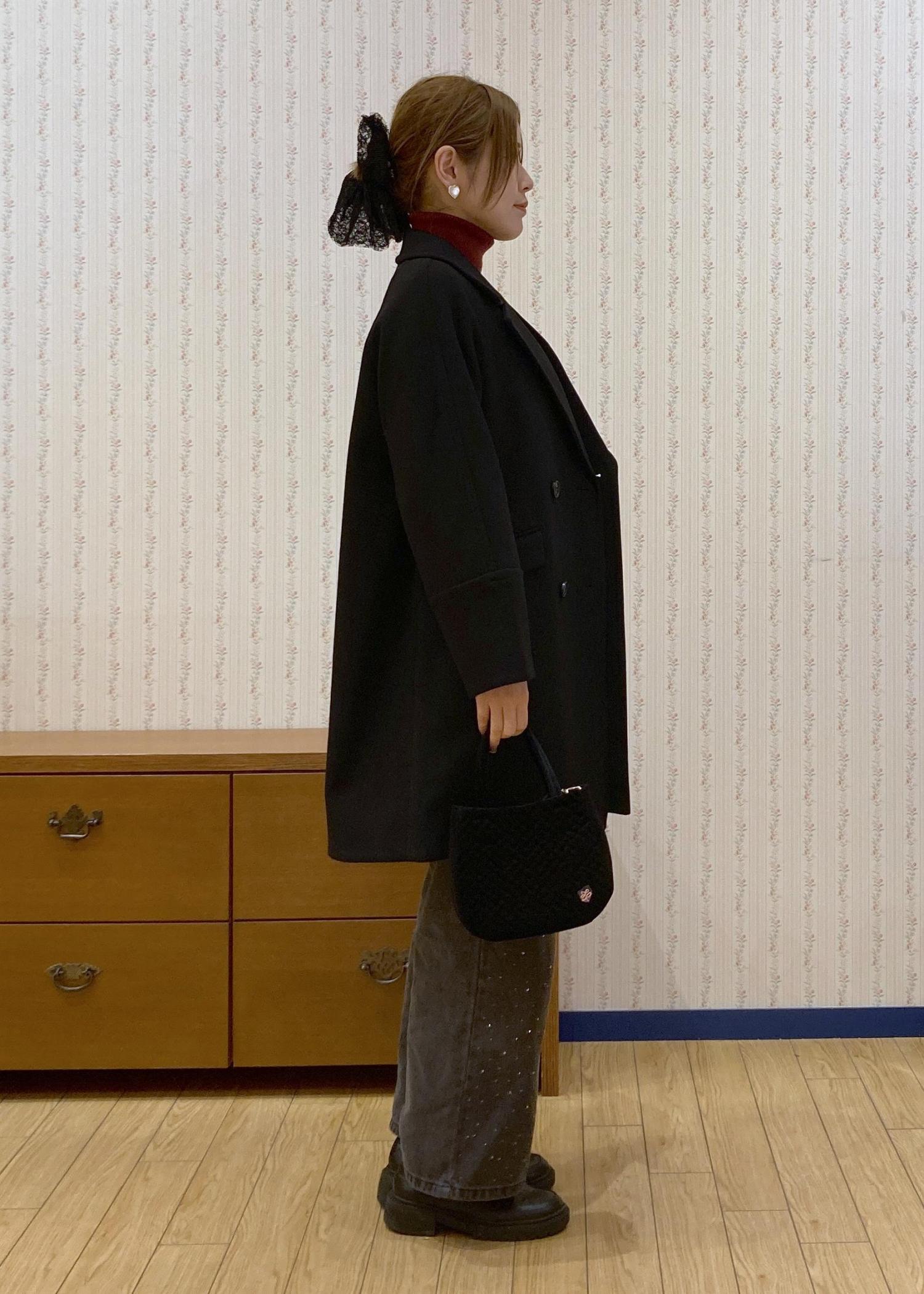 キレイめなコートにカジュアルなデニムを合わせて抜け感をプラスしたのがポイントです。