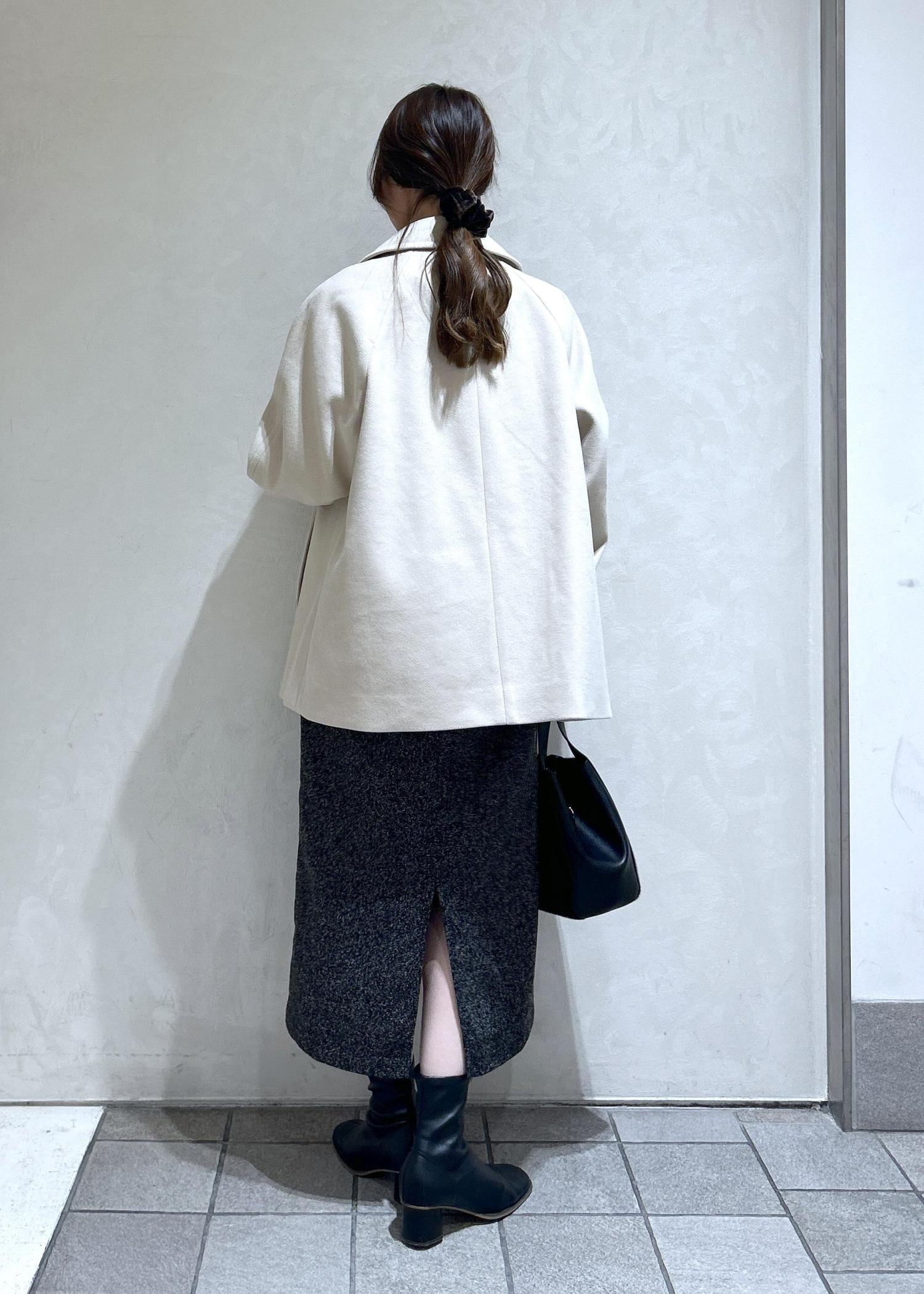 お袖、肩周りはゆったりしているので厚めのニットを中に着られるので着込むスタイリングもできちゃいます。 -