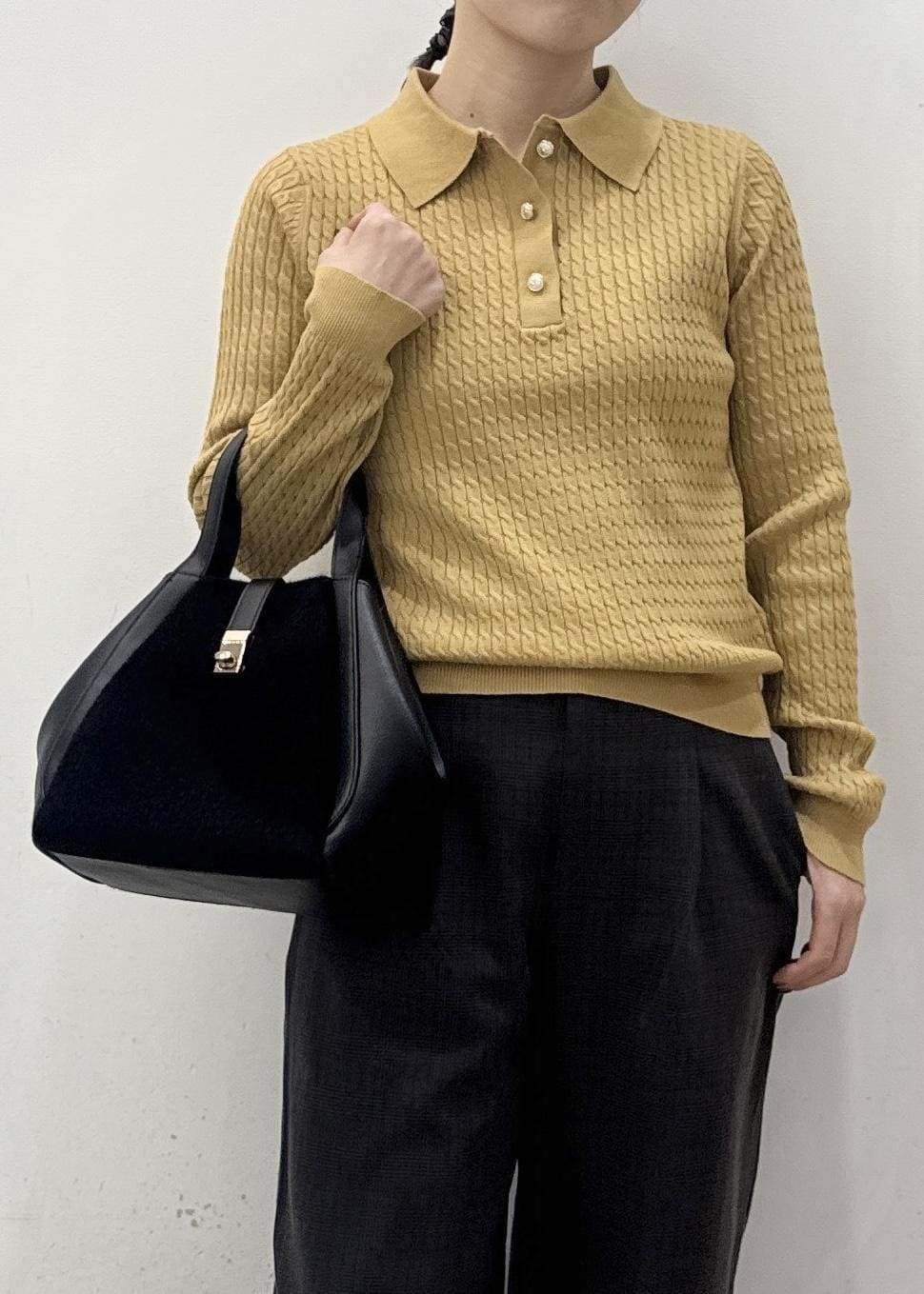 ROPÉ PICNICポロカラーミニケーブルニット/イージーケアカラシ / F¥5,489レビュー程よくフィット感のあるジャストなサイズ。