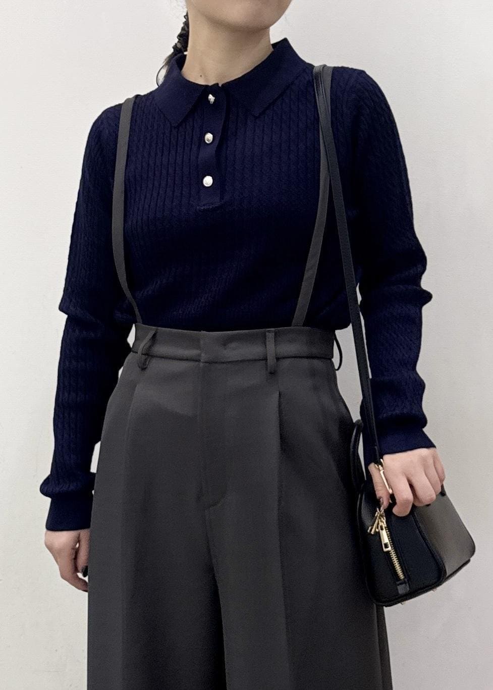 ROPÉ PICNICポロカラーミニケーブルニット/イージーケアネイビー / F¥5,489レビュー程よくフィット感のあるジャストなサイズ。
