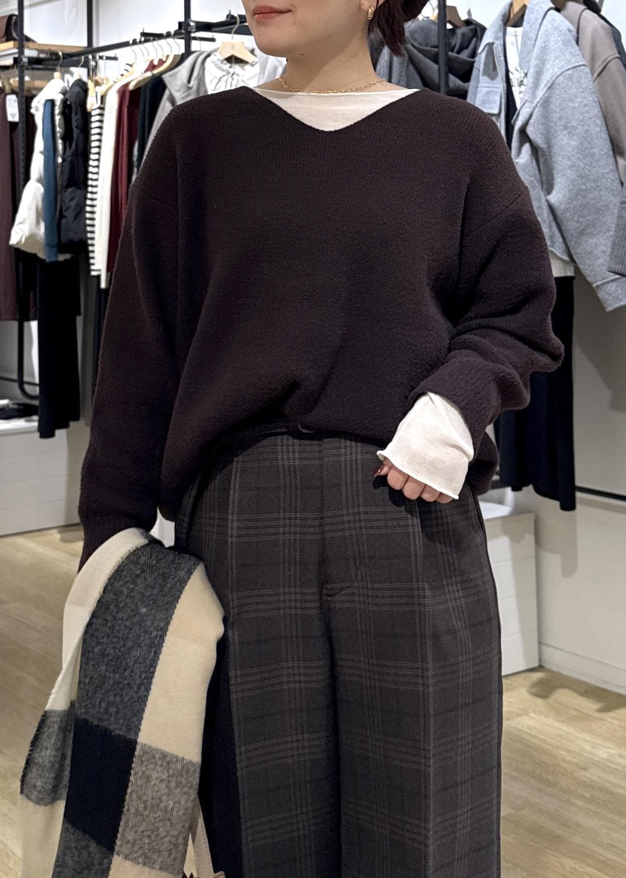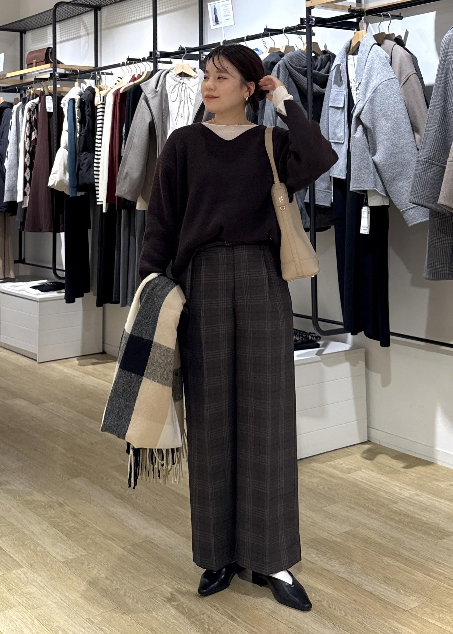トレンドのブラウンカラーをポイントに、もこもこニットやチェック柄で秋冬らしいコーデにしてみました!