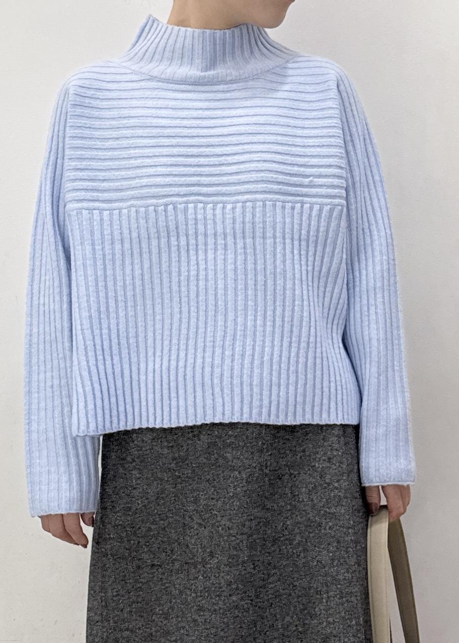 首元も窮屈感が気にならないゆるっとハイネックで、ハイネックデザインが高すぎないのでタートルが苦手な方でも着やすいデザインだと思います。 -