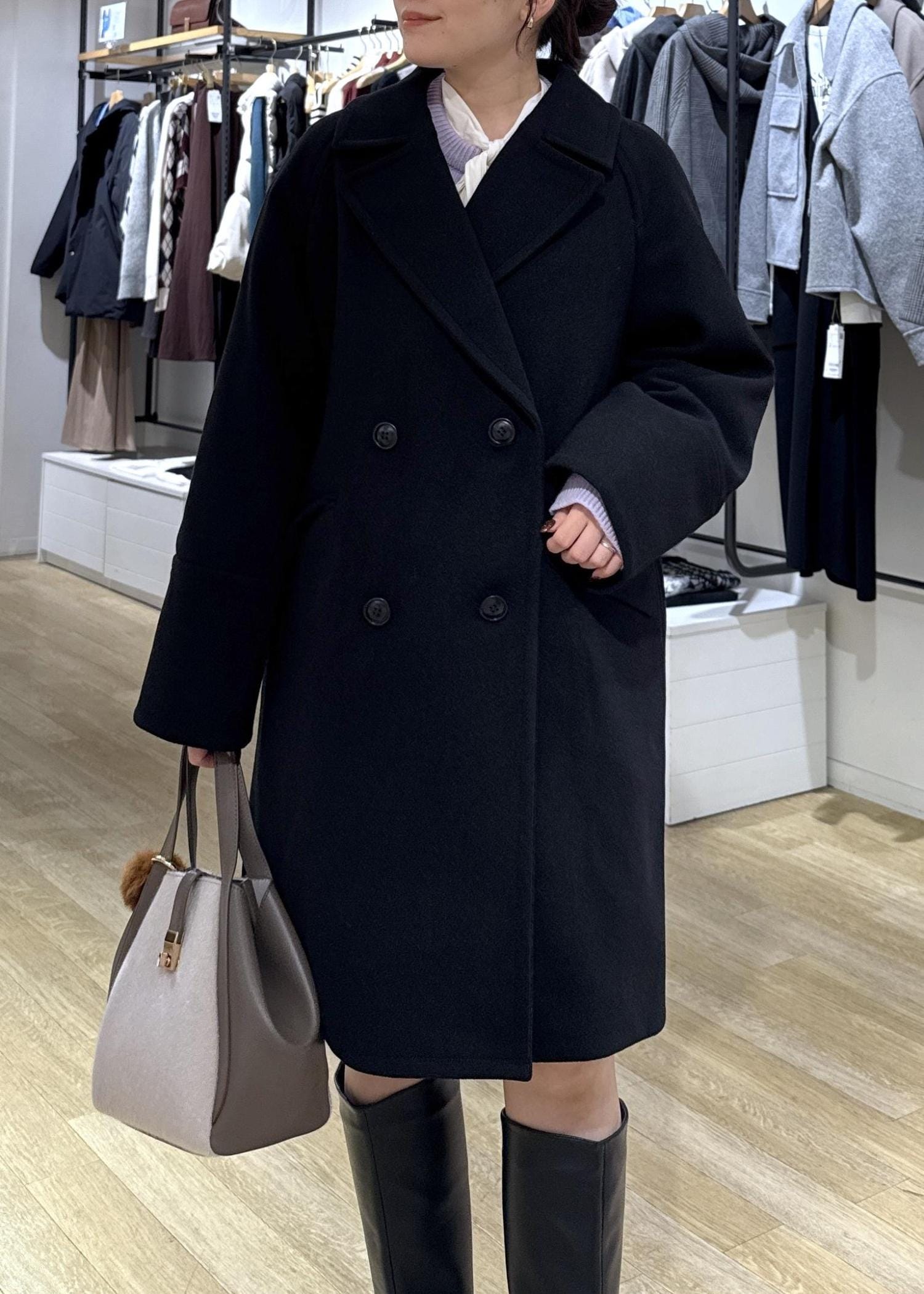 ROPÉ PICNICジャージメルトン無地&チェックオーバーPコート/一部WEB限定カラー・リンクコーデブラック / M¥10,989レビュー身幅や袖周りゆとりのあるオーバーサイズなので、中に着込んでも着心地ラクです。ロングすぎないので低身長さんにもおすすめです。