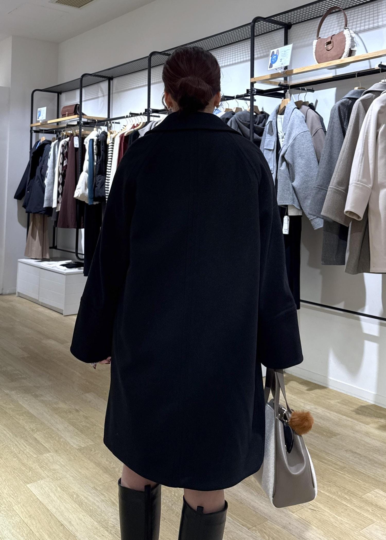 甘めな要素が多いので、アウターはブラックで大人っぽさをプラスしてみました◎
