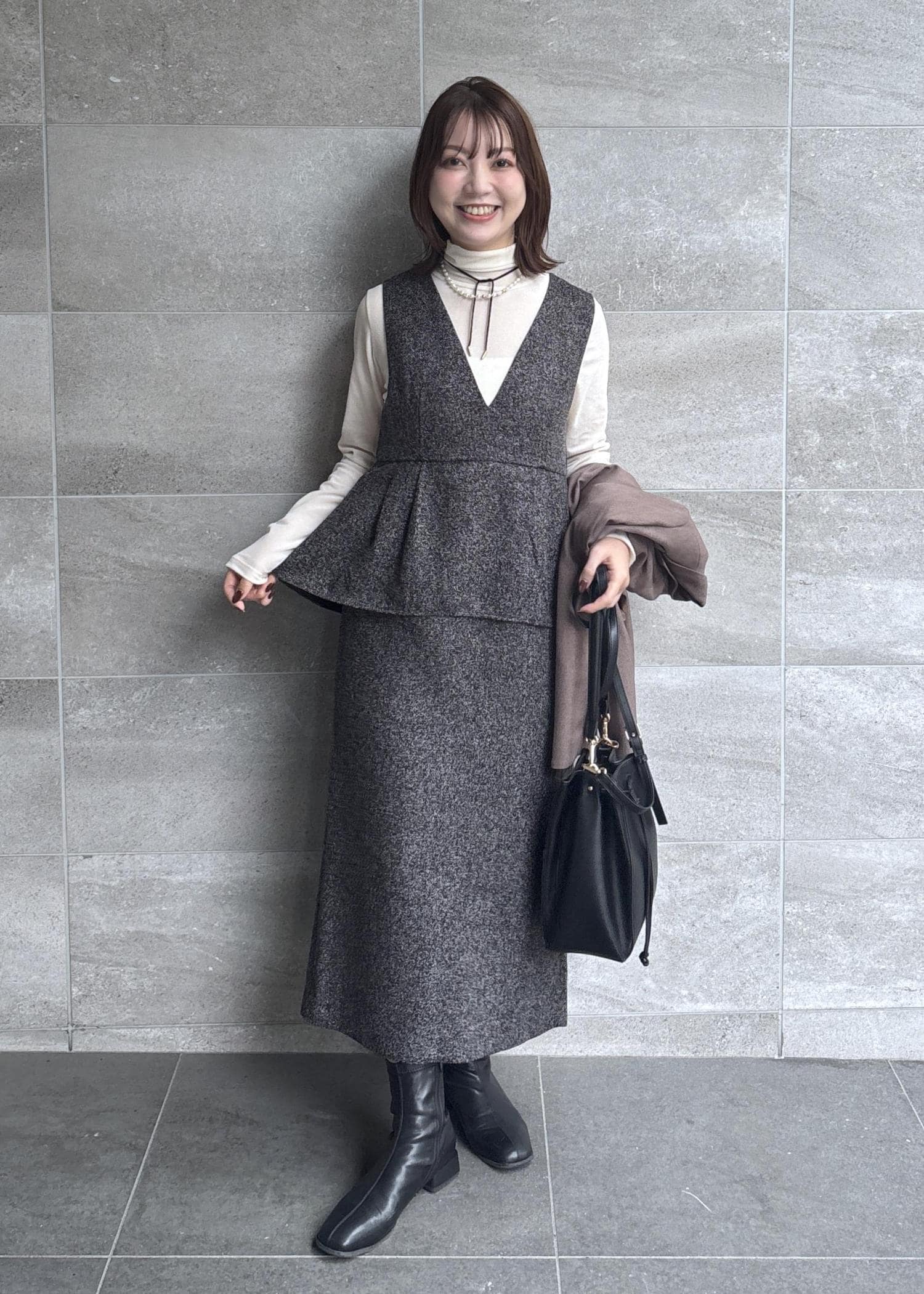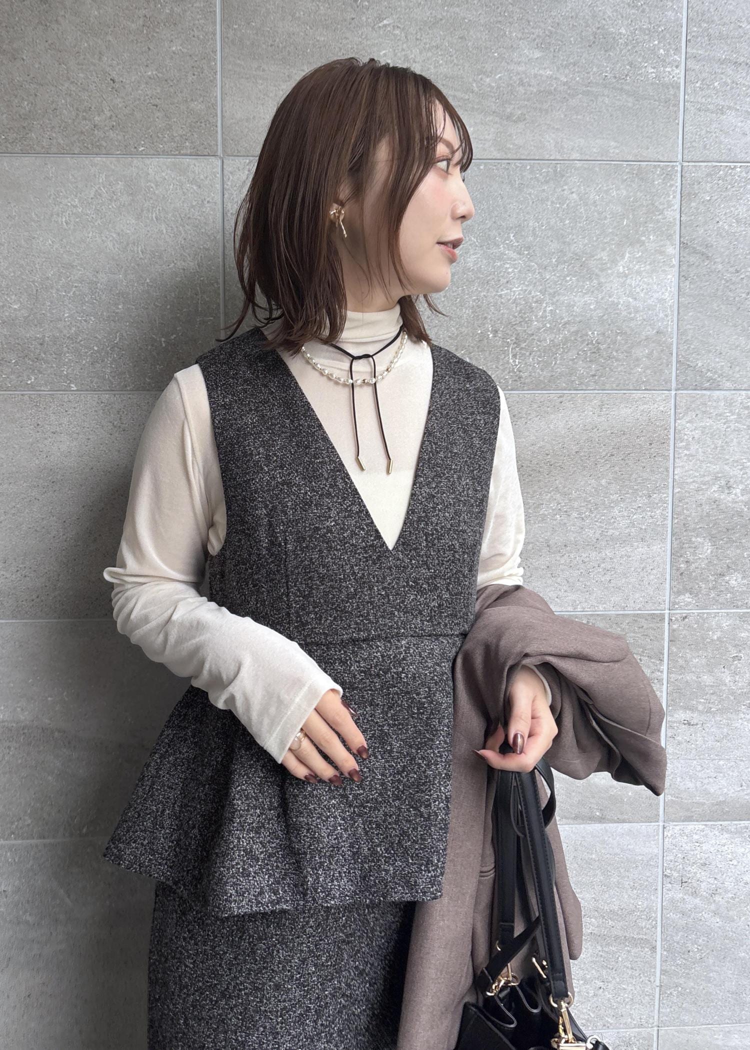 ROPÉ PICNICレイヤード風ペプラムジャンパースカートチャコール / M¥7,997レビュー程よくゆとりがあるので地厚なニットも着込む余裕があります。