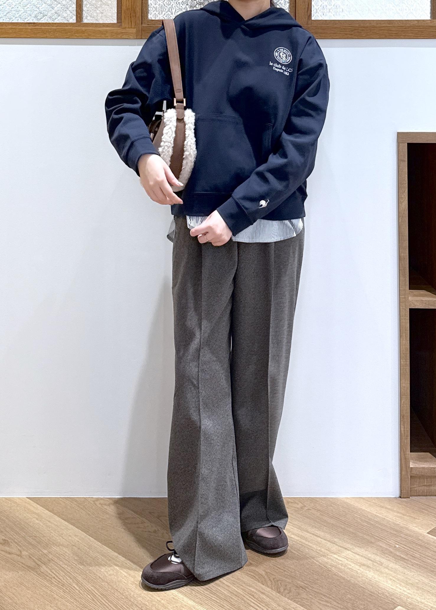 裾が広がりすぎないワイドパンツなのできれいめなコーディネートにも合わせやすいです。