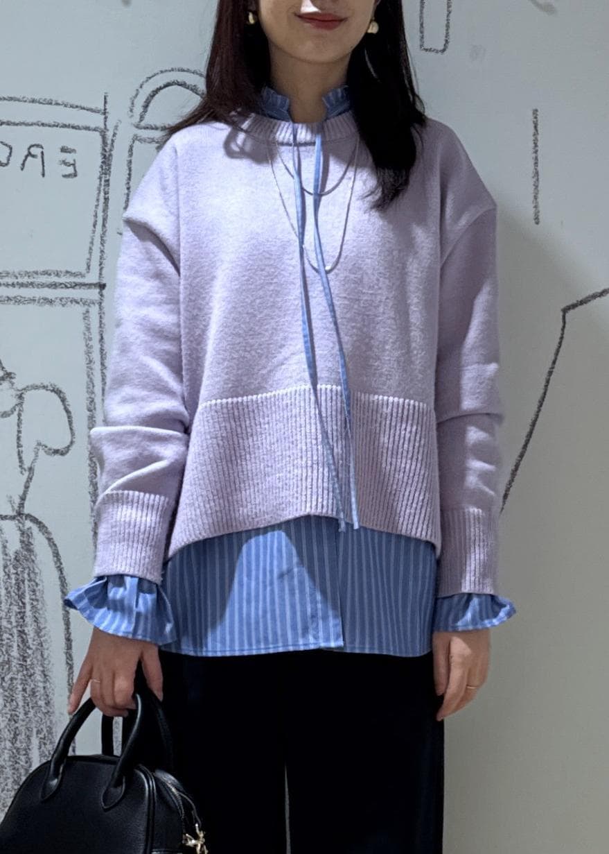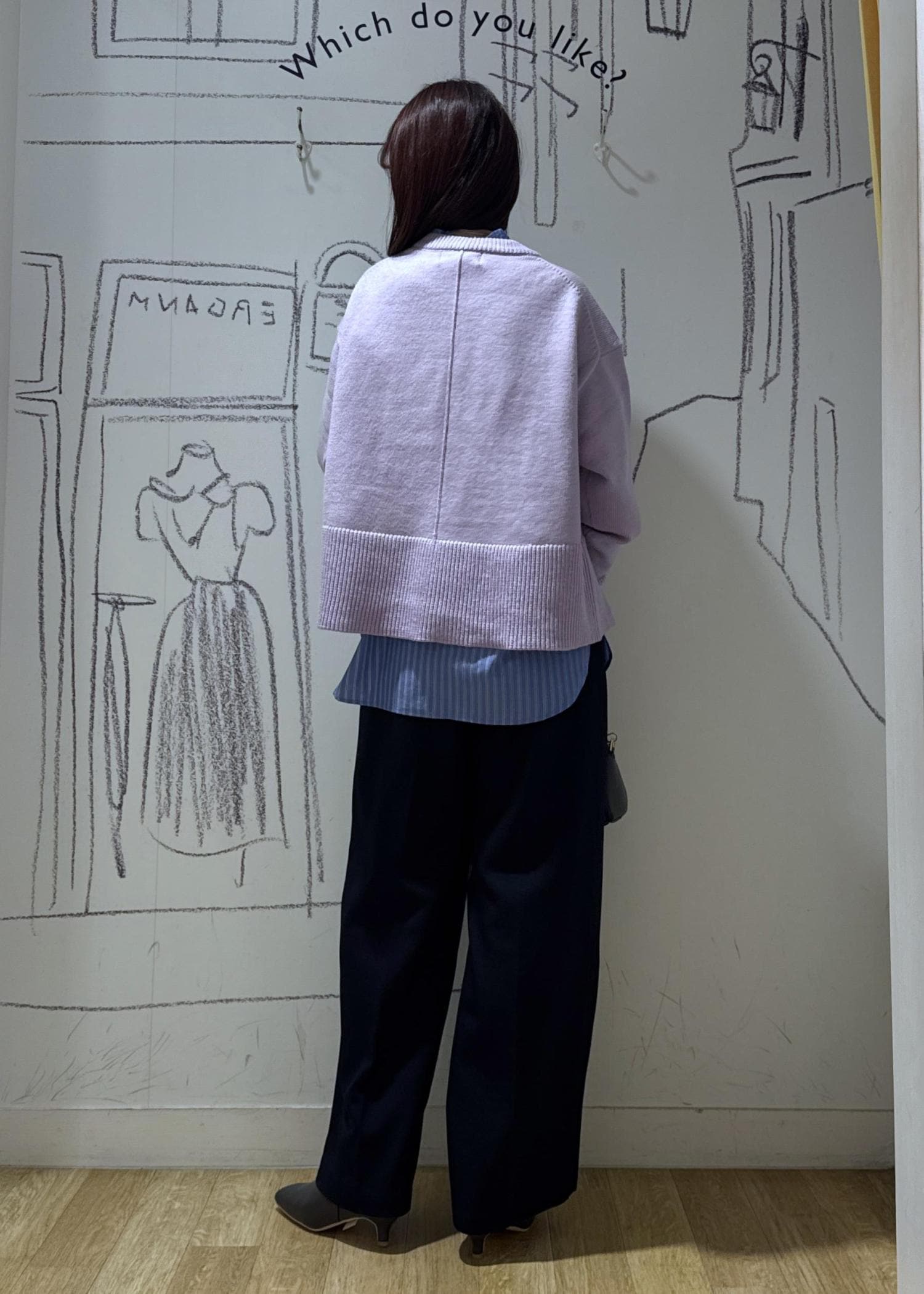 NEW!ROPÉ PICNIC【新色追加】着丈が選べるクルーネックサイドスリットニットプルオーバー/イージーケアラベンダー / M¥4,499レビューMサイズは腰に掛かる着丈。袖丈は手の甲が隠れるくらい。ドロップショルダーなので着心地はリラクシー。サイドスリット入りなので抜け感が出せて簡単にお洒落見えします。