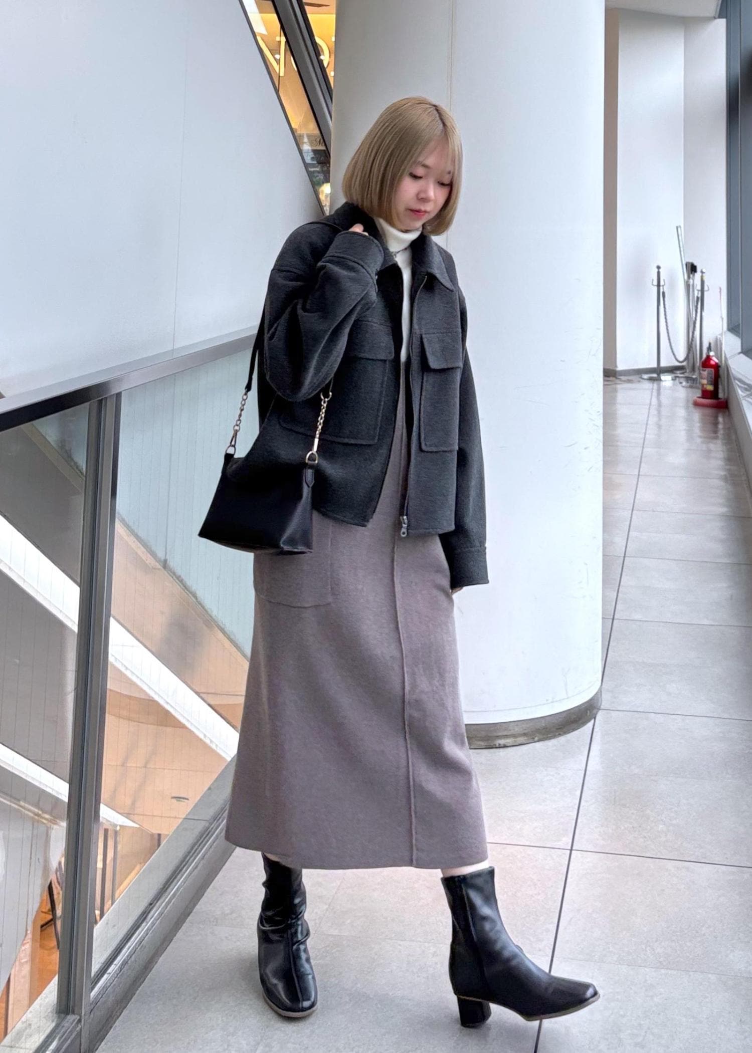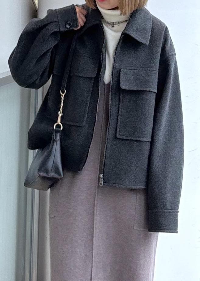 前を閉じても綺麗なシルエットで、ジップコートなので着脱も楽にできます☺︎ -