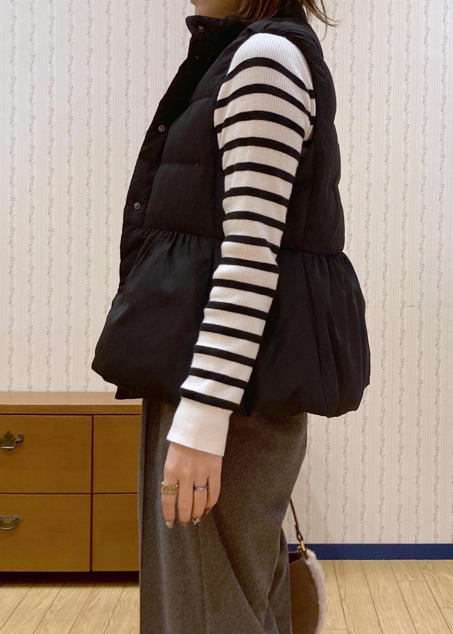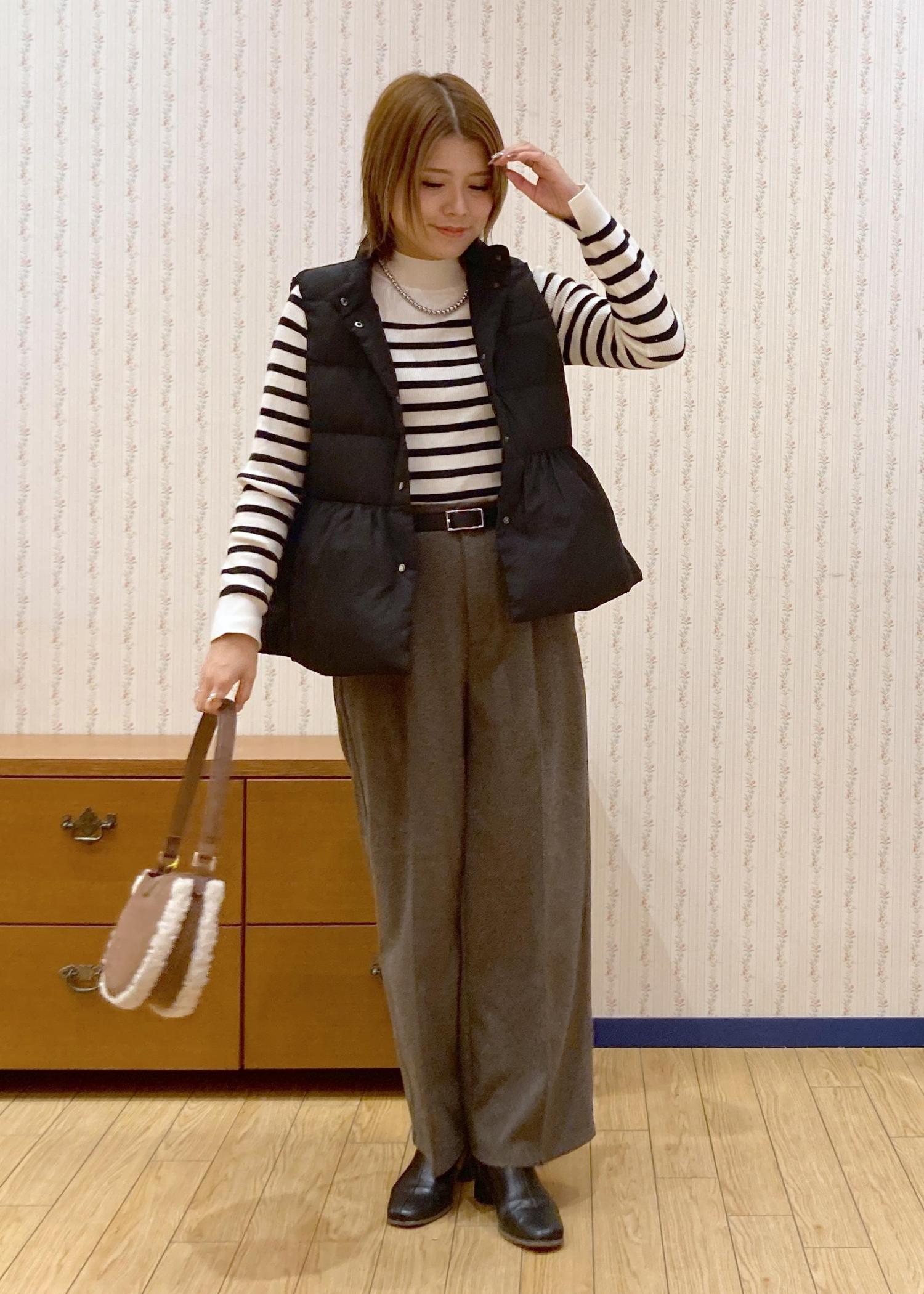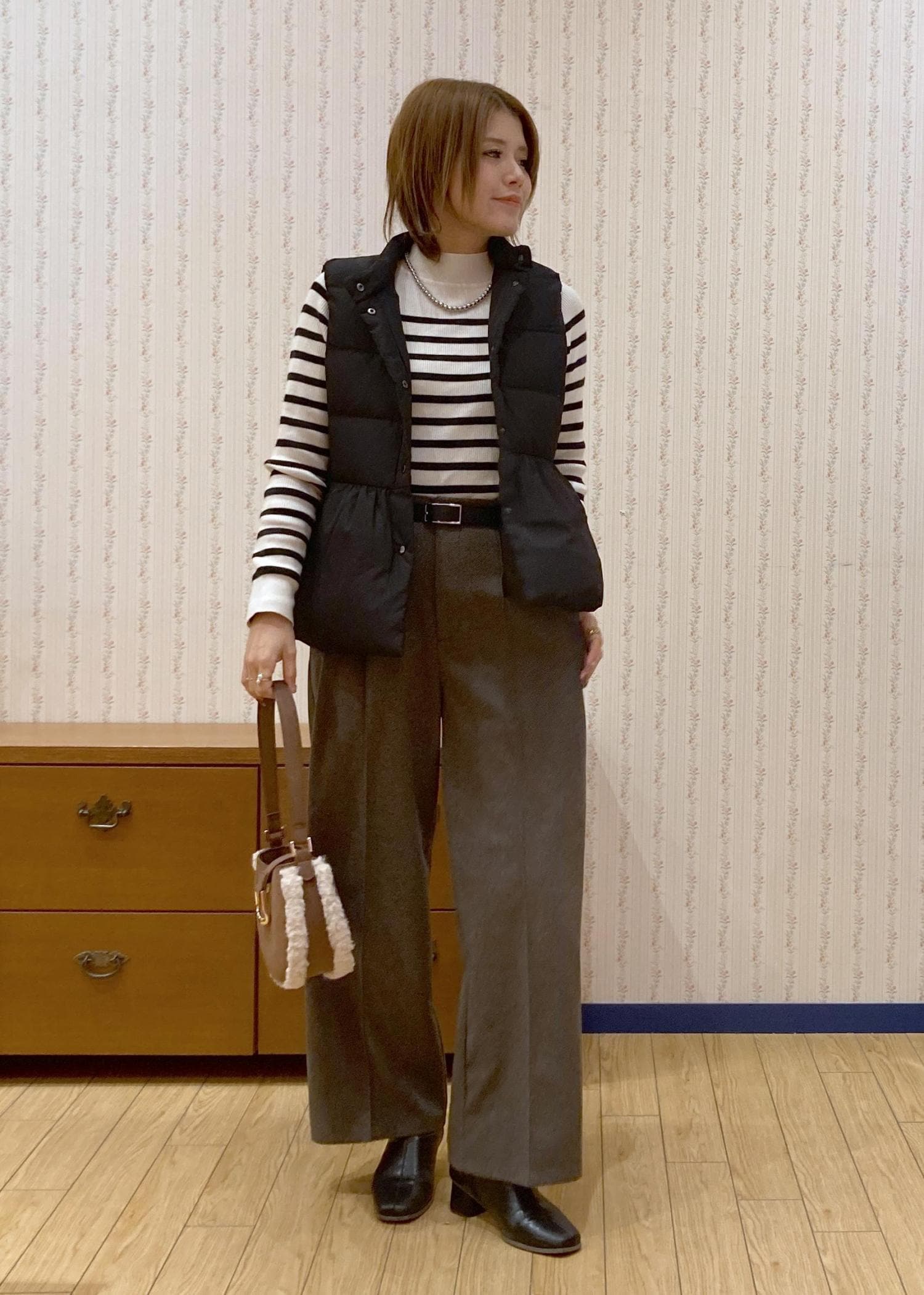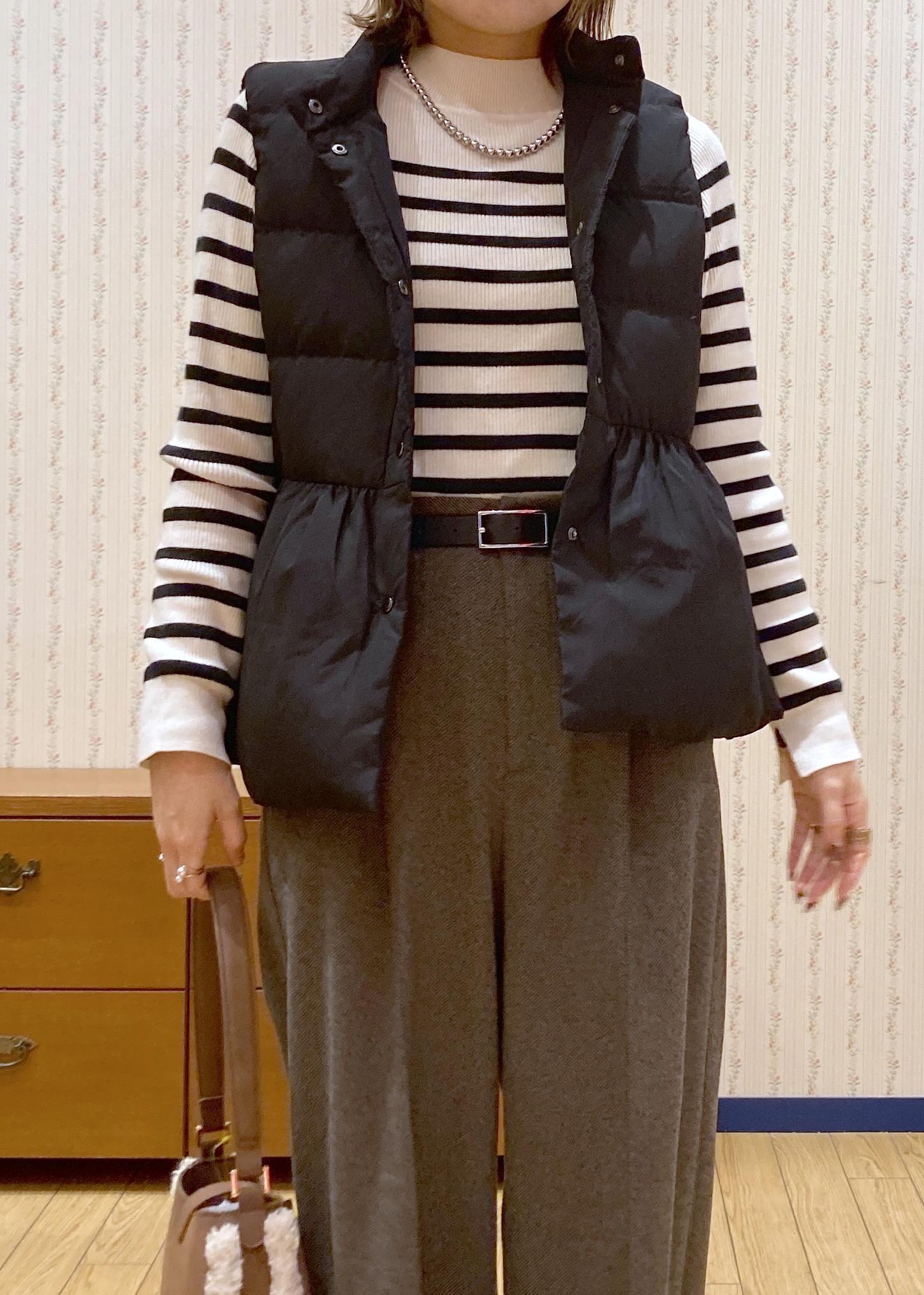 カジュアルなイメージの強いダウンベストをキレイめカジュアルに着こなしました!