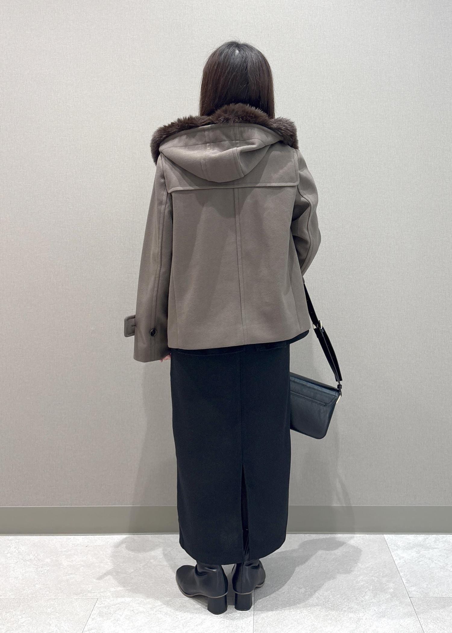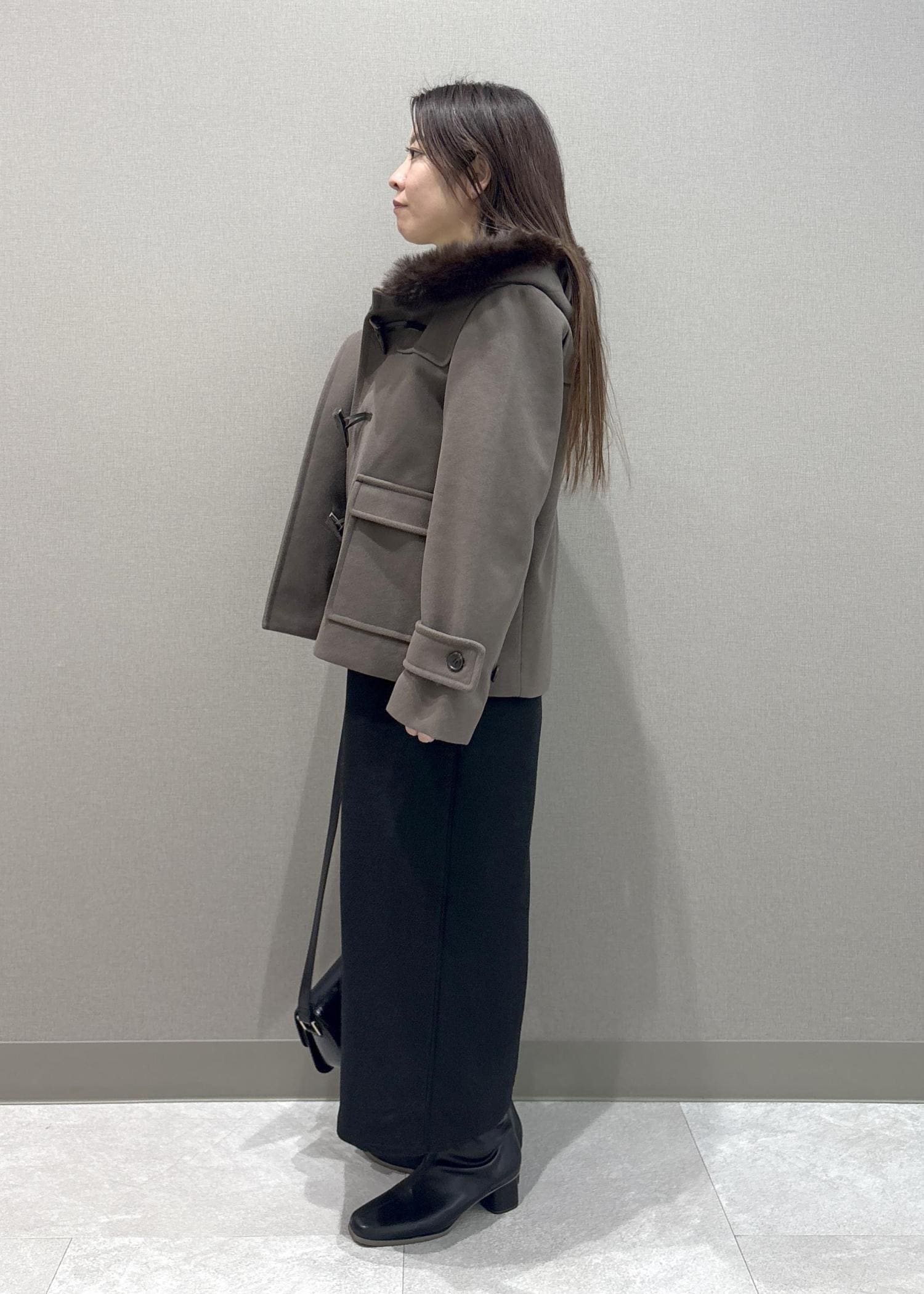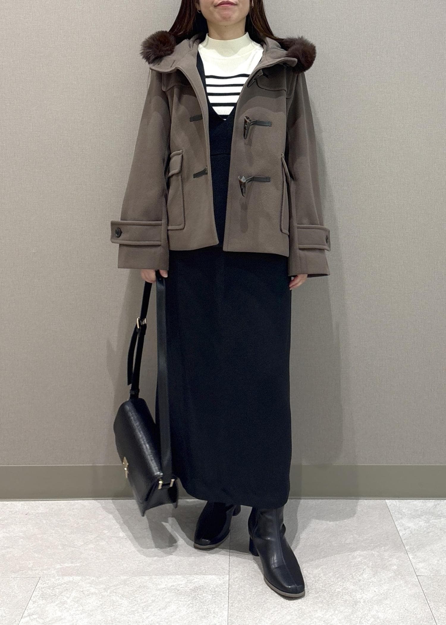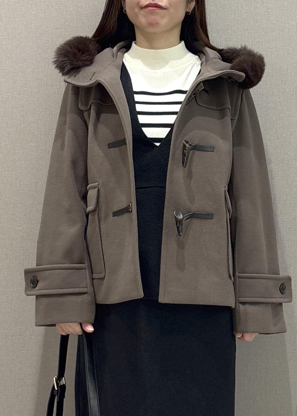 ROPÉ PICNICジャージーメルトンシリーズ ファー付きショートダッフルコート/リンクコーデブラウン系 / M¥13,200レビュー155cmでMサイズ着用、丈はお尻にかかるぐらいです。