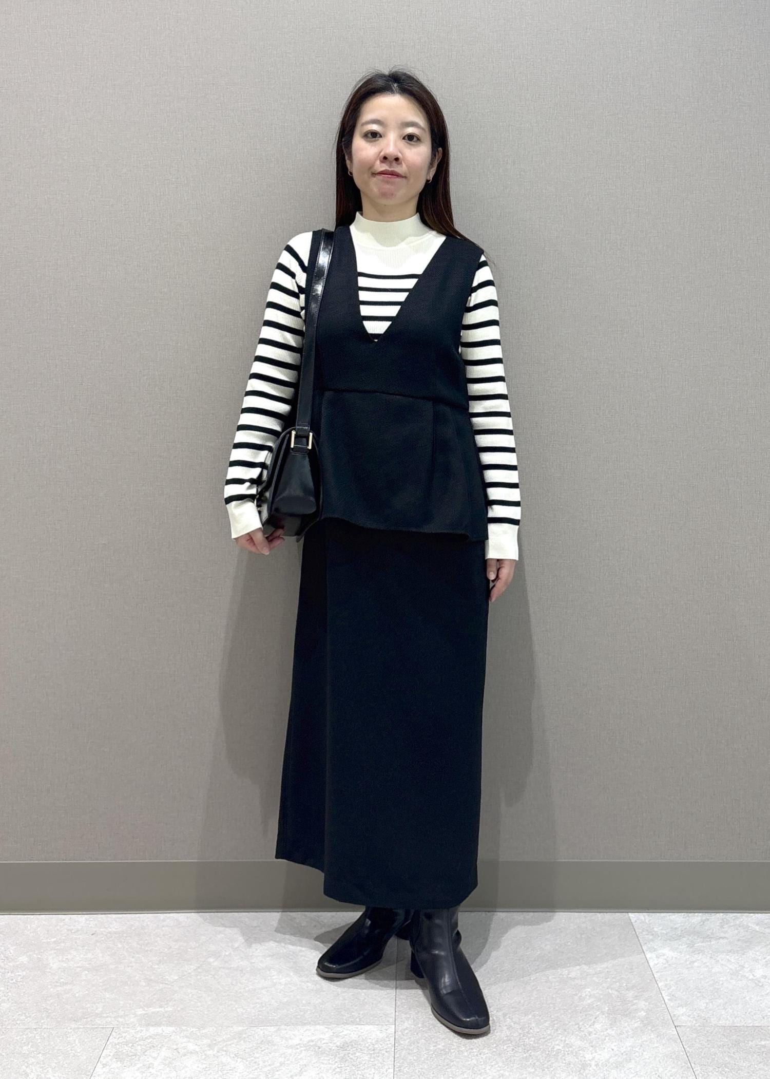 スッキリ着られるので、ジャンパースカートやジャケットのインナーにも着やすいです。 -