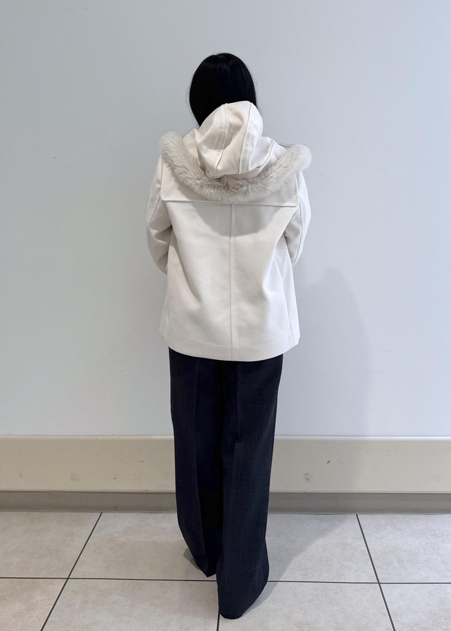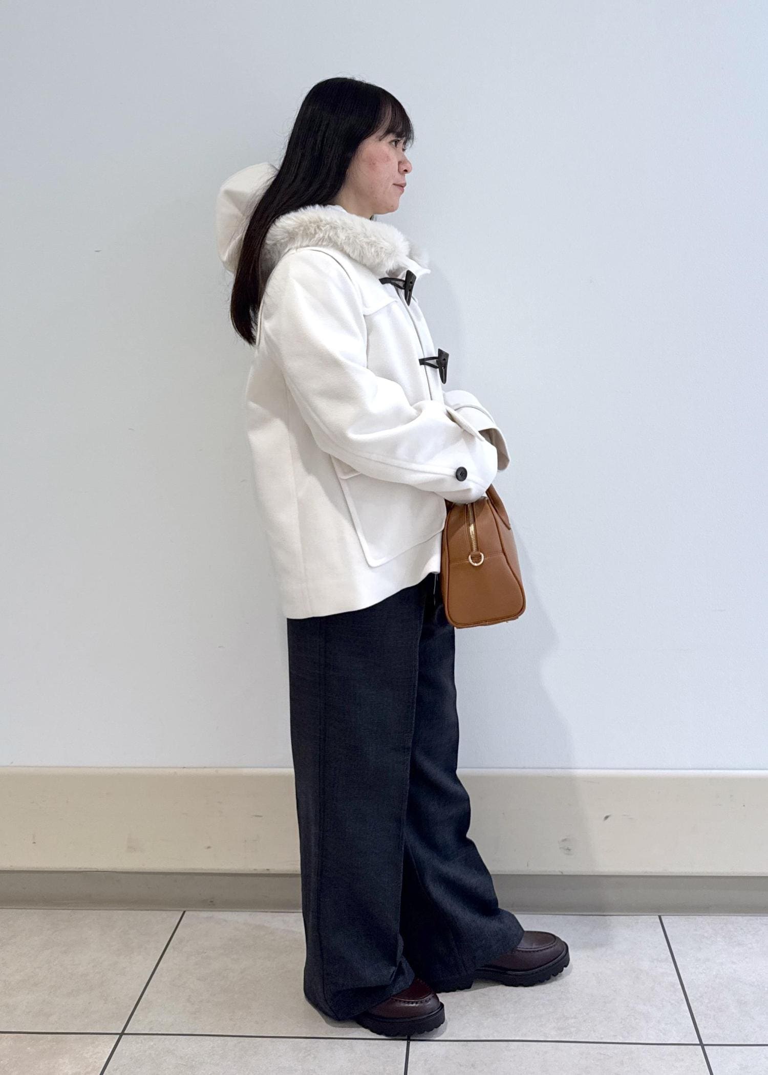 ROPÉ PICNICジャージーメルトンシリーズ ファー付きショートダッフルコート/リンクコーデキナリ / M¥13,200レビュー151cmで丈がちょうど腰あたりにきます!