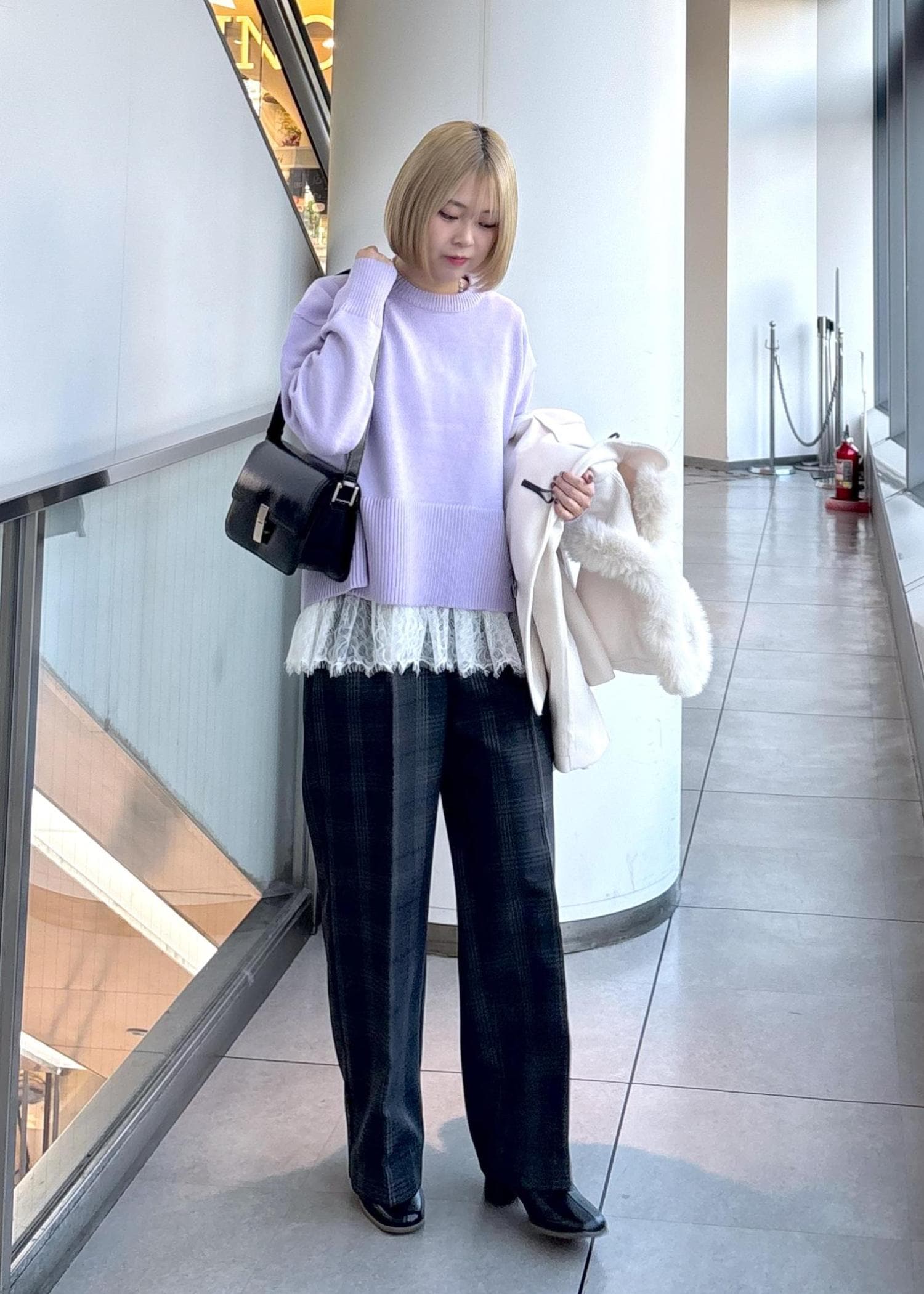 インナーをレイヤードして裾を見せても可愛いです◎ -