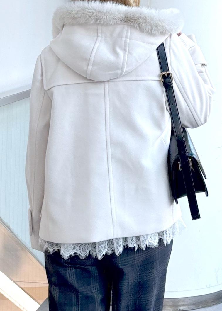 ROPÉ PICNICジャージーメルトンシリーズ ファー付きショートダッフルコート/リンクコーデキナリ / M¥13,200レビューMサイズを着用しています。