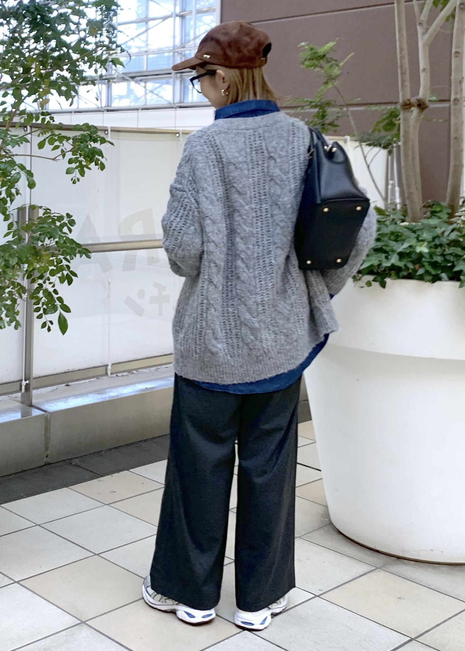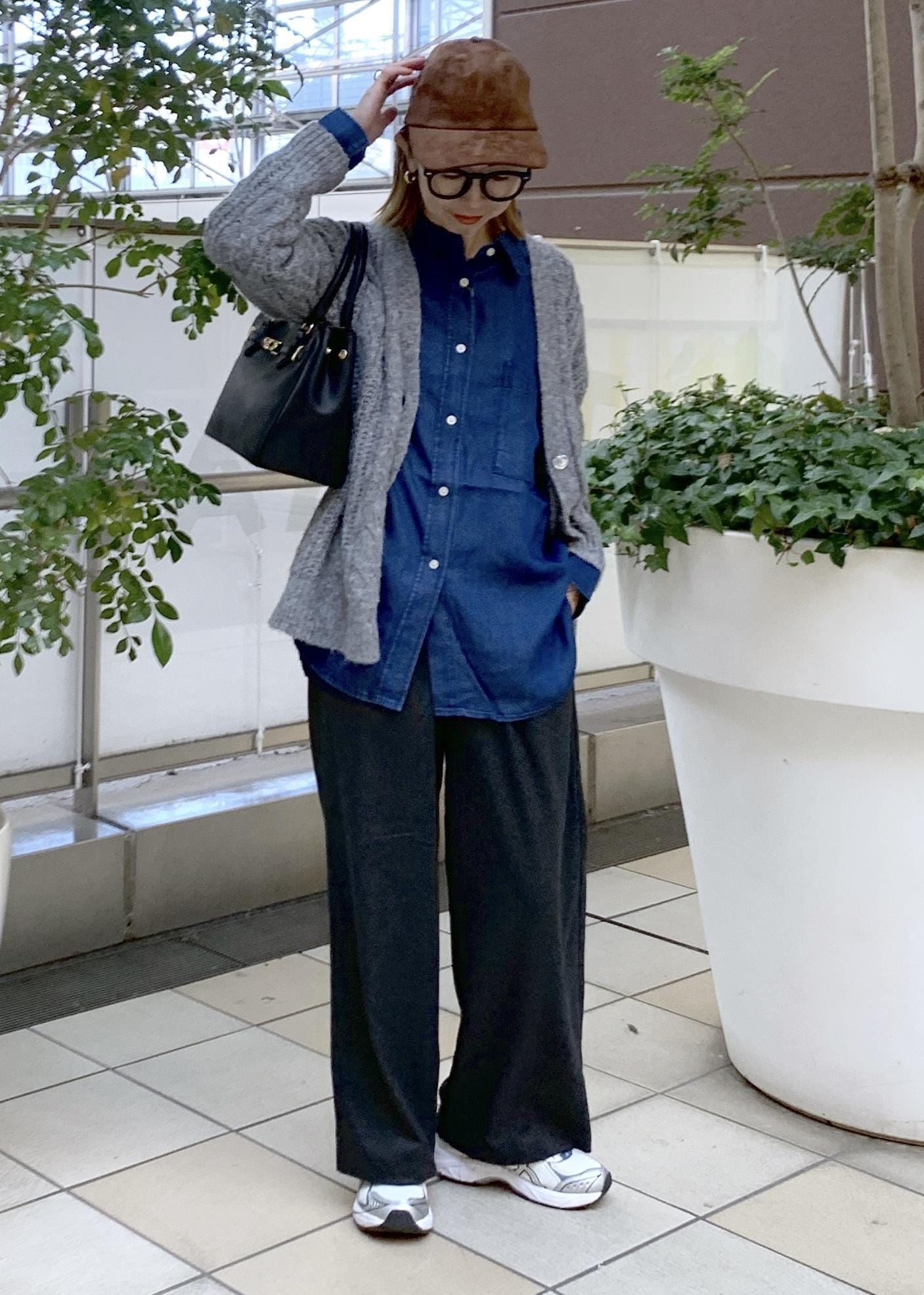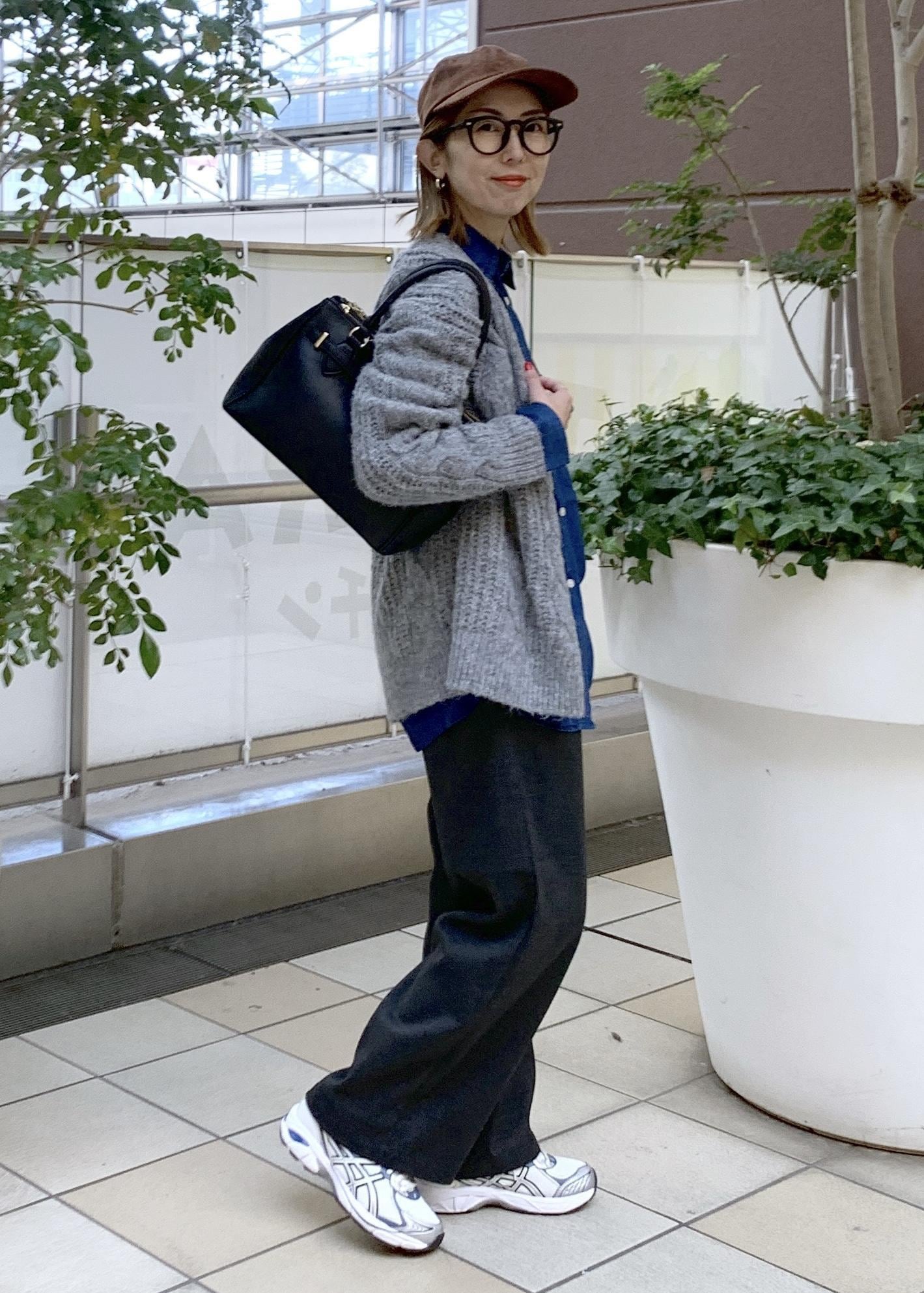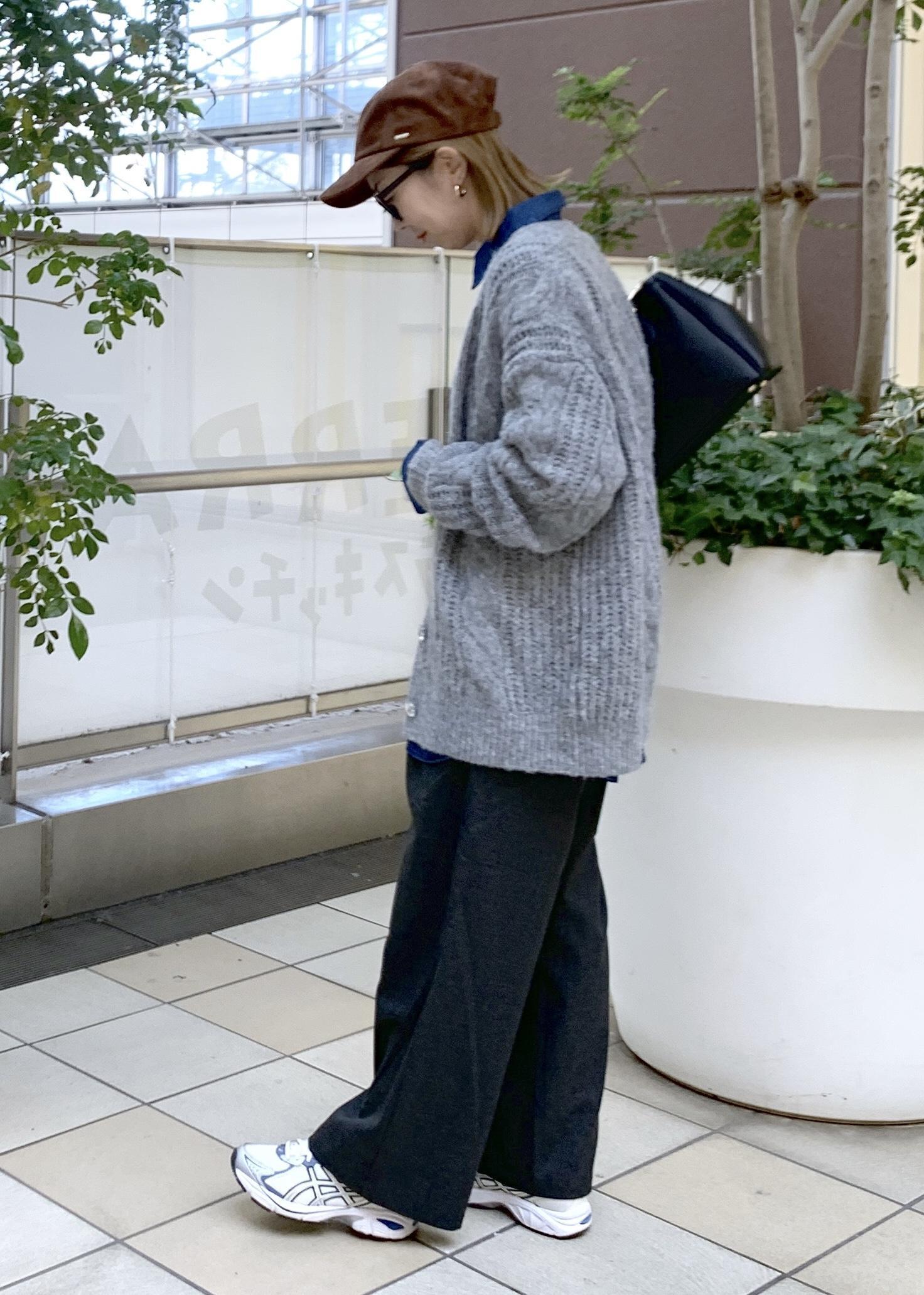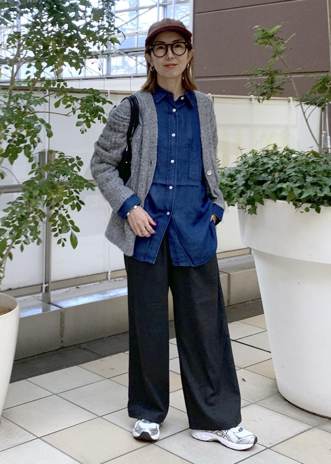 ベーシックカラーでまとめたカジュアルなカーディガンコーデ。
