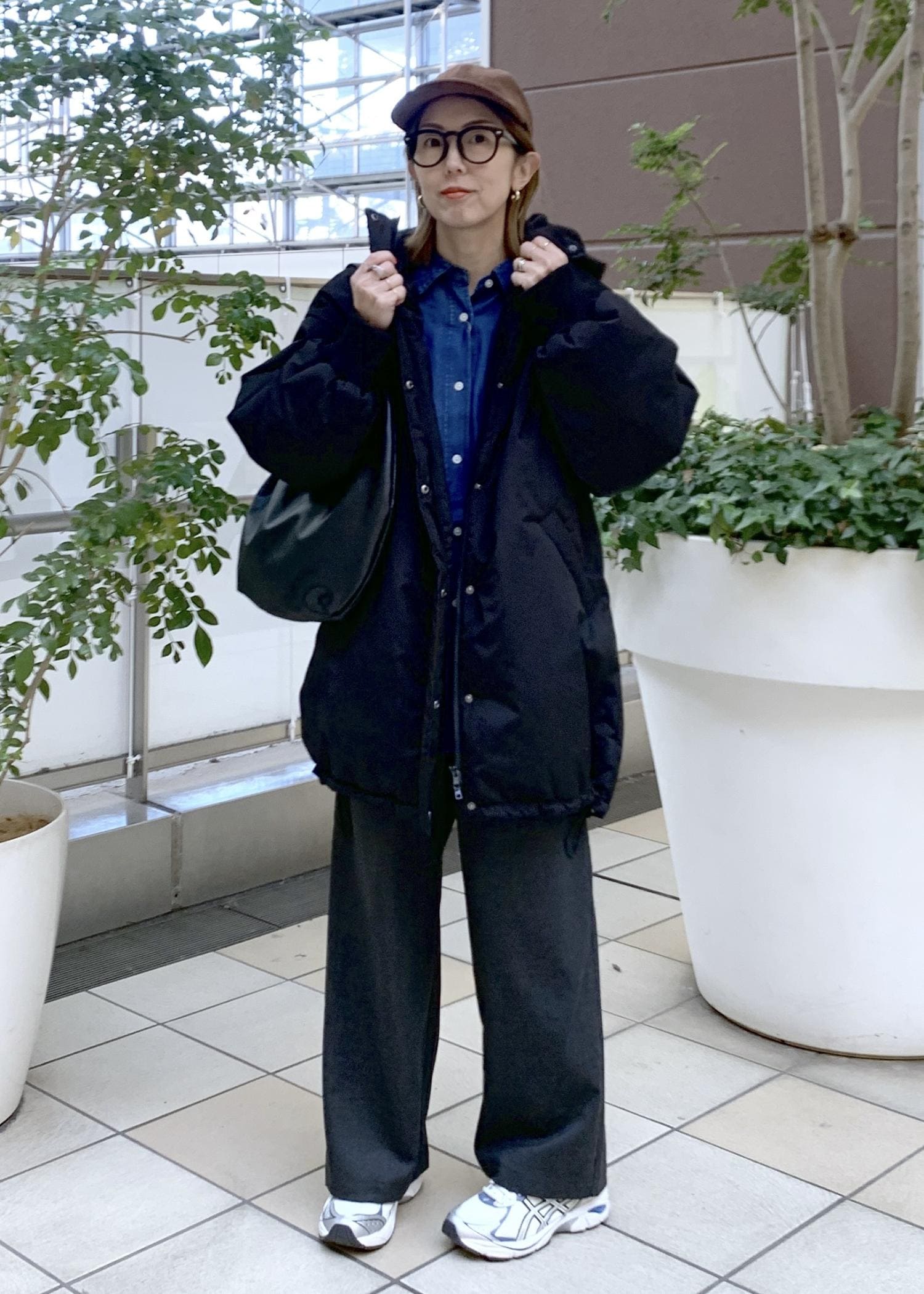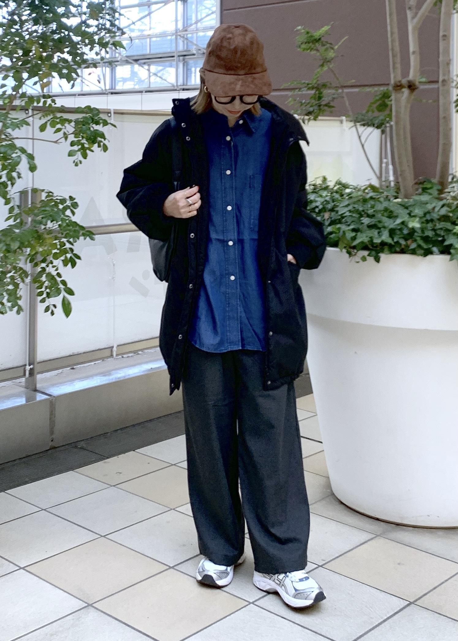 デニムシャツ×ワイドパンツで合わせたメンズライクなカジュアルスタイリング