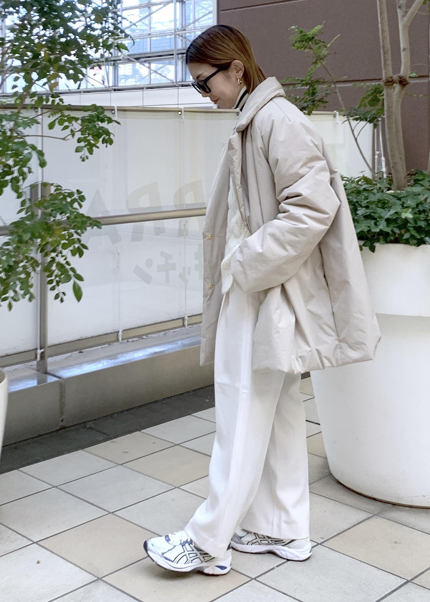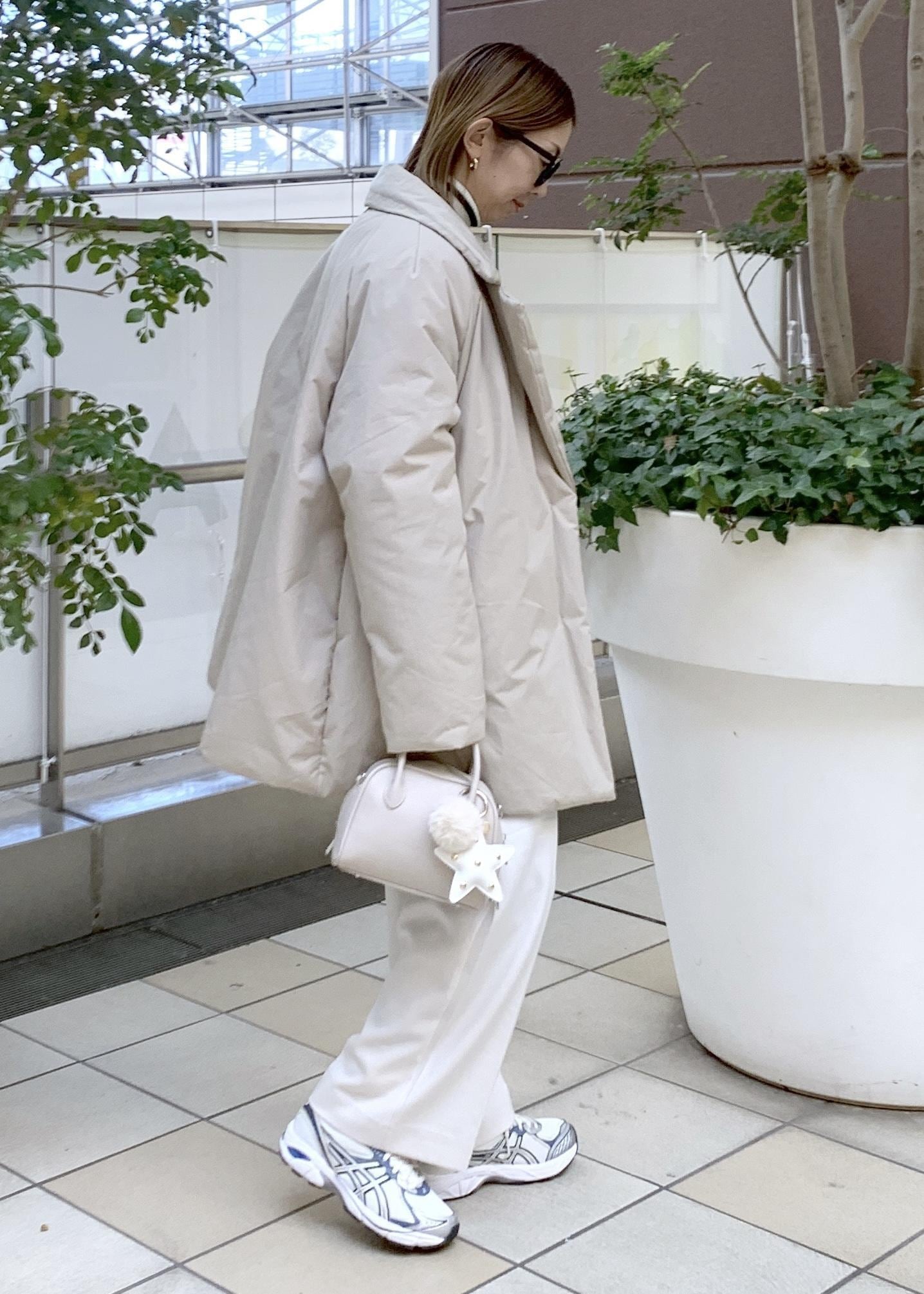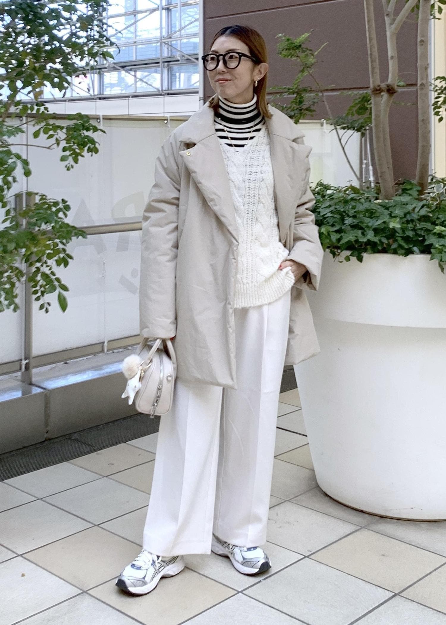 ベージュ×ホワイトで合わせたワントーンスタイリング