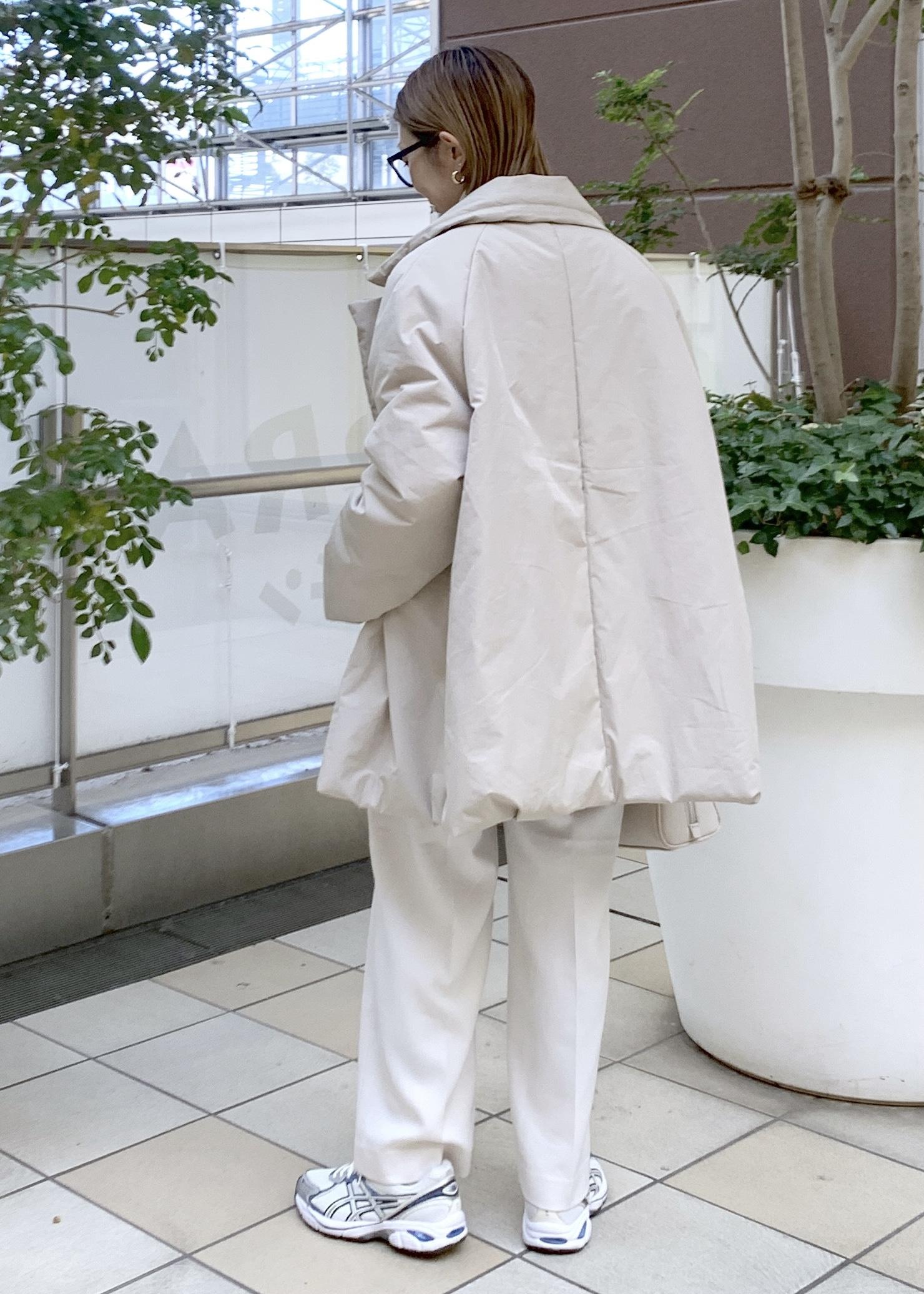 ゆったり感のあるコクーンシルエットの中綿アウター