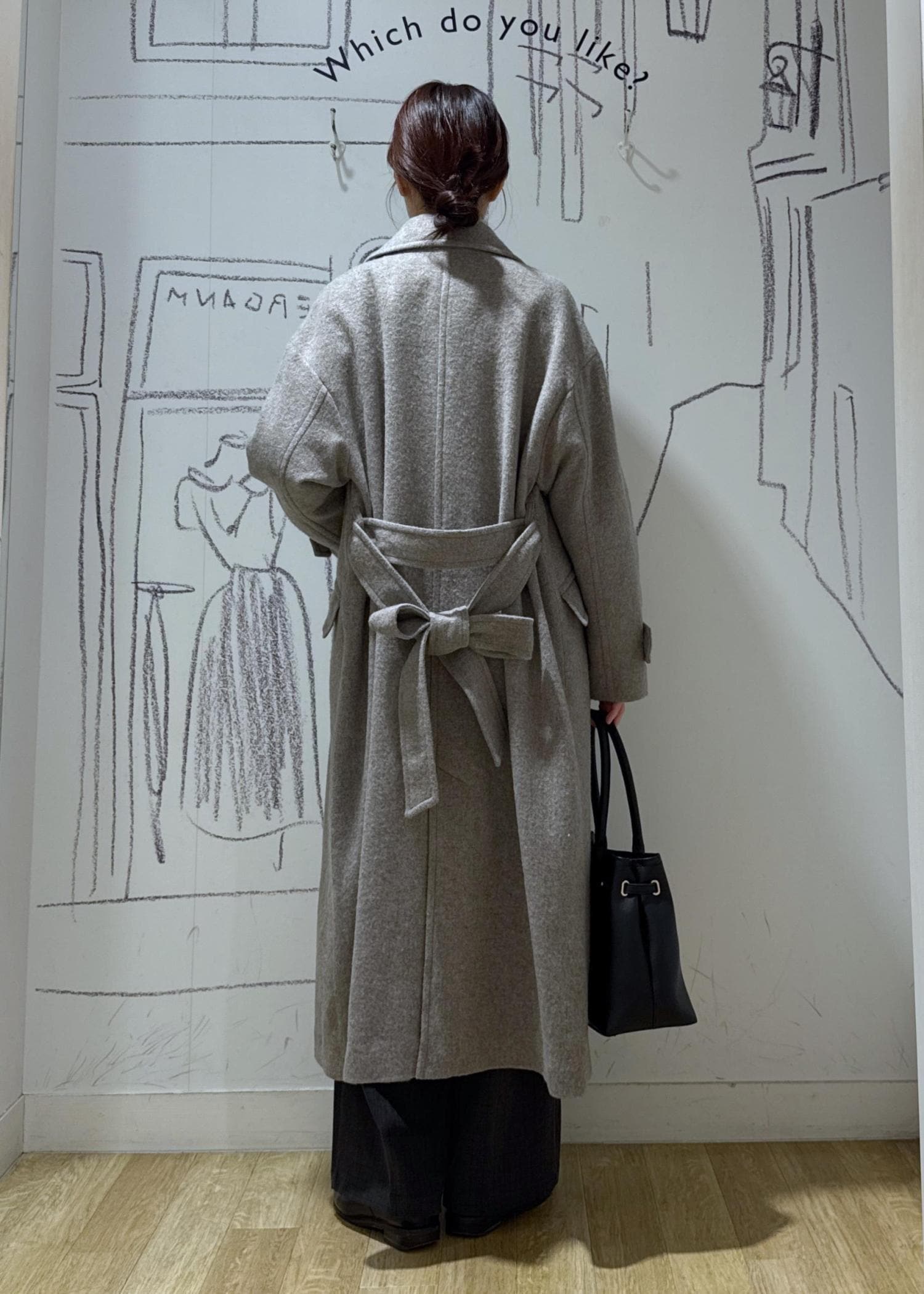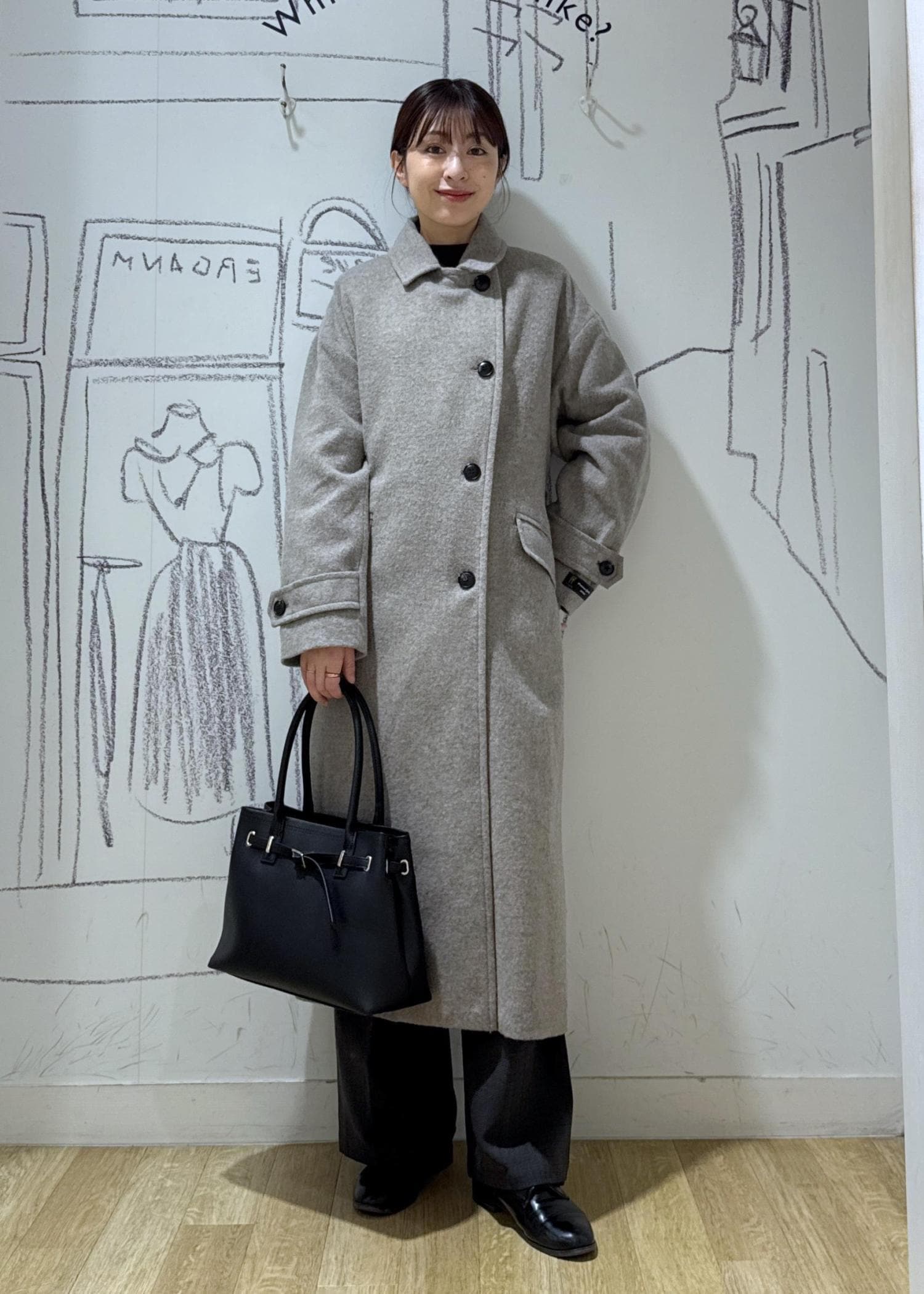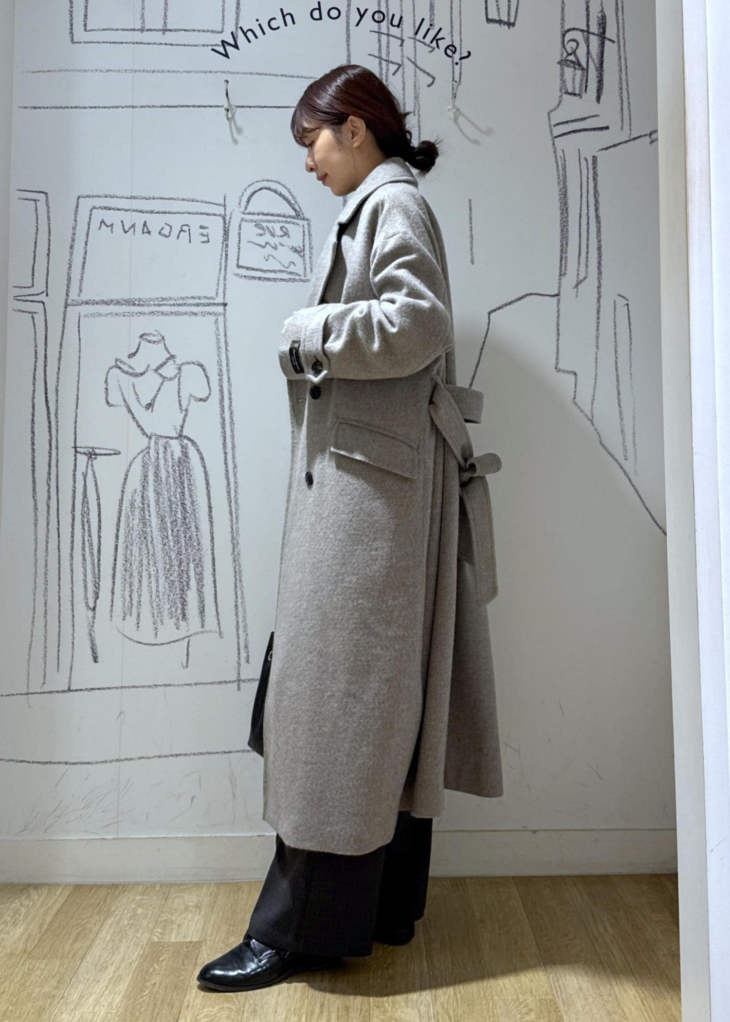 ROPÉ PICNICJAPAN FABRIC スタンドカラーロングコート/一部WEB限定カラーベージュ系 / F¥17,820レビュー162㎝ですねに掛かる着丈。柔らかさのある生地なのでロングコートにしては軽い印象。身幅はゆとりがある為ボリュームのあるニットと合わせても問題なさそうです。ウエストベルト付きなので結べばクラシカルな雰囲気で着用可能。