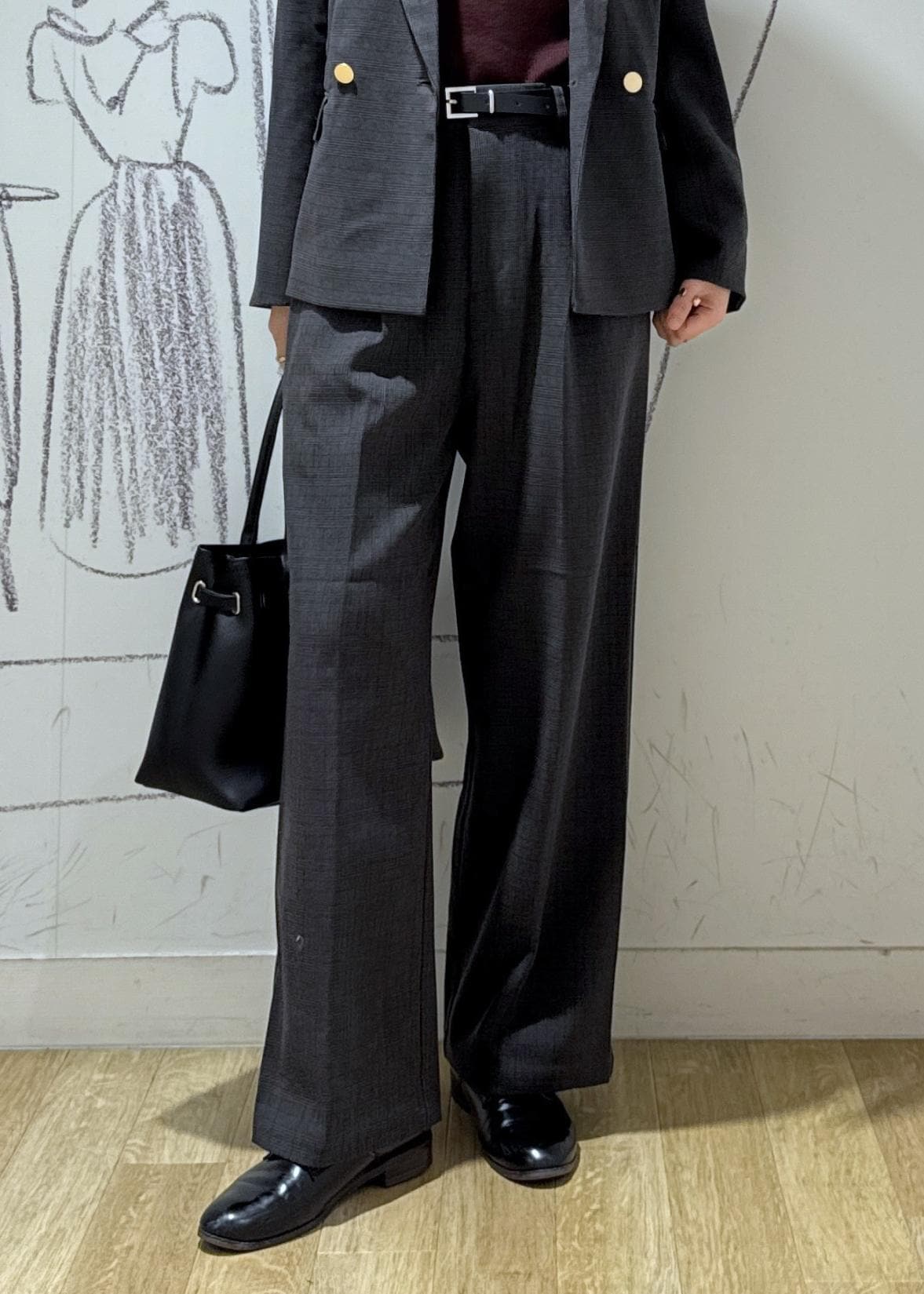 ROPÉ PICNICレディハンサムシリーズ ウールライクウエストタックセミワイドパンツ/セットアップ対応ブラック系 / M¥5,489レビュー前回も人気だったパンツが再登場♪センタープレスやハリのある生地感は美シルエットと高見えを両立してくれます。162㎝でローヒールと合わせると丁度いいバランスで履けました。