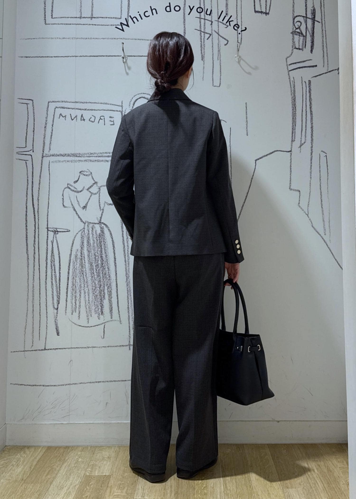 ROPÉ PICNICレディハンサムシリーズ ウールライク金ボタンジャケット(半裏地)/セットアップ・通勤対応ブラック系 / M¥8,098レビュー中肉程度のニットなら難なくスルッと袖通し出来るサイズ感です。重みもそこまでなく肩肘張らずに着られる優しい着心地も人気のひとつ。こちらの着丈は腰がしっかり隠れる長さでバランスが取りやすくボトムスを選ばない丈感になります。