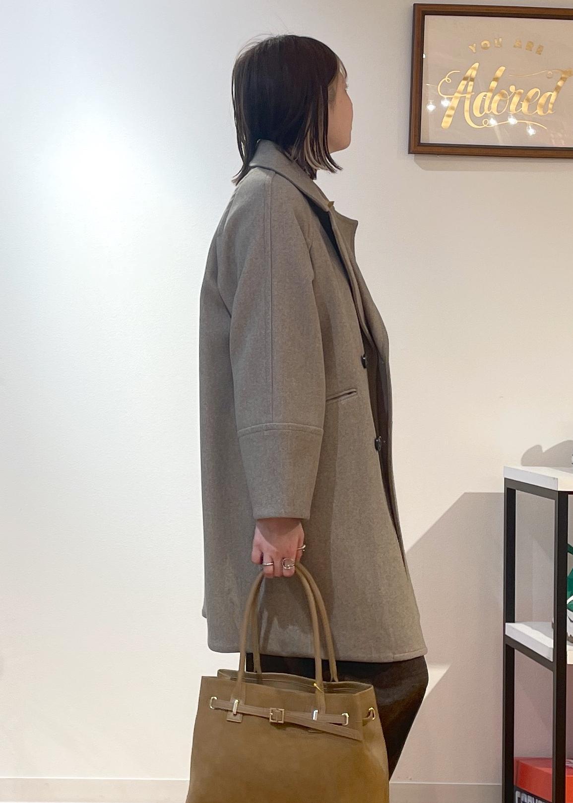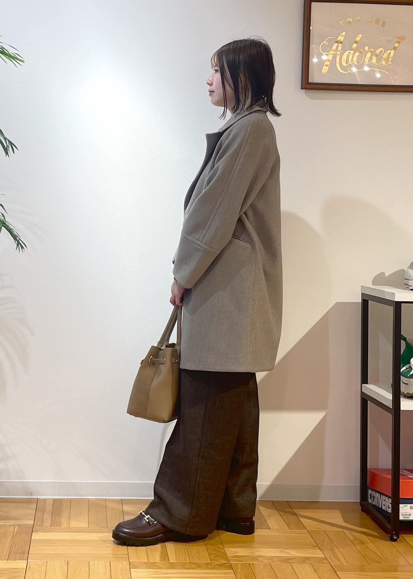羽織っているコートはとてもゆとりがあるので、分厚めのニットでも楽ちんに羽織れます♩