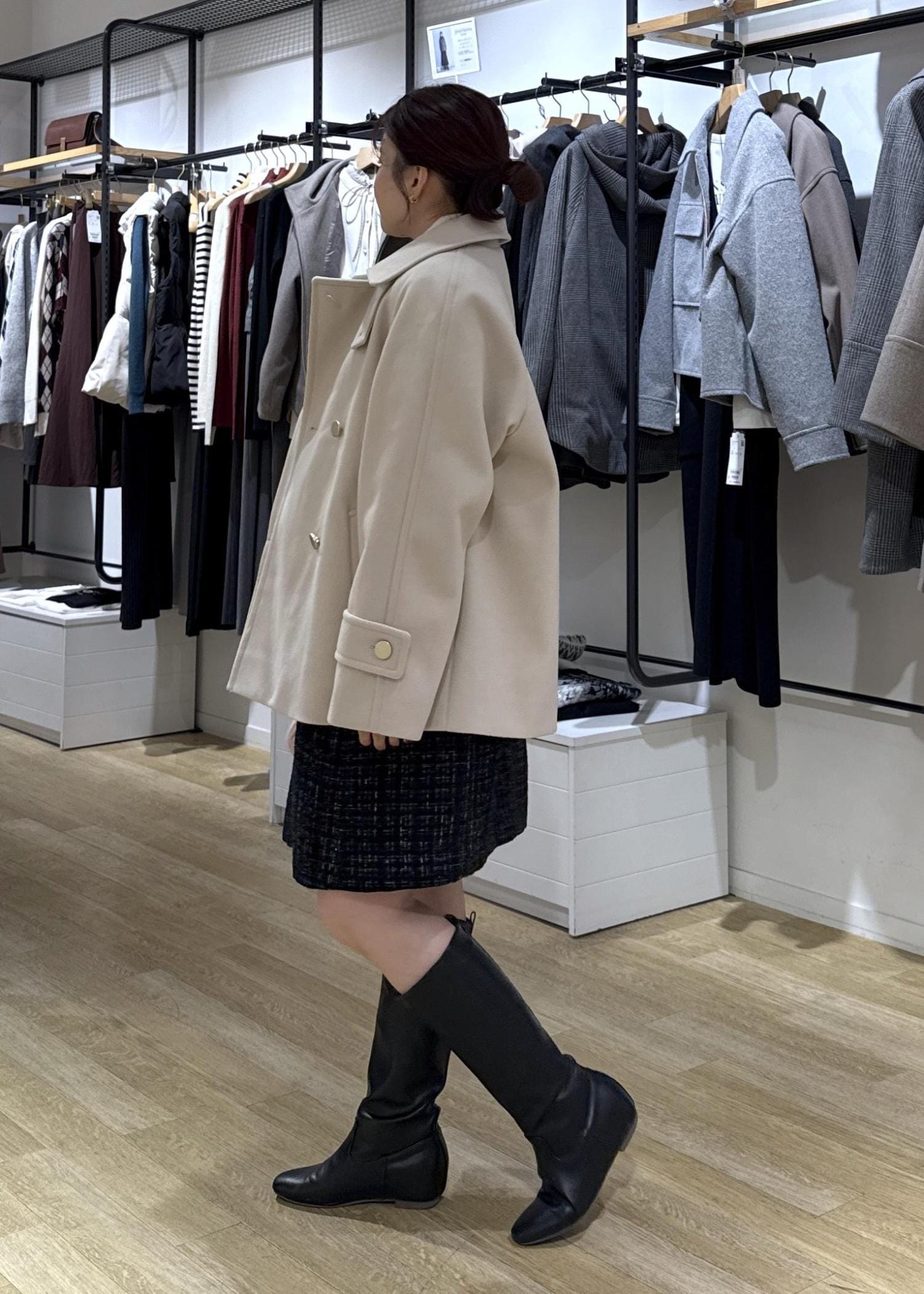 ミドル丈アウター×ミニ丈ワンピースの大人フェミニンコーデ