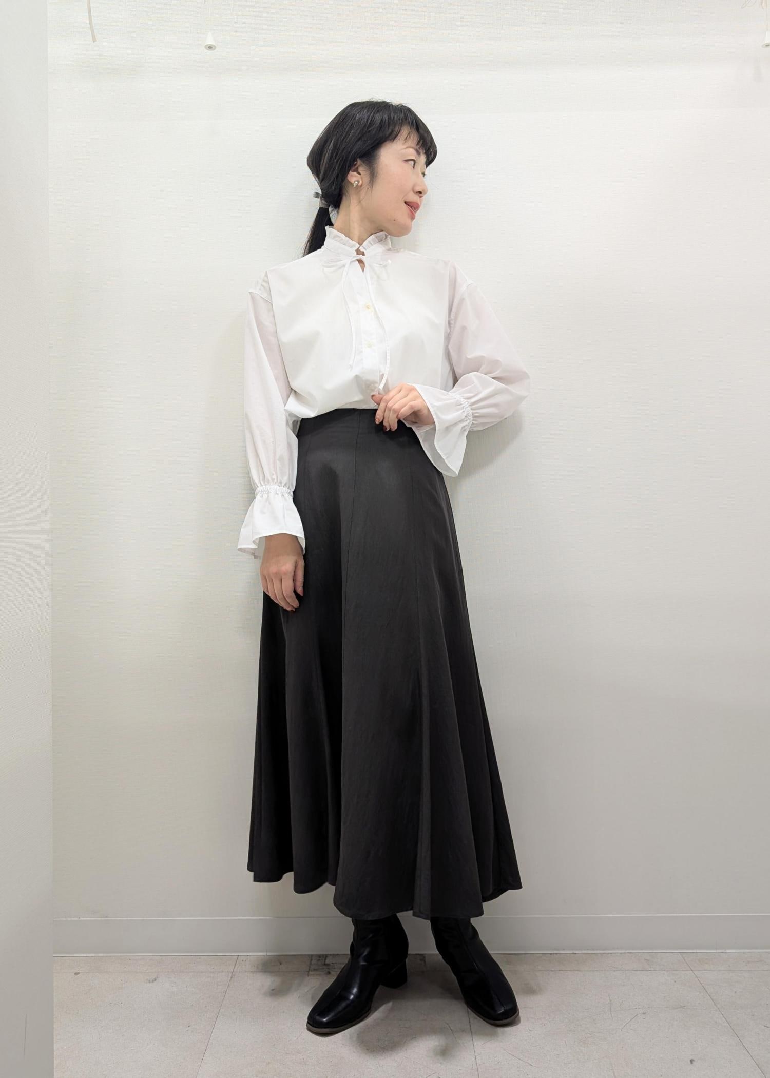 ROPÉ PICNICフィブリルマーメイドフレアスカートチャコール / M¥6,490レビューウエストはスッキリしたサイズ感です。後ろゴムなので窮屈さは感じません。
