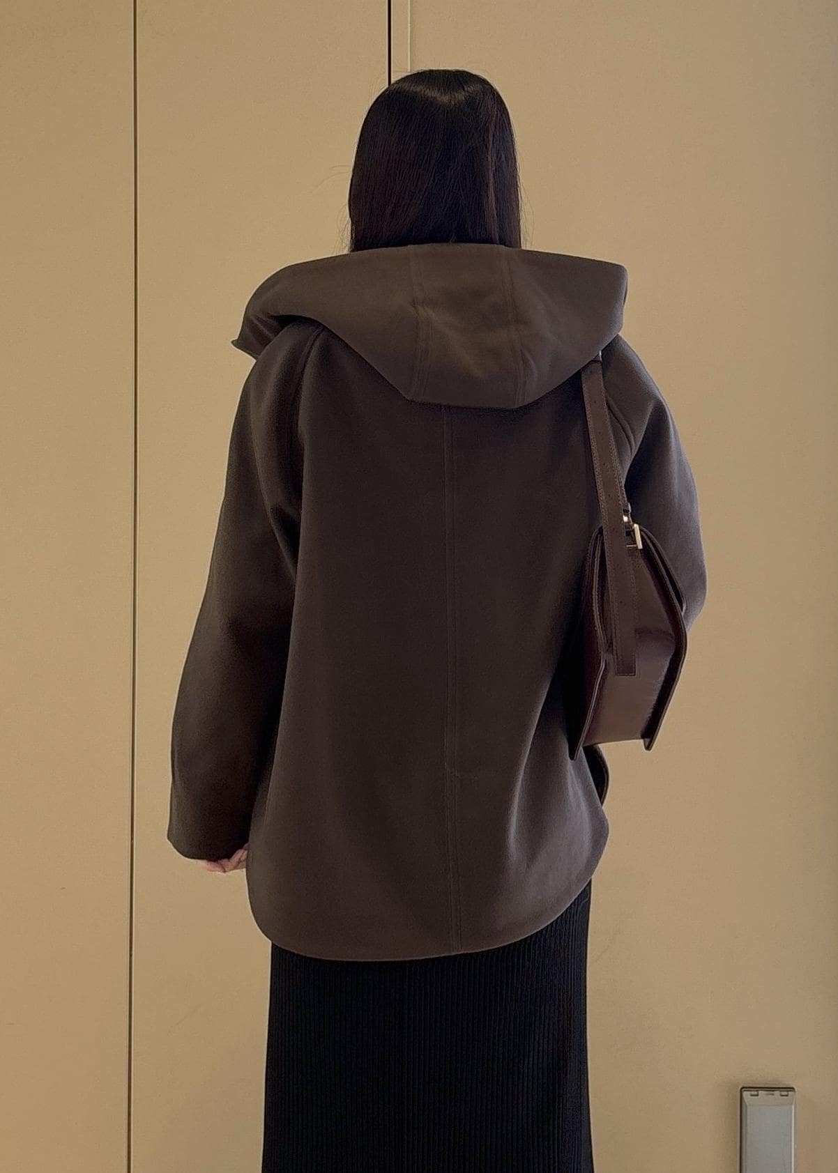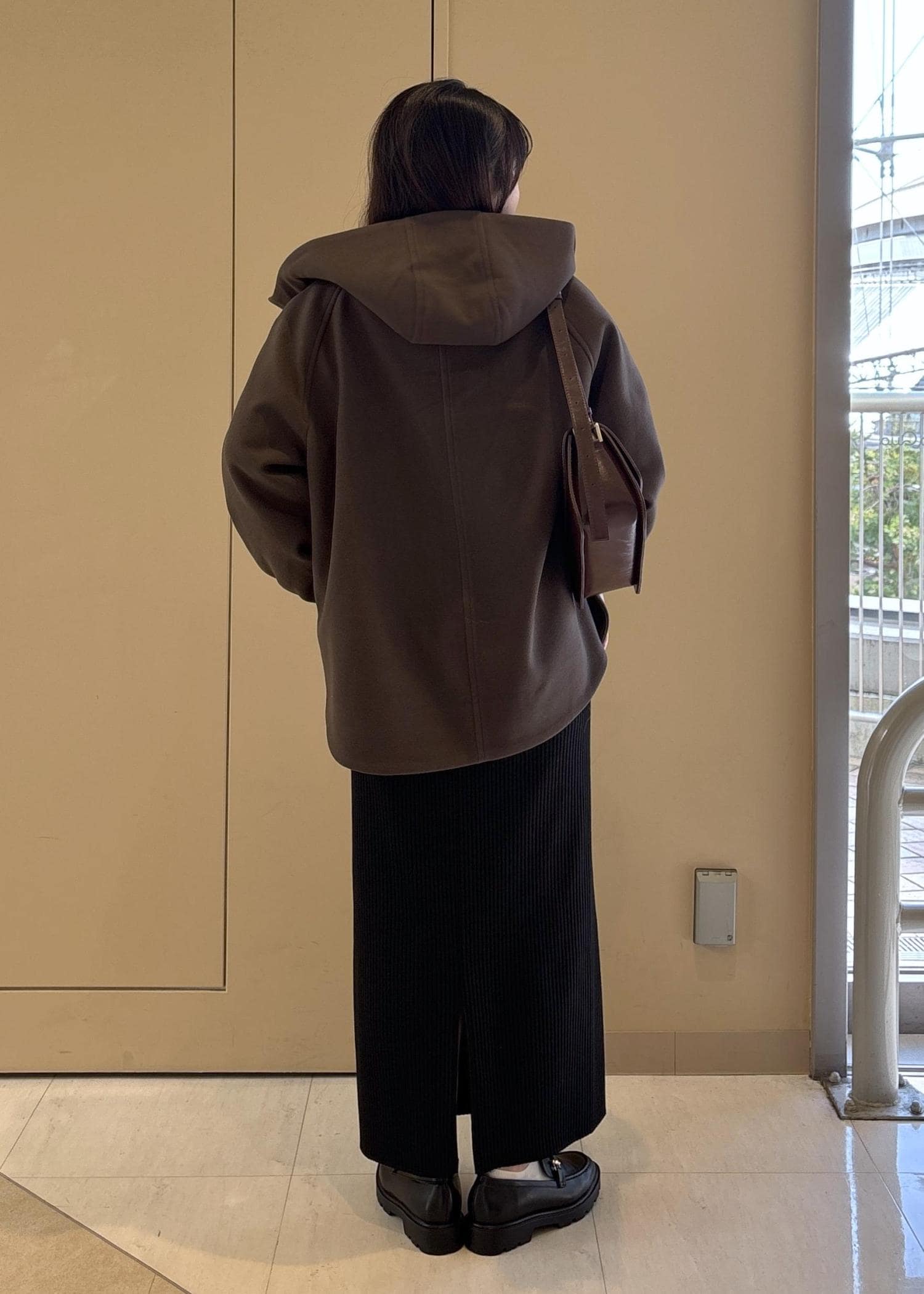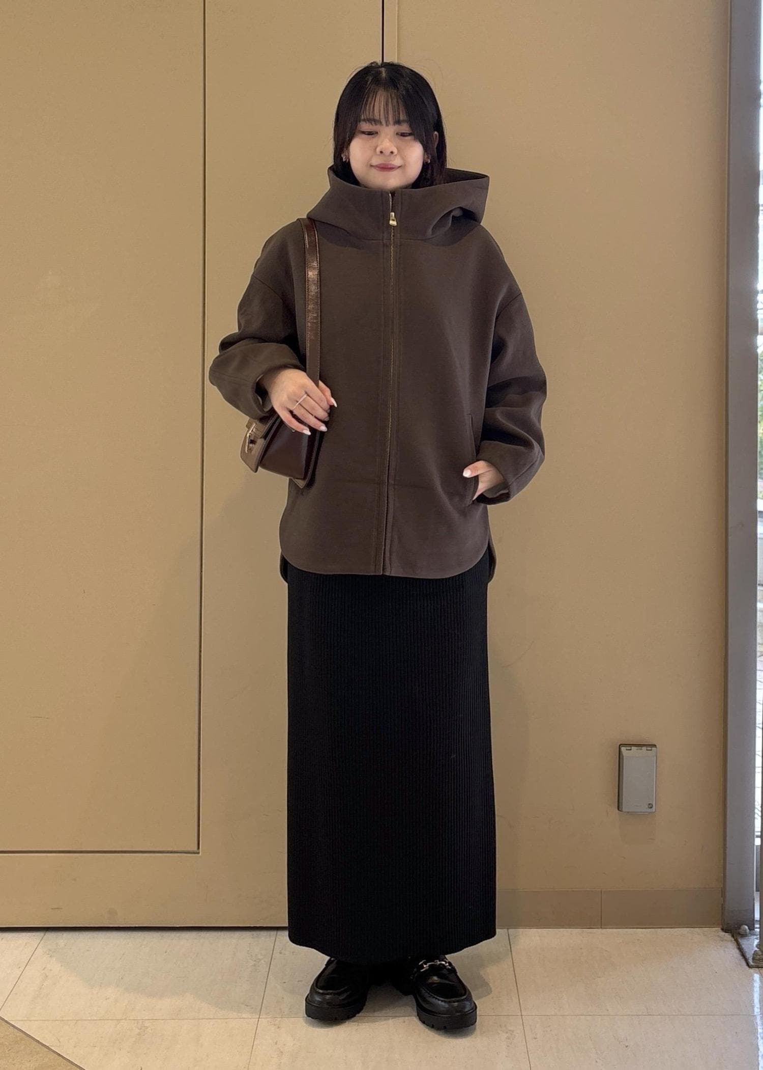 ROPÉ PICNICジャージーメルトンシリーズ ジップアップフーデッドコート/無地・チェック/リンクコーデブラウン / F¥10,989レビュー161cm/Fサイズ着用でフロントは太腿の付け根にかかるくらい、バックはヒップがすっぽり隠れるくらいの着丈でした。身幅や袖の筒幅はしっかりゆとりがあり、厚手のニットも着込めます。サッと羽織れる軽い質感でデイリーづかいにオススメです◎