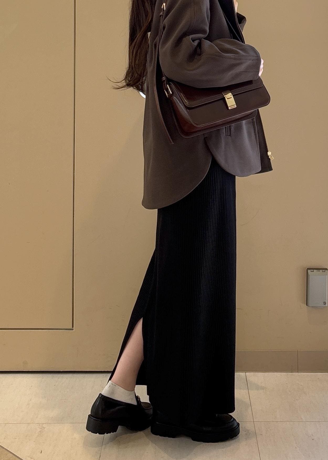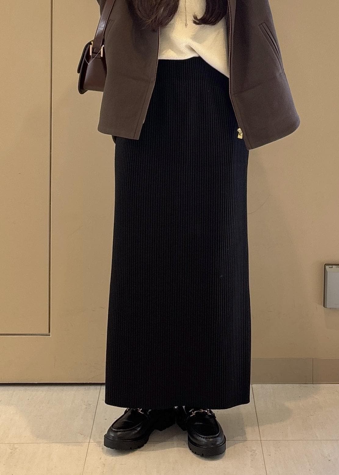 ROPÉ PICNICトタンテレコ Iラインリブニットスカートブラック / 38¥4,499レビュー161cm38サイズで足首が少し見えるくらいの丈感です。ハリのある素材がボディラインを拾いすぎず安心な着用感。見た目以上に伸縮性が高くスリットもしっかり入っているので足捌きもよく楽な履き心地です。