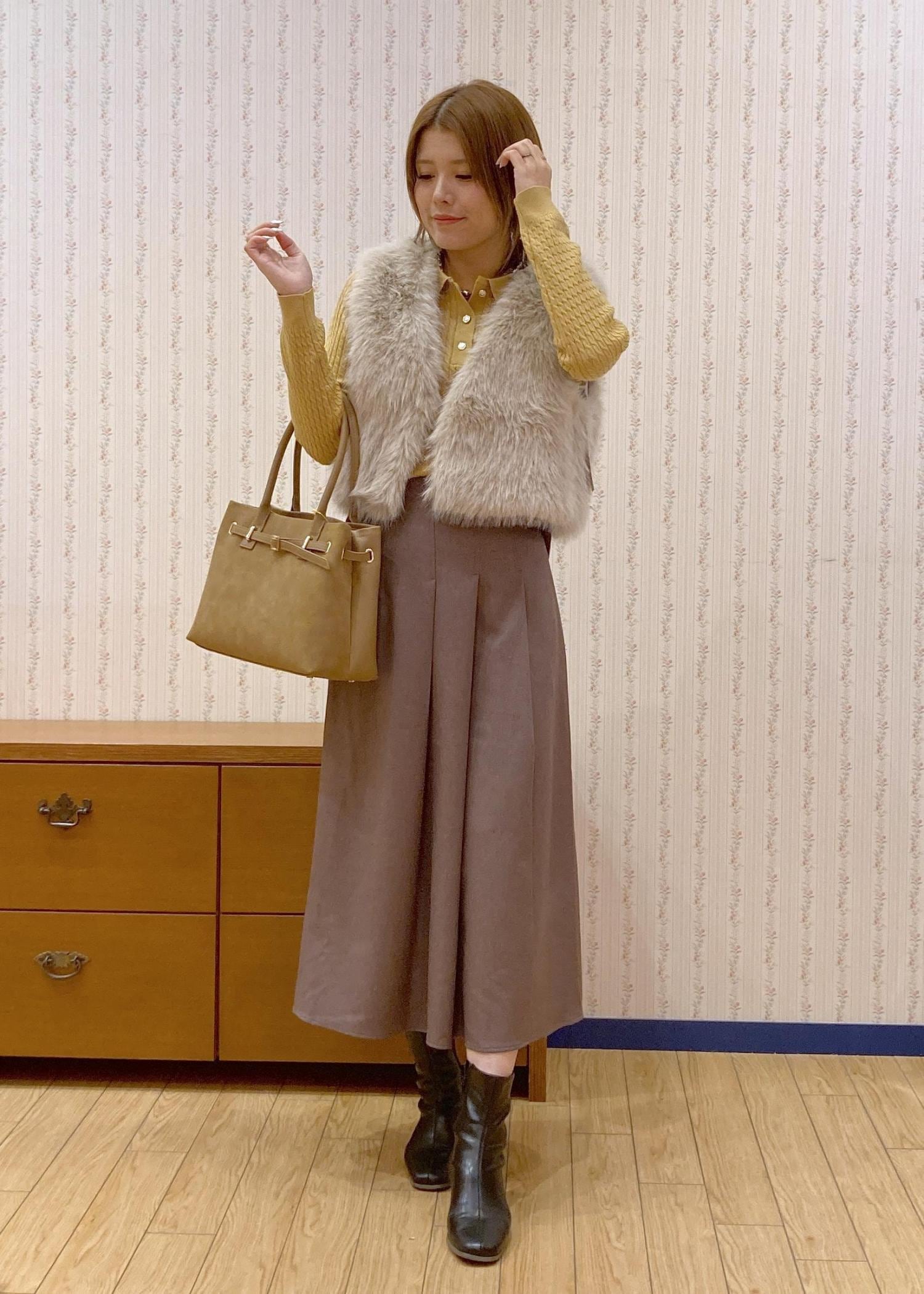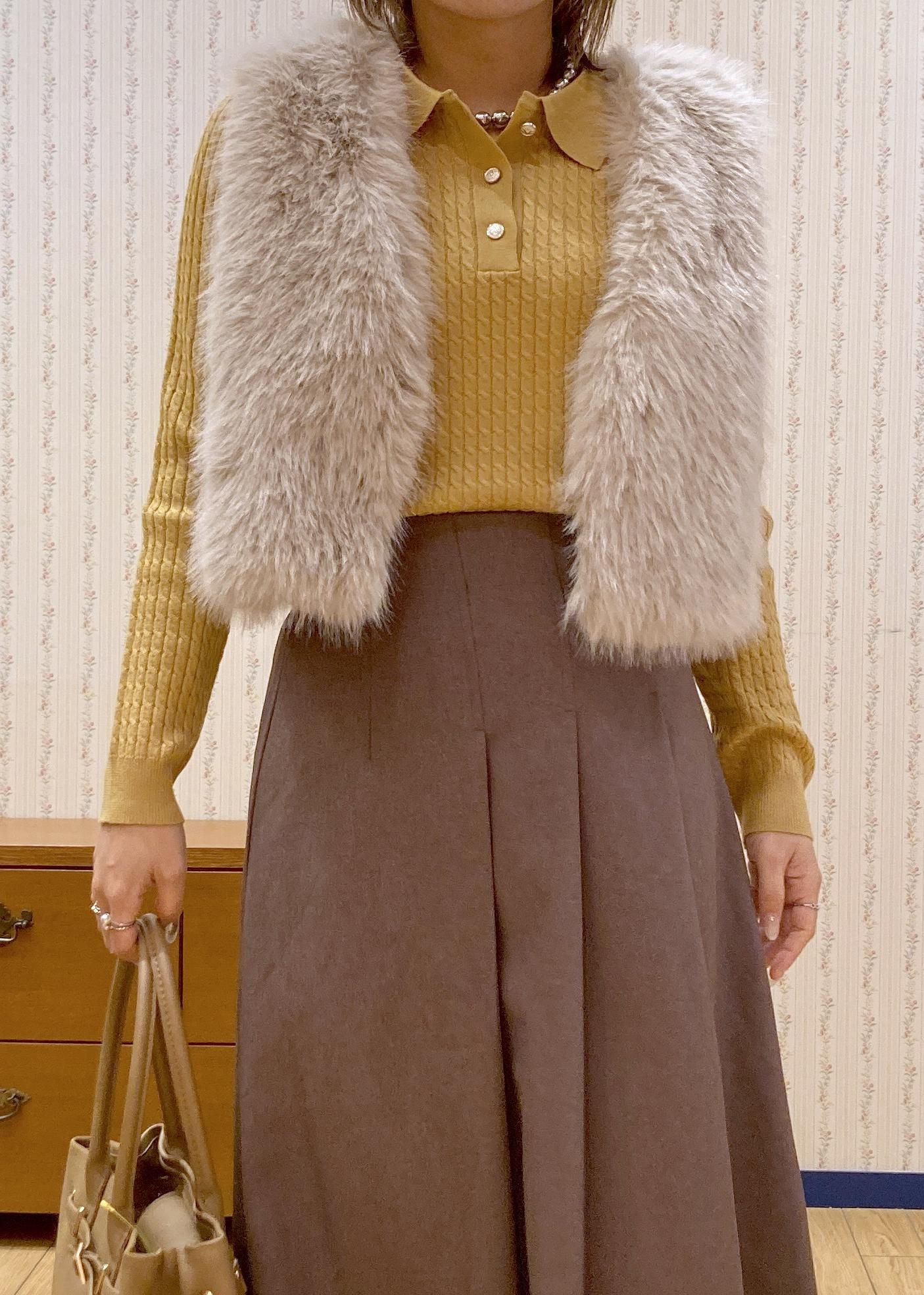 ROPÉ PICNICファーベストベージュ / F¥6,996レビューボックスシルエットのショート丈ファーベスト。