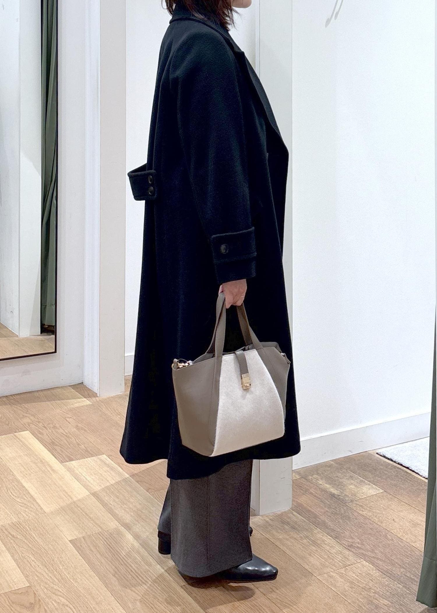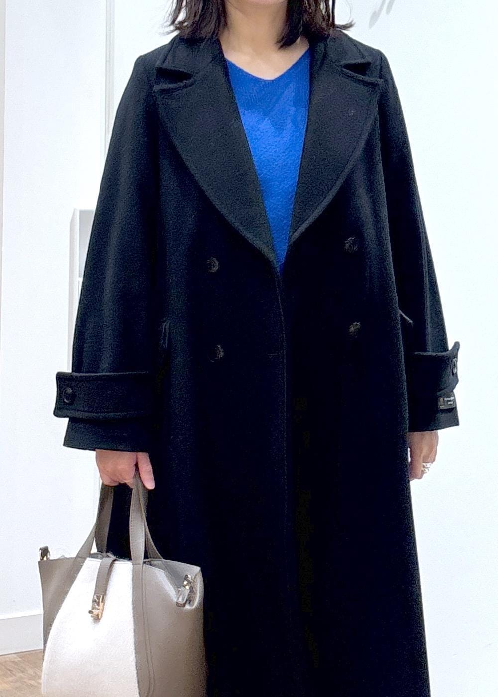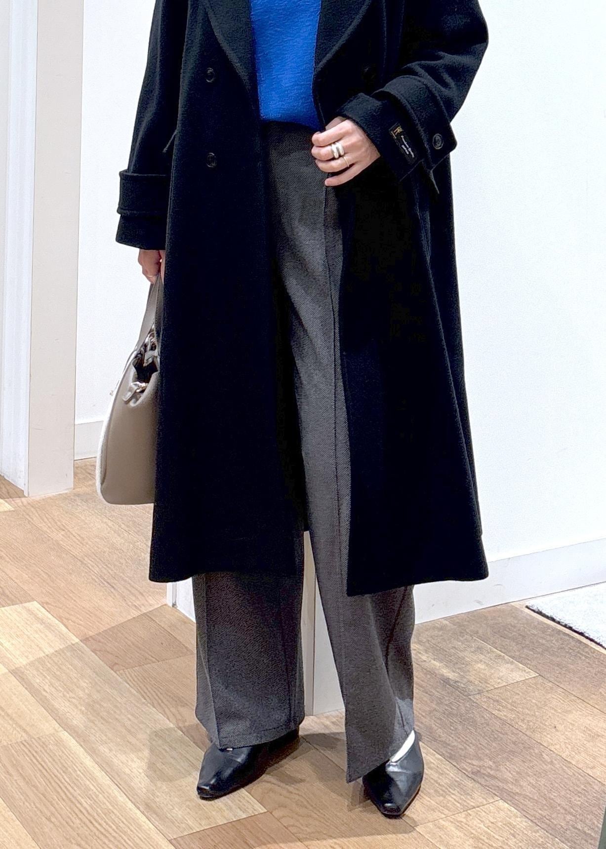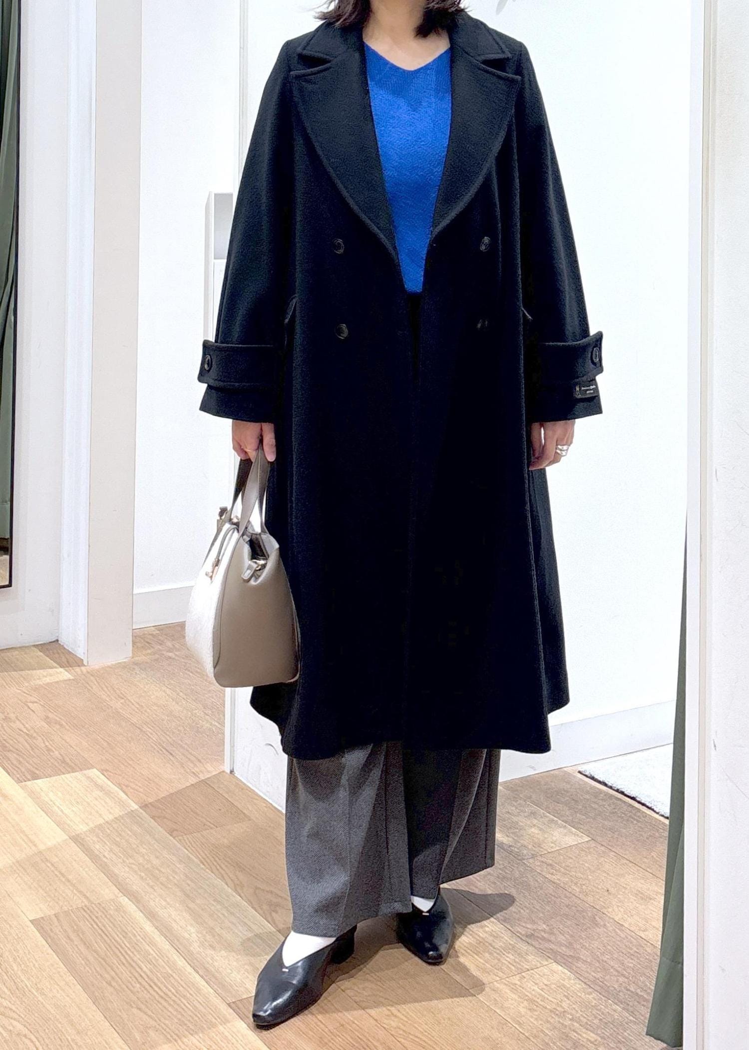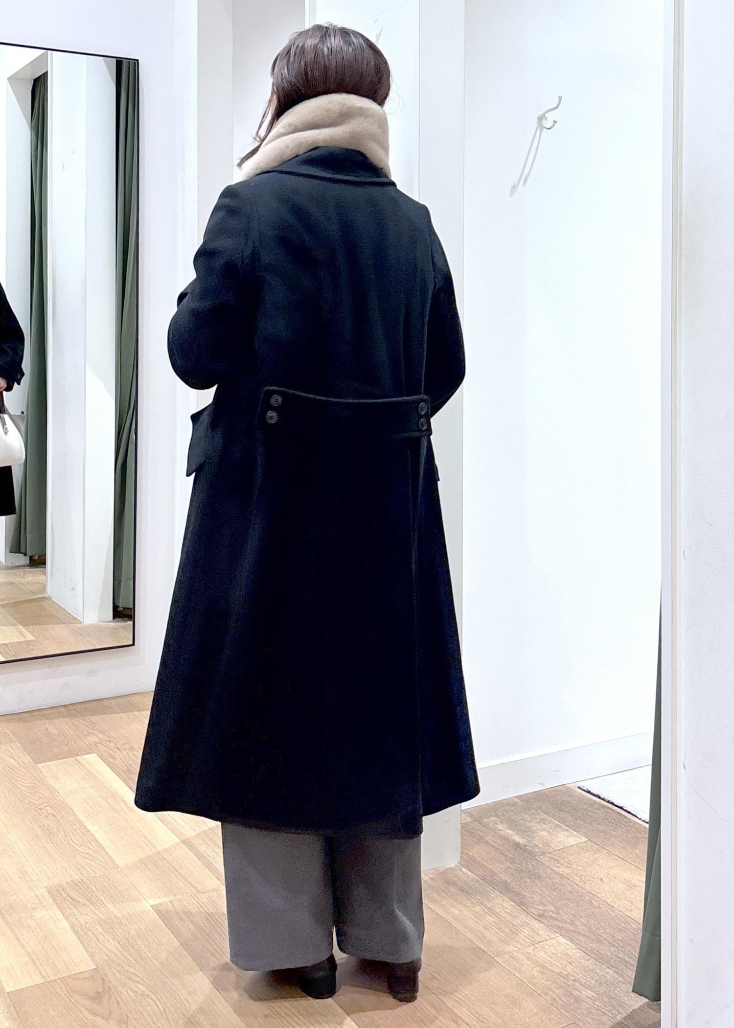 動くと揺れるフレアシルエットがとてもきれいで、女性らしい印象のコートです。