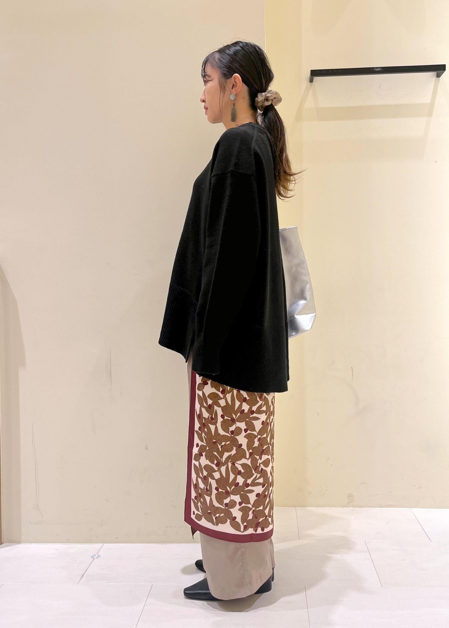 オーバーサイズのニット×ワイドパンツのゆったりコーデに