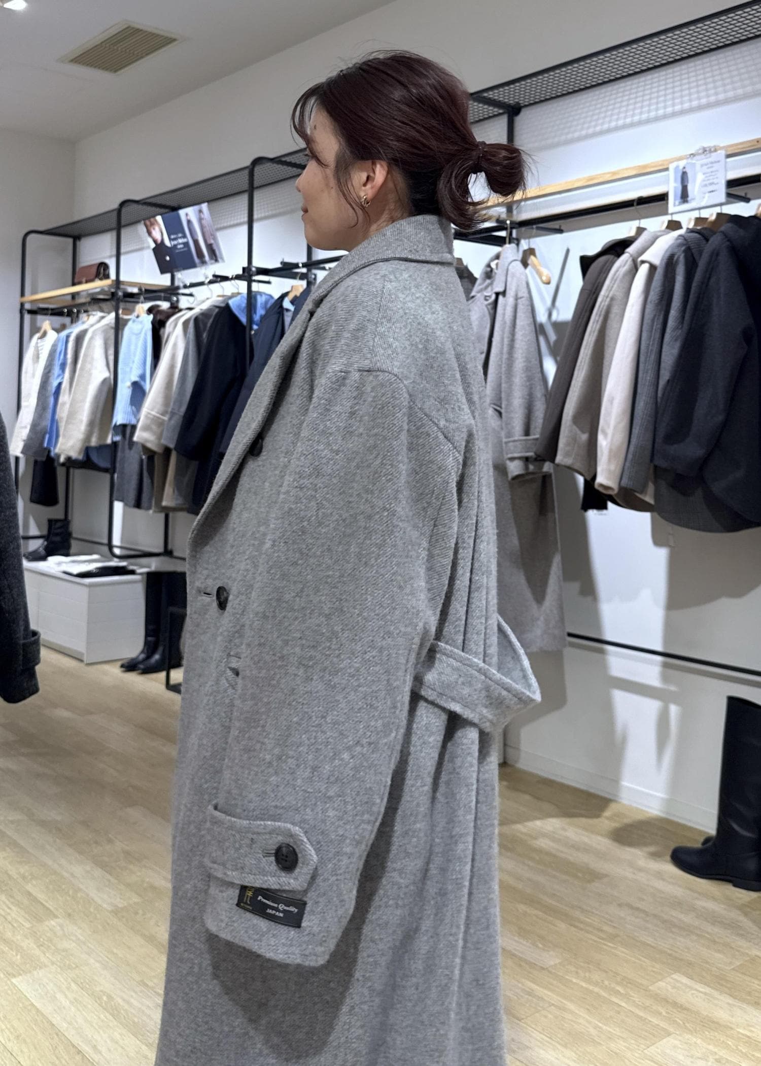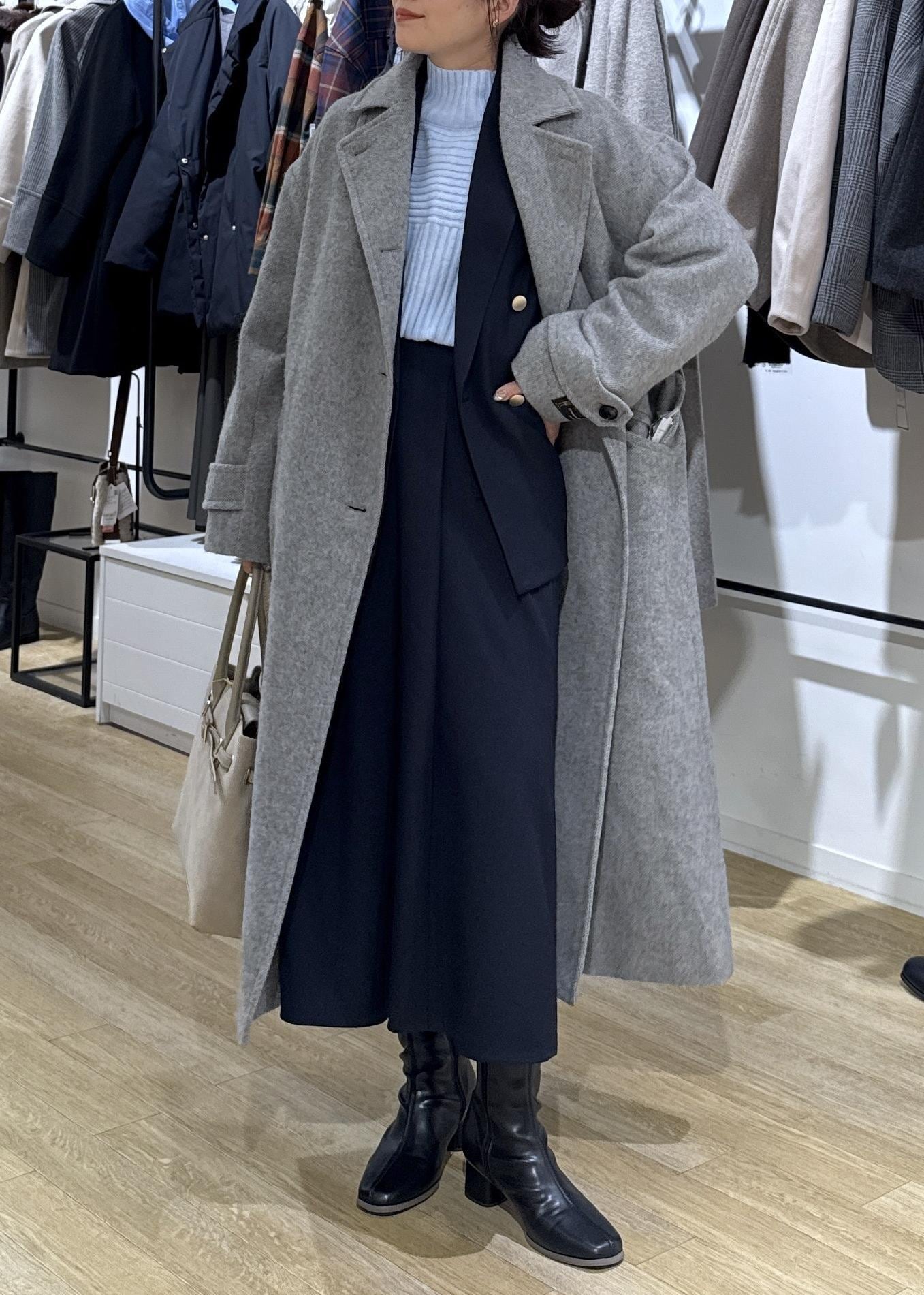 きれいめからカジュアルまで合わせやすいロングコートを合わせてお仕事から綺麗めなお出かけシーンにも使えるセットアップコーデにしてみました!
