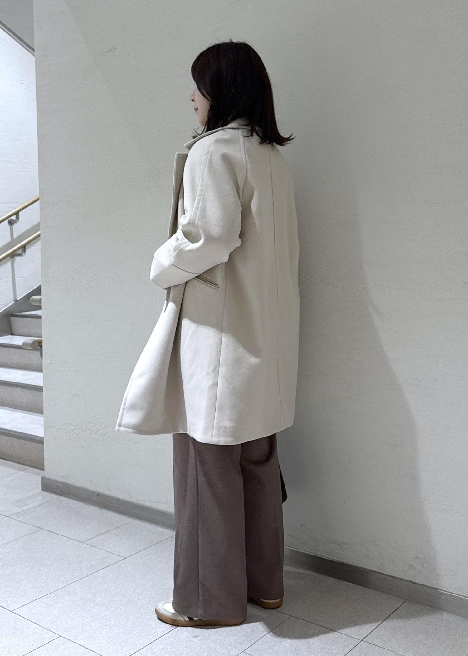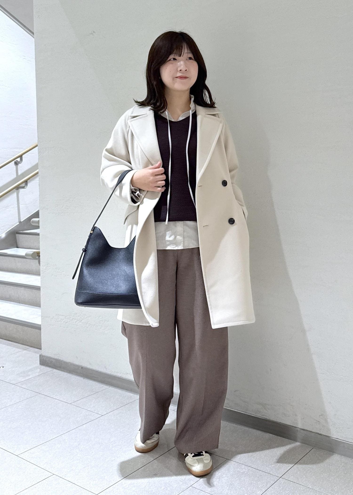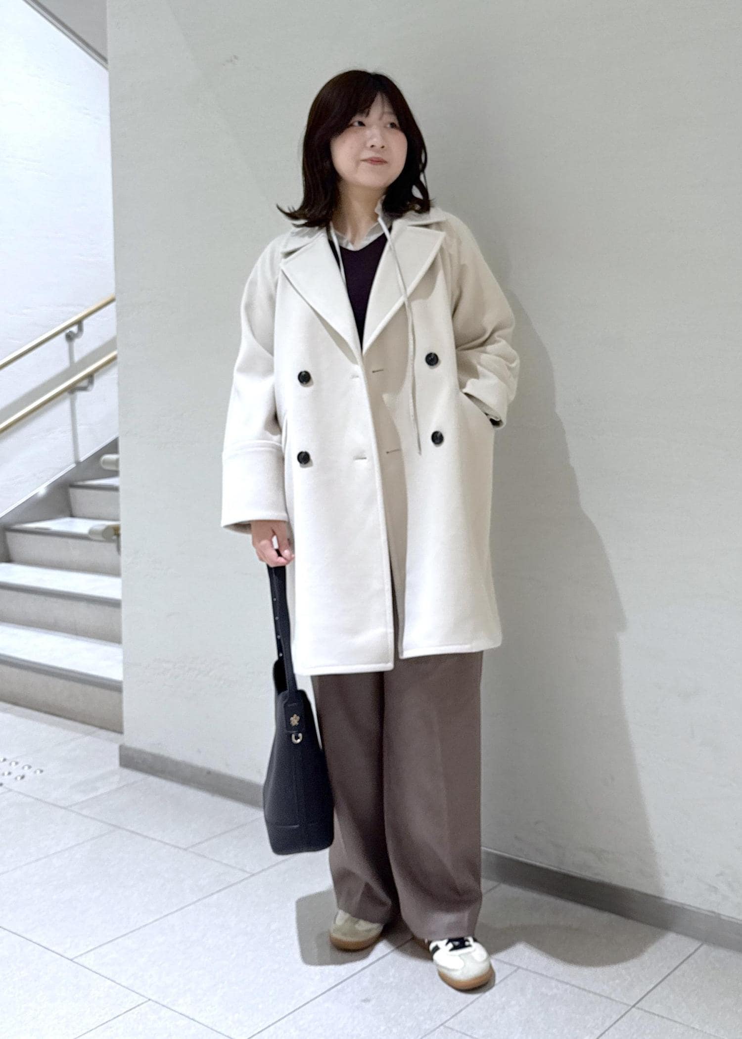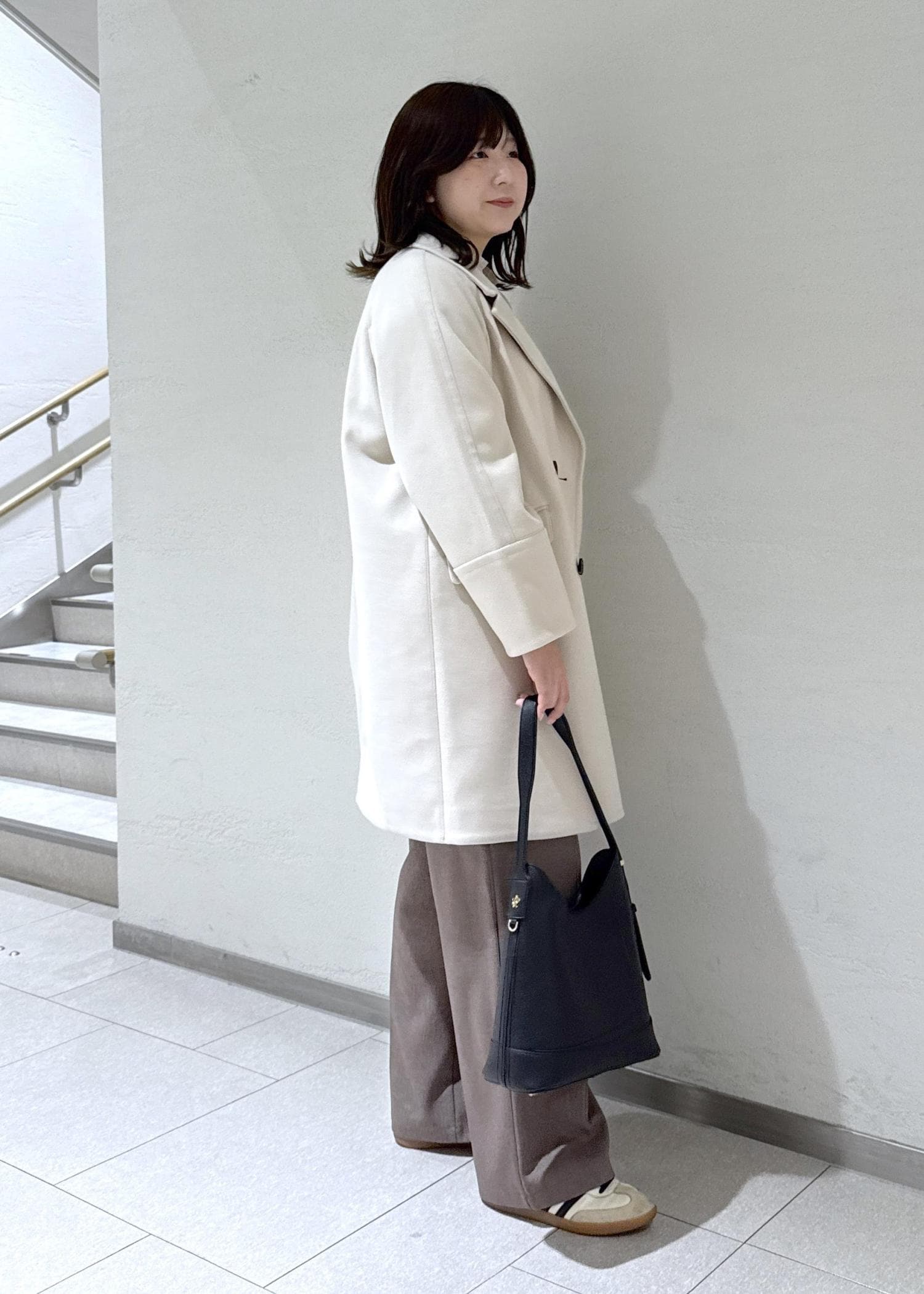 オーバーPコートはワイドパンツでもバランスよく合わせていただけます✨️