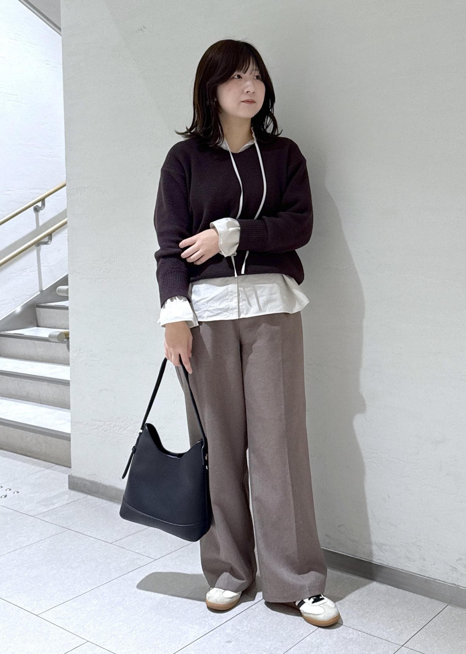 肩落ちのデザインなので肩周りもゆとりがありますが、着膨れしない落ち感ですっきりした印象に。